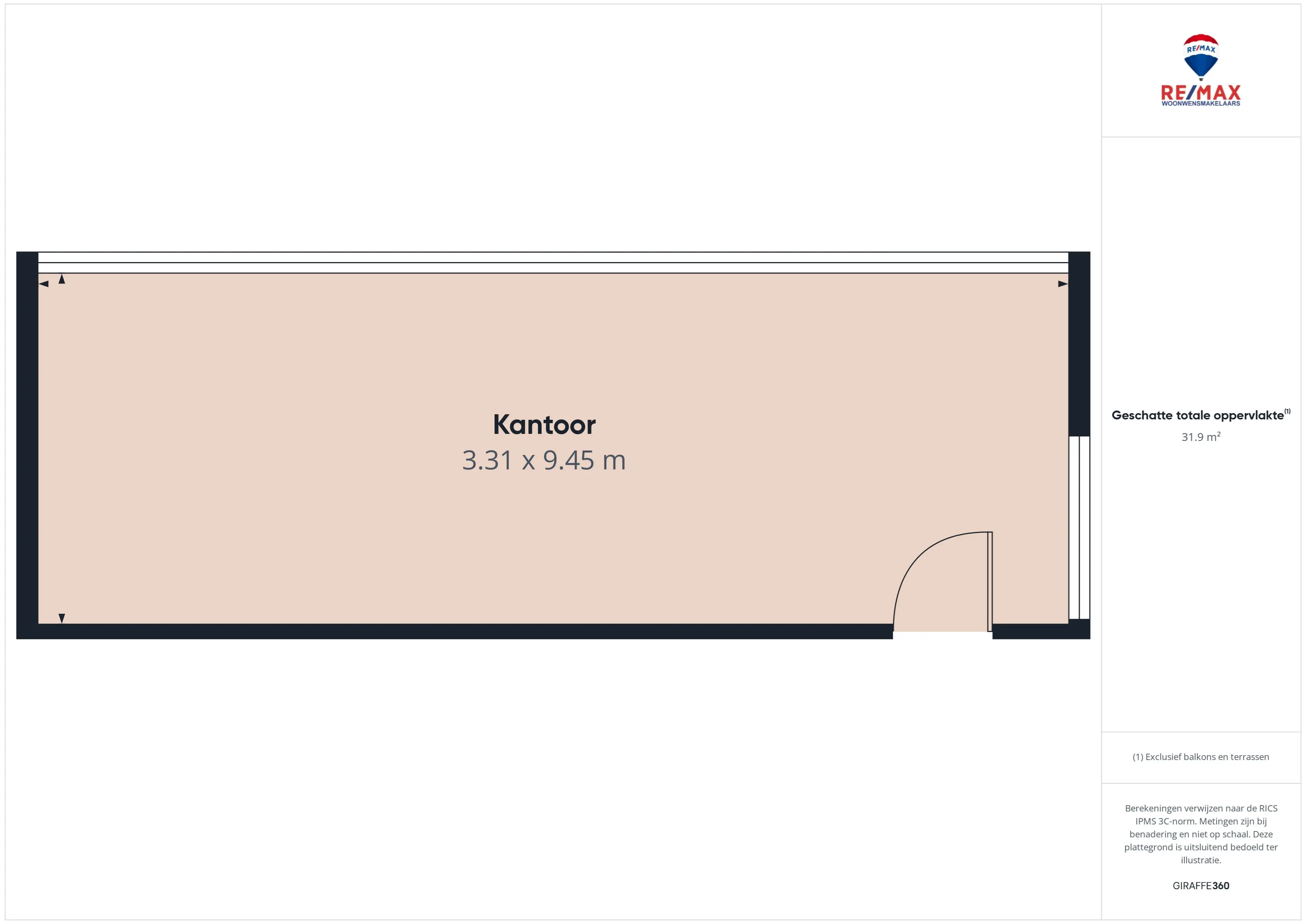 Kantoor 4: ca. 32 m² (Beschikbaar)