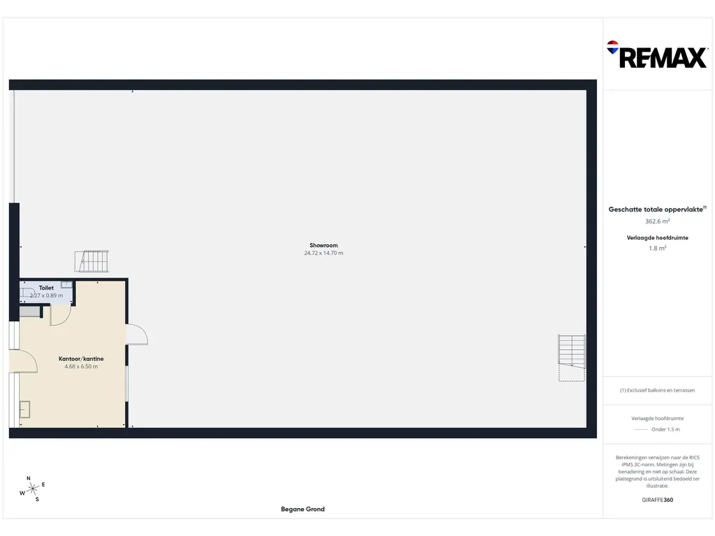 De unit omvat een kantoor met pantry en toilet op de begane grond van waaruit toegang is tot de bedrijfsruimte met een elektrische overheaddeur. Op de verdieping achterin deze unit bevindt zich een royale entresol voor de nodige extra bergruimte en boven het kantoor op de begane grond bevindt zich een 2e kantoorruimte/spreekruimte. Zowel op de begane grond als op de verdieping is er airco aanwezig in de kantoorruimte waarmee ook verwarmd kan worden.