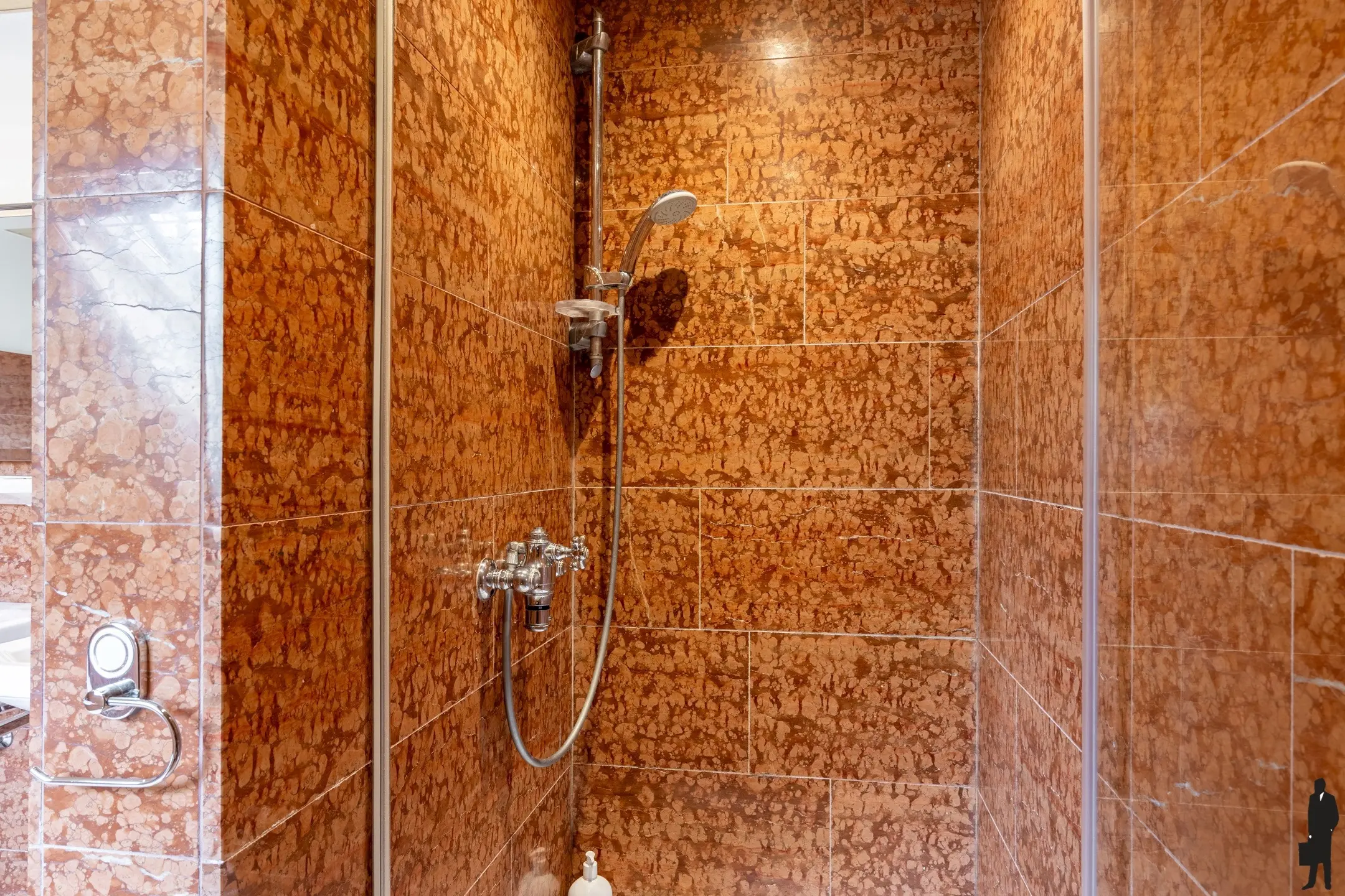 De badkamer is ruim en is voorzien van een ligbad, douche, dubbele wastafel en toilet. In de badkamer is vloerverwarming aanwezig.