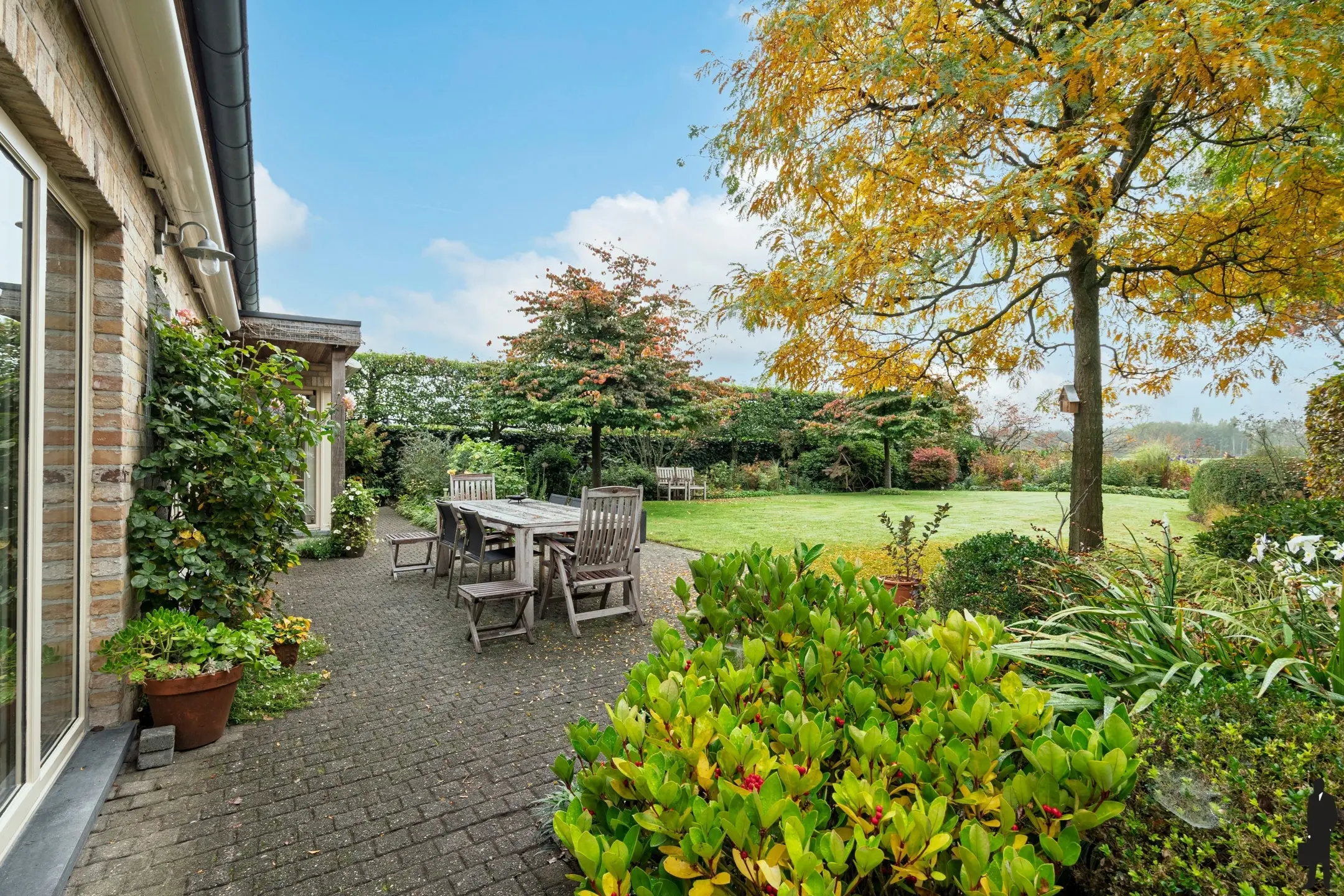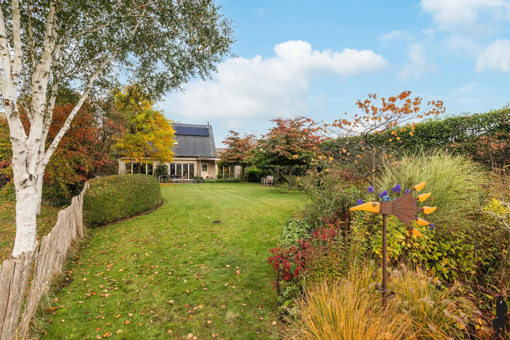 De aangename fraai aangelegde achtertuin heeft een fijn terras en grenst aan weilanden dus geniet u van vrij uitzicht en geen achterburen.
