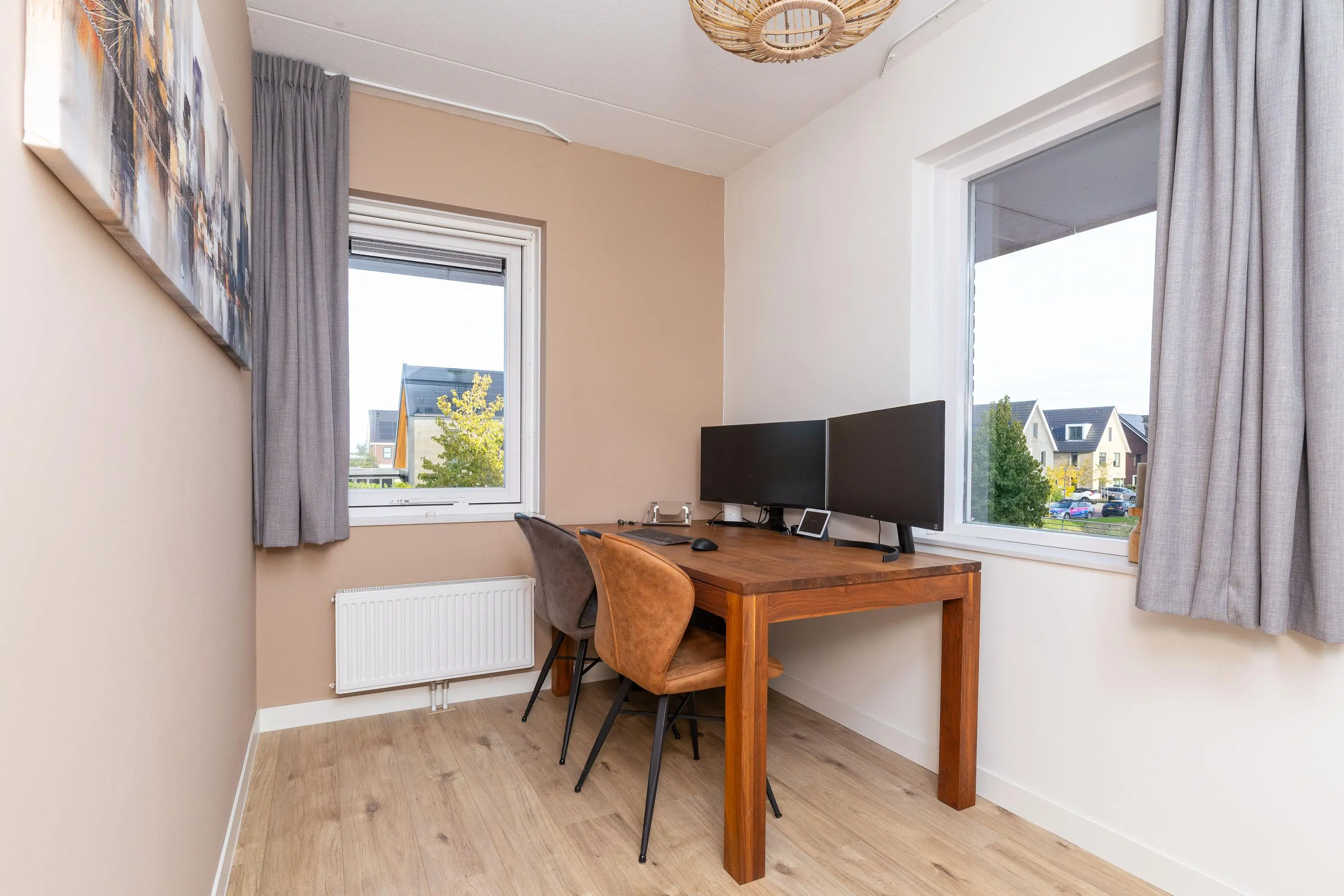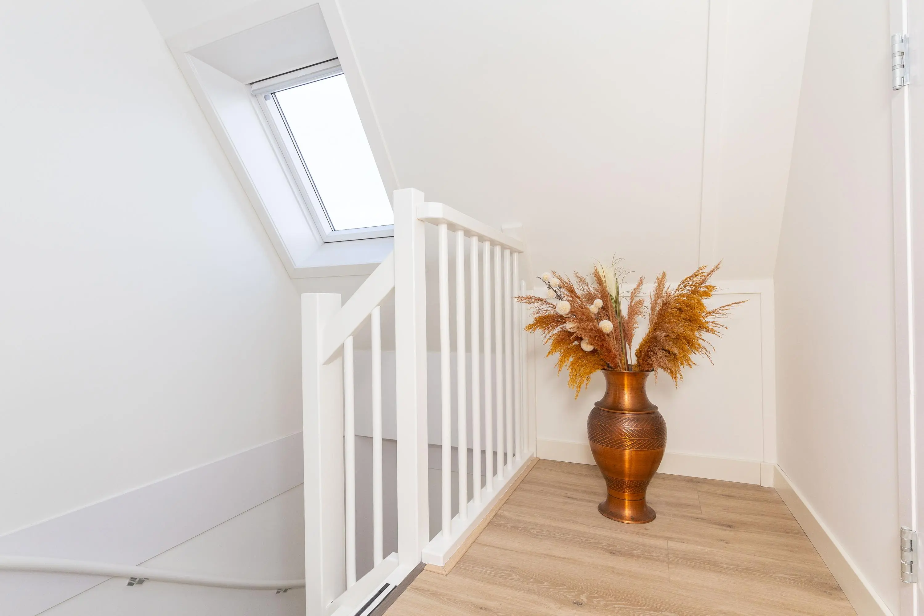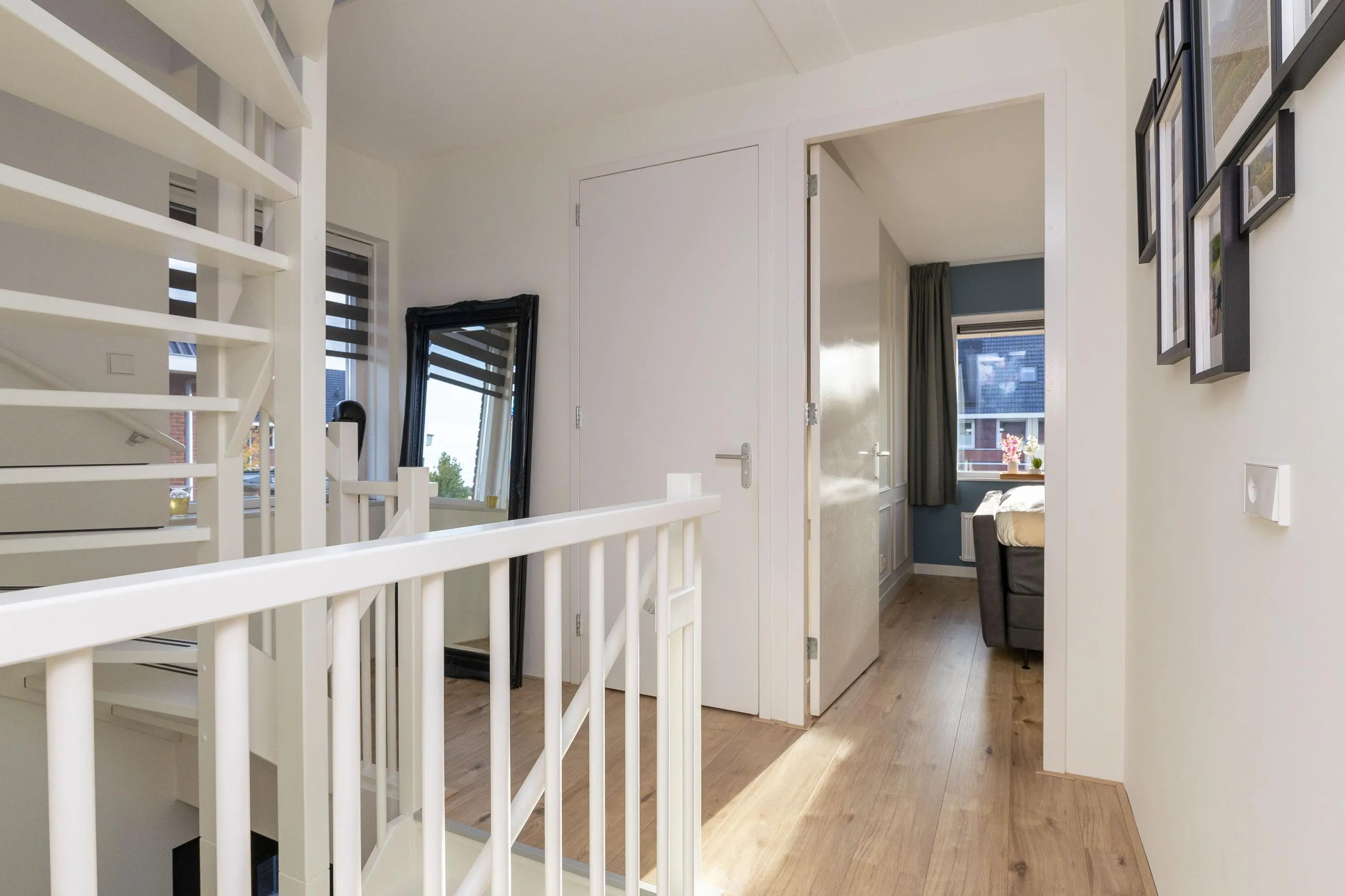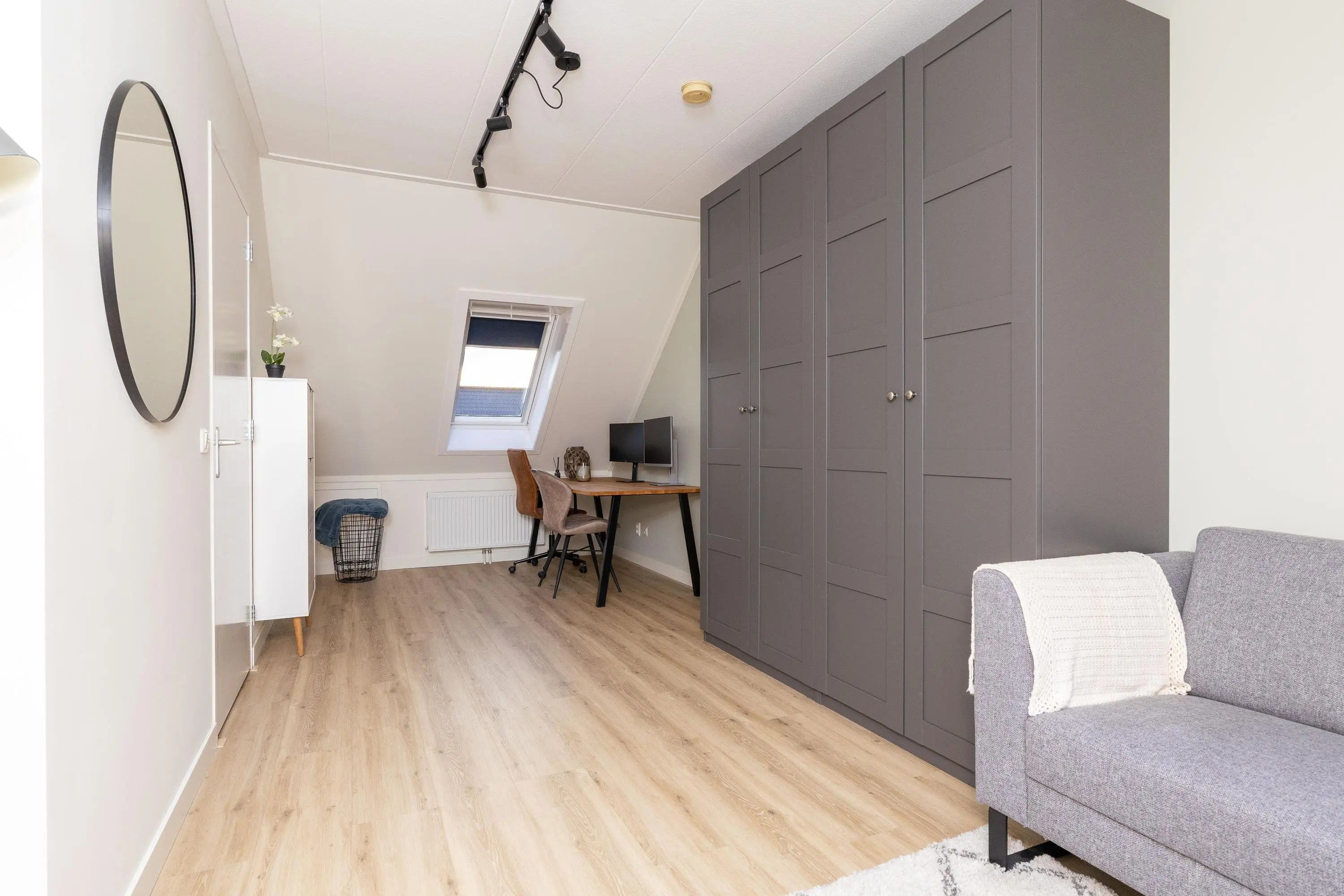 Op de eerste verdieping bevinden zich drie slaapkamers en een moderne badkamer met inloopdouche, tweede toilet en wastafelmeubel. De tweede verdieping biedt nog een royale vierde slaapkamer en extra ruimte voor werken, hobby’s of opslag. Op de voorzolder vind je de aansluitingen voor wasmachine en droger, de CV-installatie en de mechanische ventilatie. Dankzij de zonnepanelen op het dak woon je bovendien extra energiezuinig.