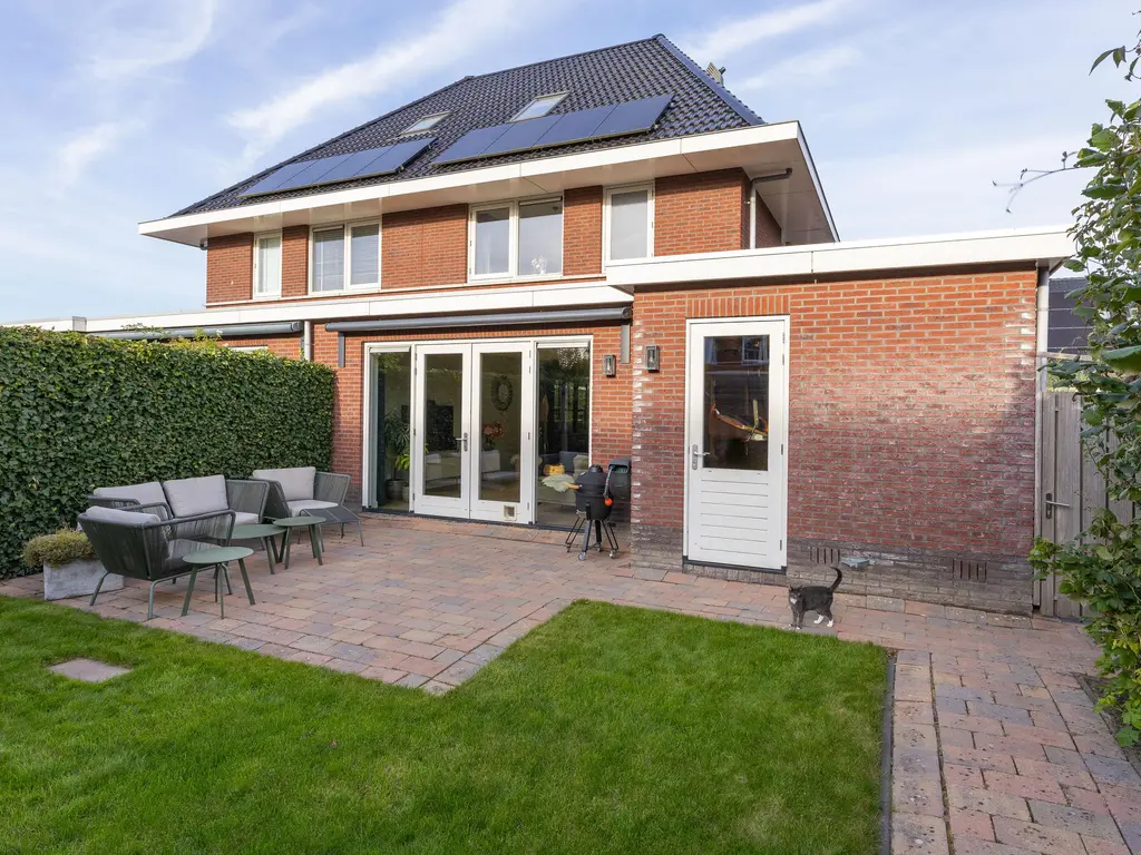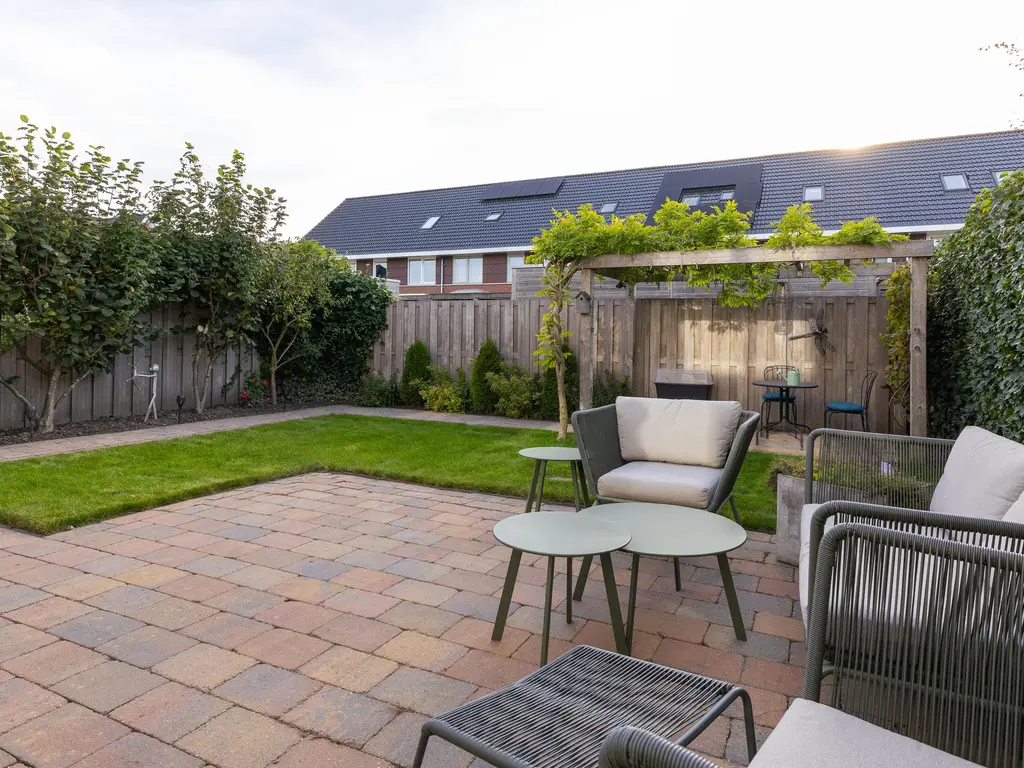 De achtertuin, gelegen op het zuidwesten, is een heerlijke plek om te ontspannen en te genieten van de zon. Via zowel de woonkamer als de poort naast de garage is de tuin eenvoudig bereikbaar. Ook de voortuin en oprit zijn netjes aangelegd, waardoor het geheel direct een verzorgde indruk maakt.