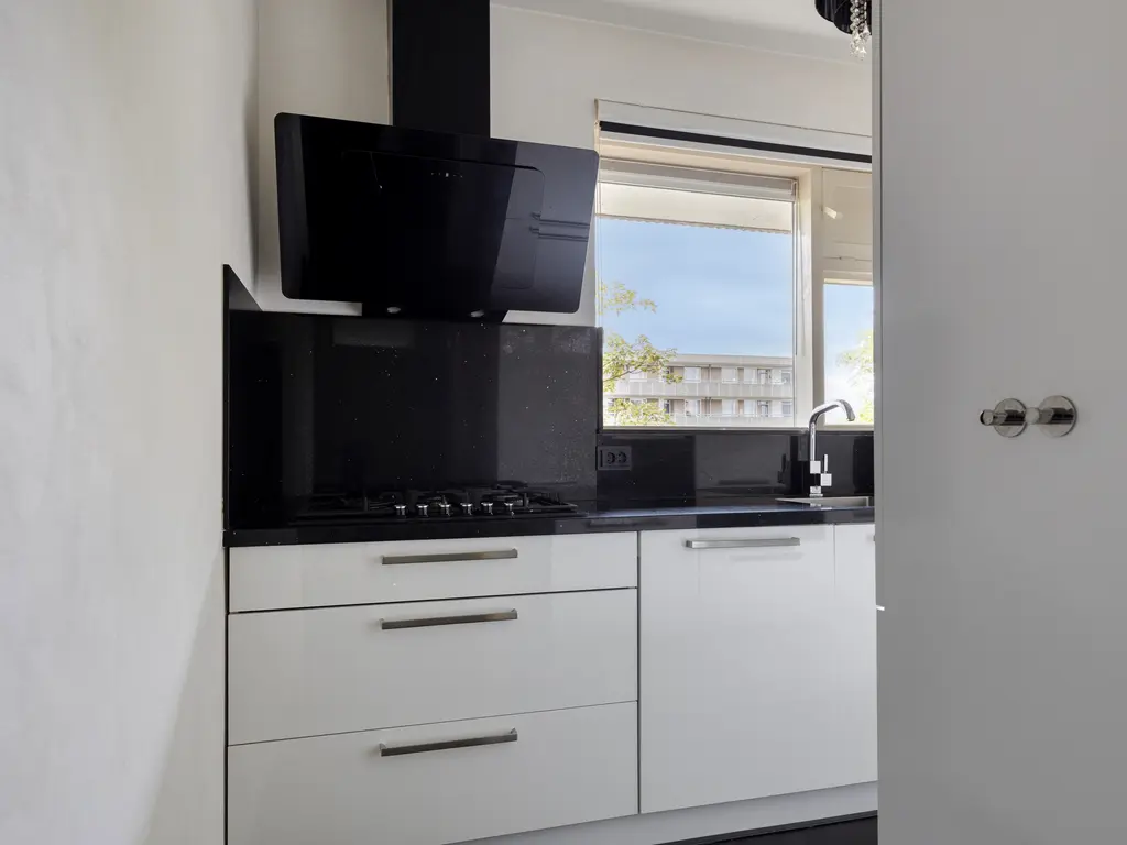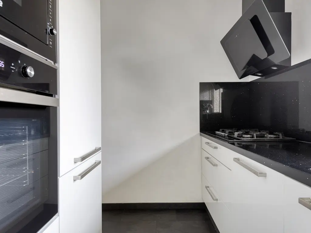 De moderne keuken is praktisch én stijlvol ingericht, met diverse inbouwapparaten zoals