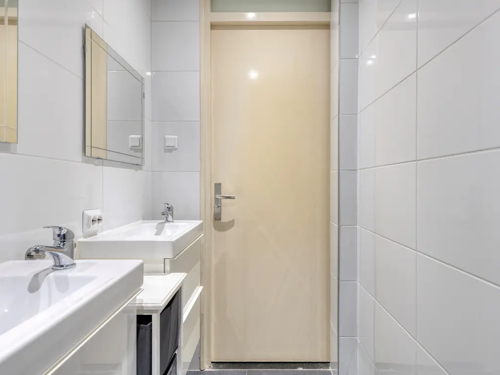 wastafelmeubels en twee spiegels. Daarnaast is er een separaat toilet met fonteintje,
