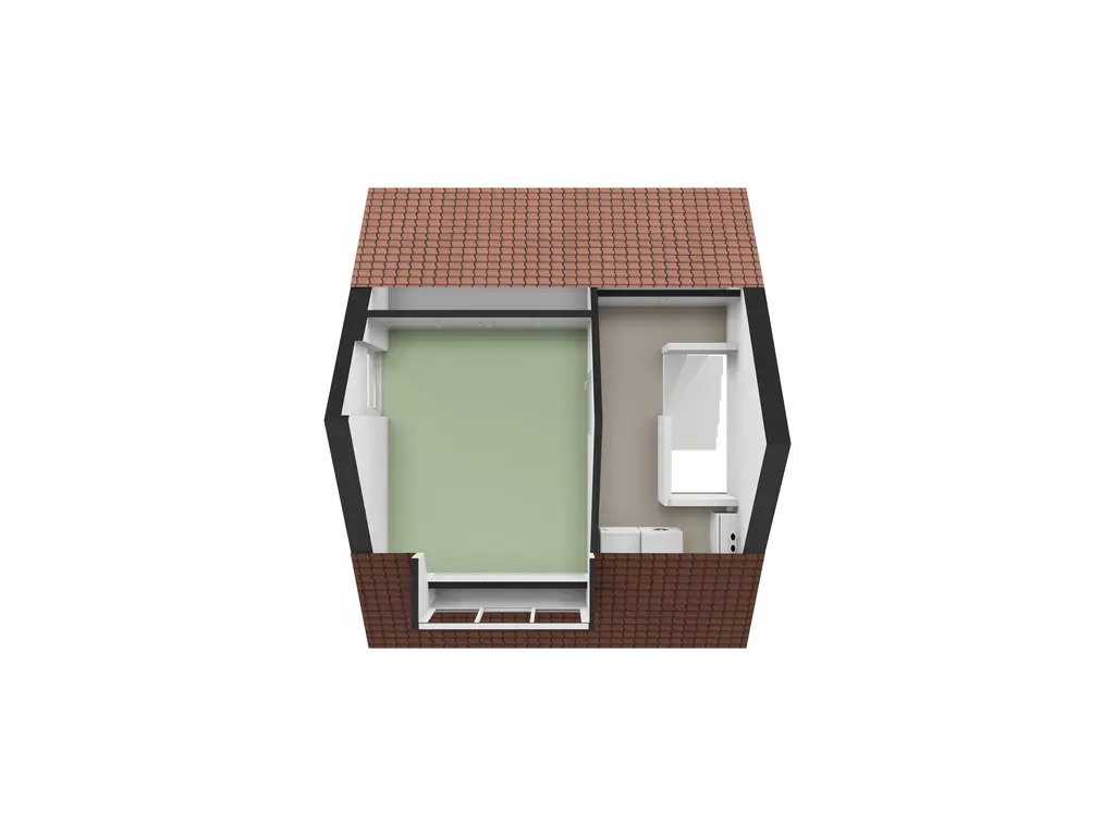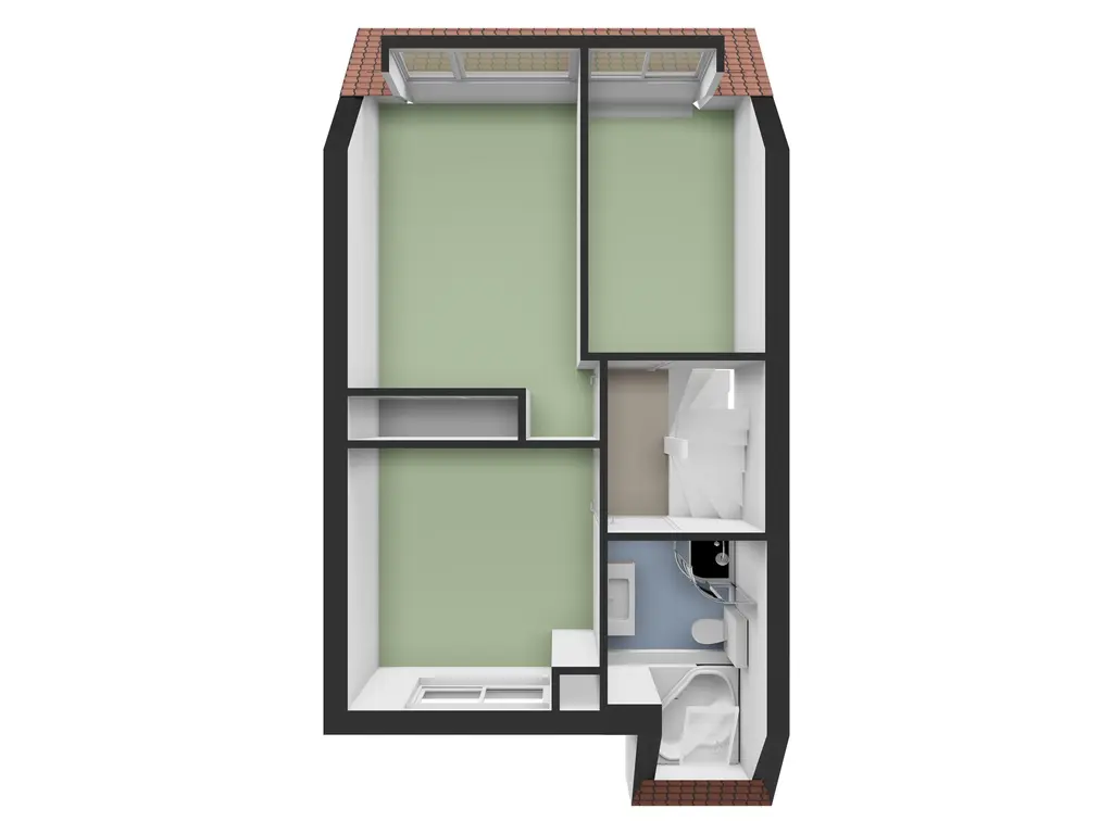 De badkamer bevindt zich aan de voorzijde en is compleet uitgevoerd. Hier begin je de dag rustig met een douche in de aparte inloopdouchecabine of sluit je af met een warm bad in het hoekbad. Verder is de badkamer voorzien van een wastafelmeubel met spiegel met verlichting en verwarming en een tweede hangend toilet. De wit/grijze betegeling zorgt voor een frisse, tijdloze uitstraling.