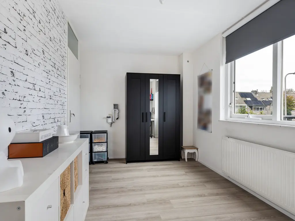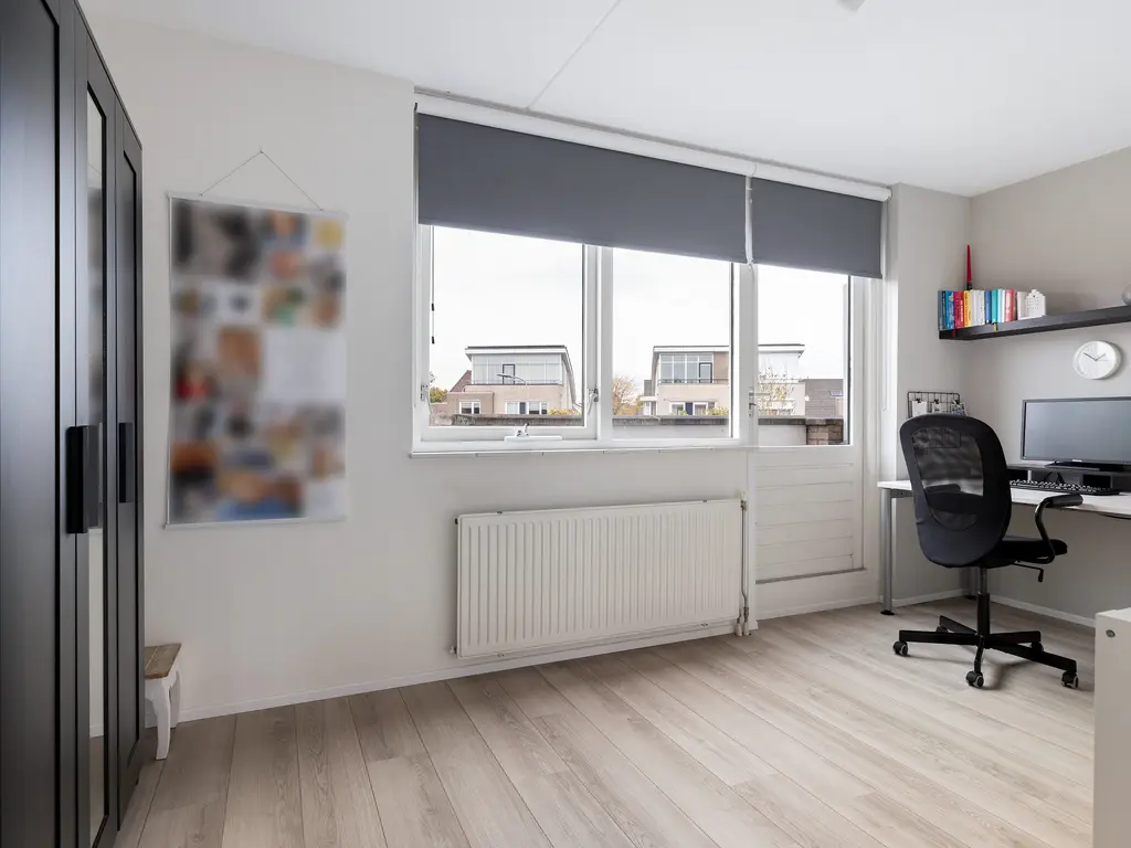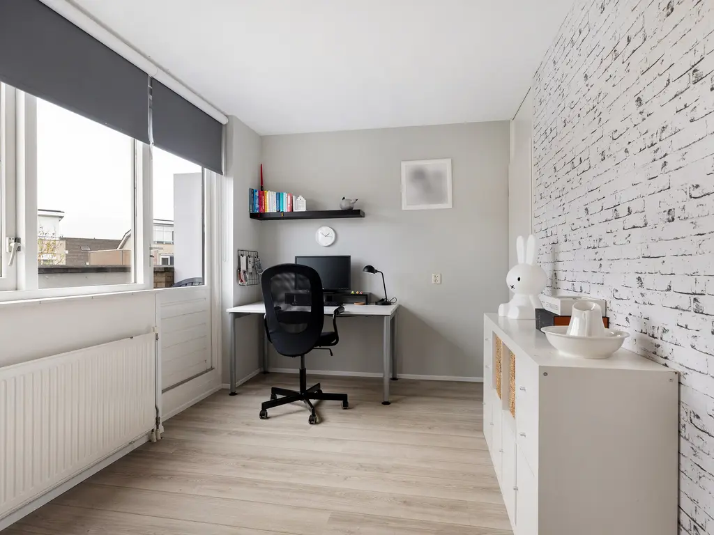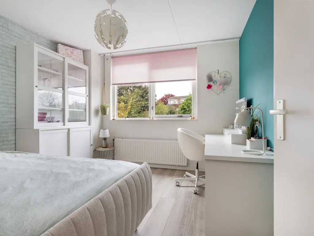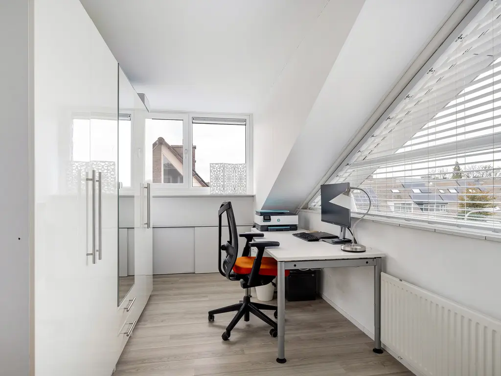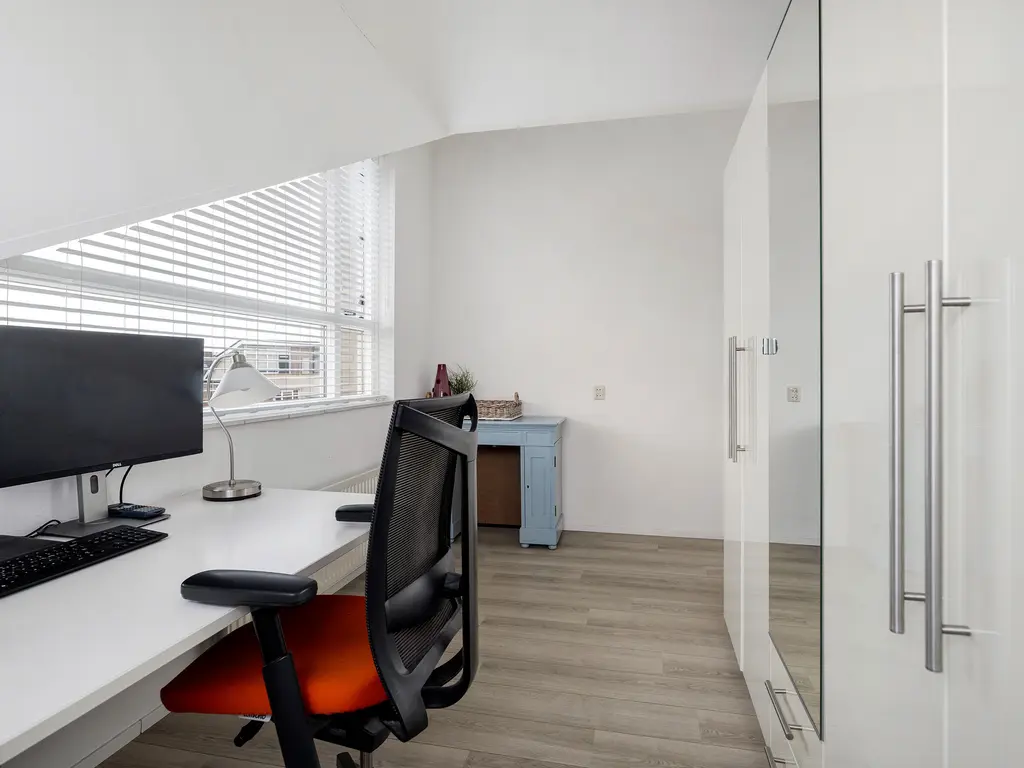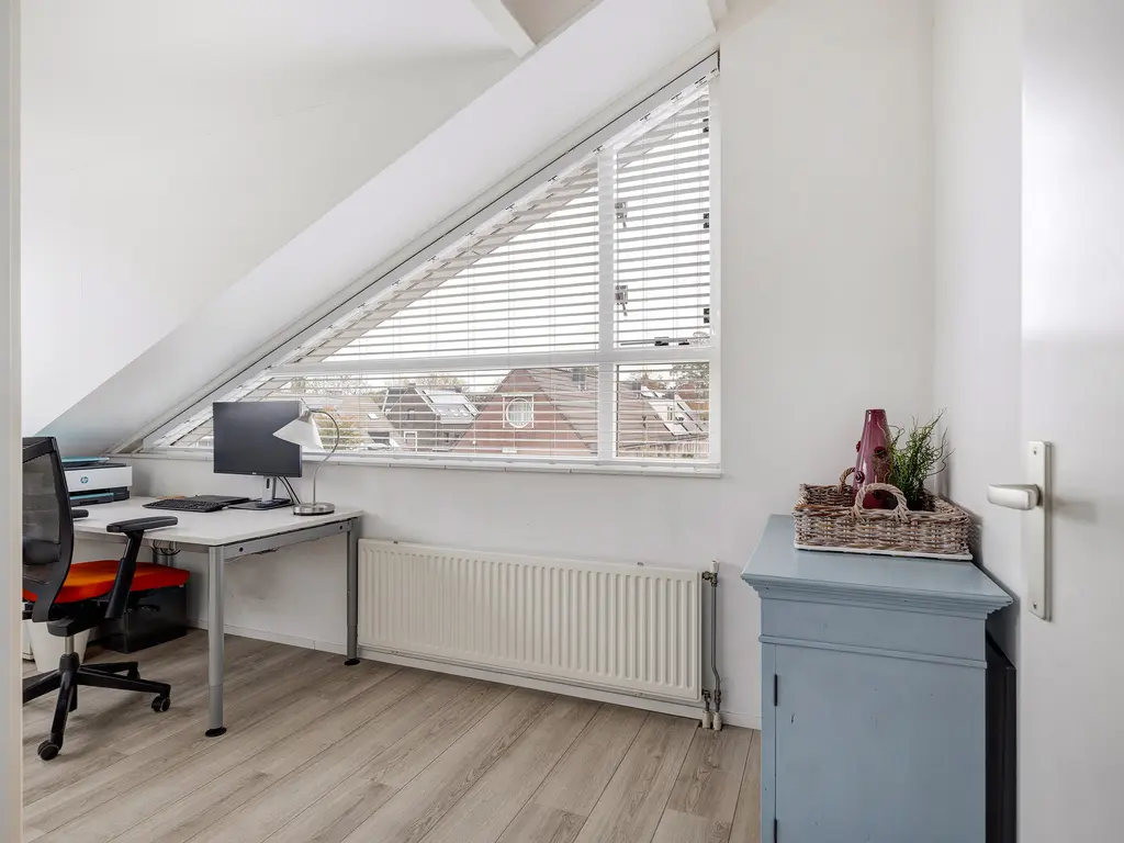 Slaapkamer 4 ligt aan de voorzijde, is nu ingericht als werkkamer maar biedt voldoende ruimte om als slaapkamer te fungeren. Slaapkamer 5 ligt aan de achterzijde.