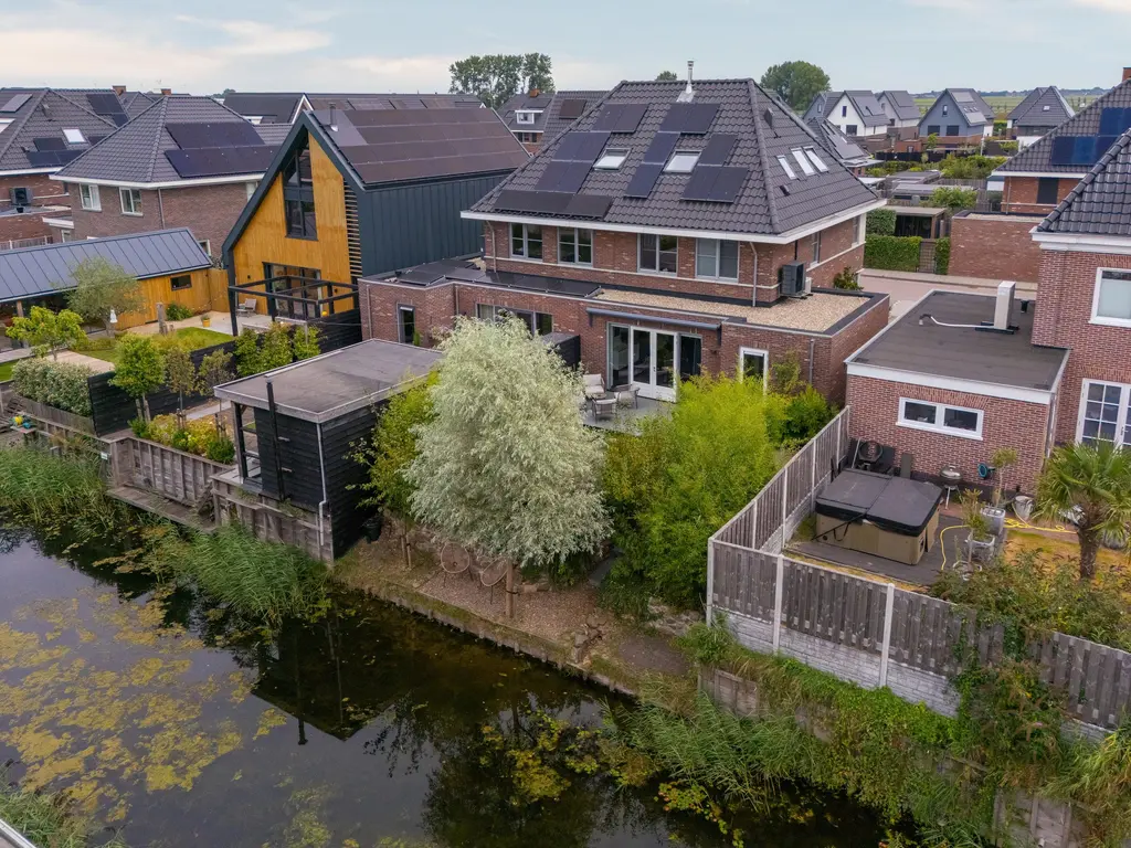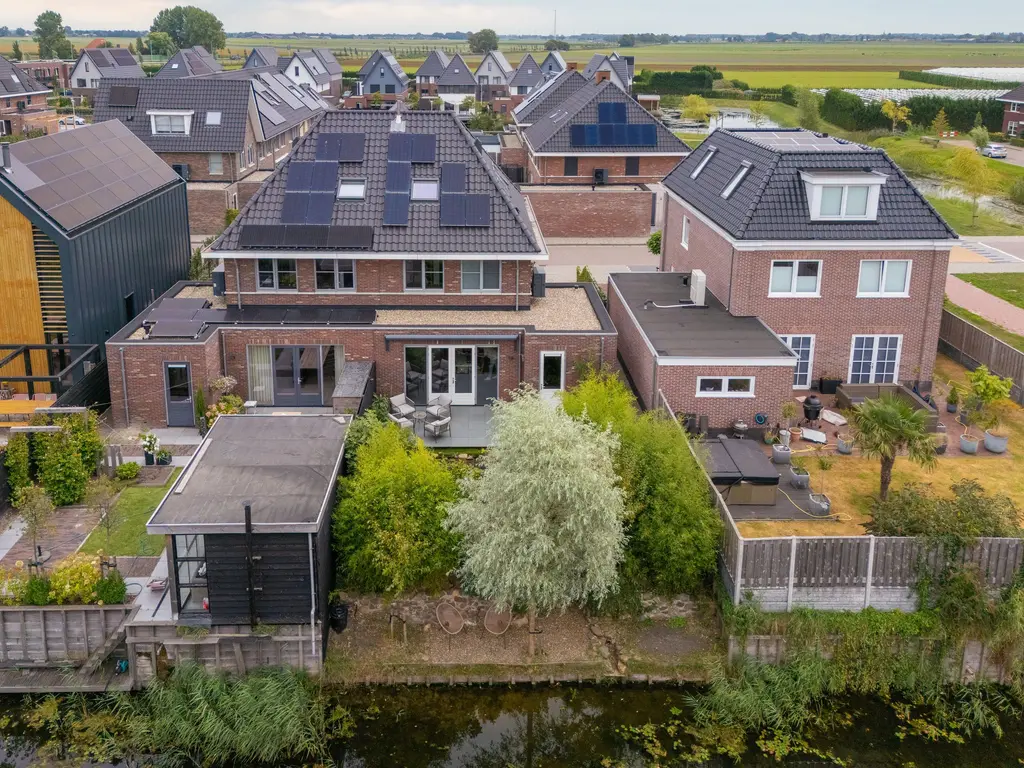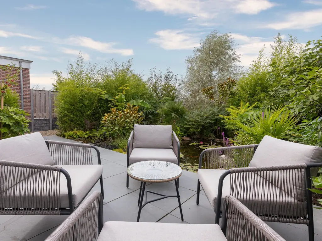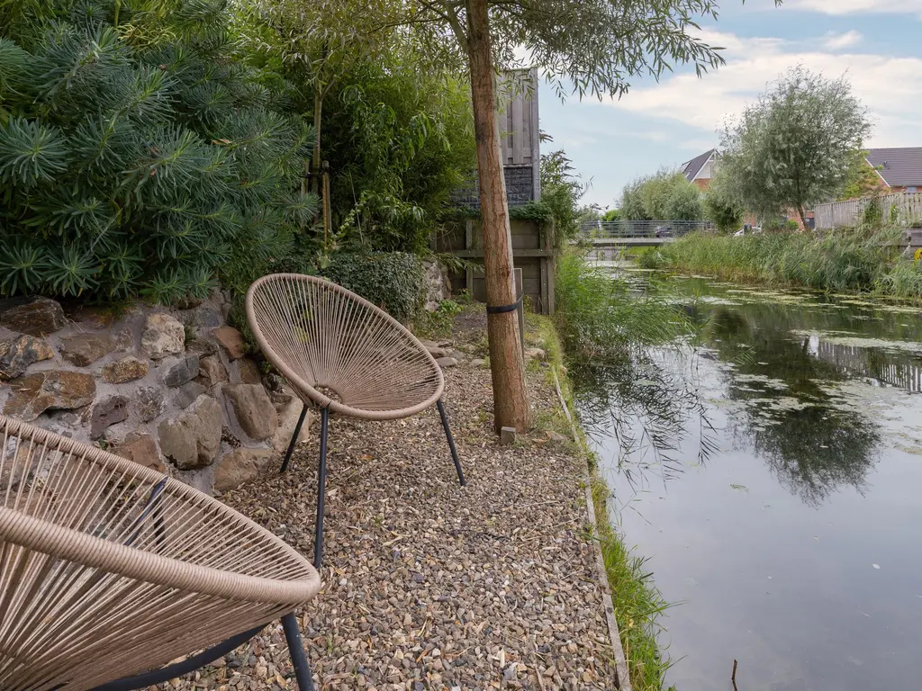 De fraai aangelegde tuin is een echte blikvanger met een rustgevende vijver en smaakvolle beplanting die een mediterrane sfeer oproept – alsof je in het buitenland bent. Gelegen aan het water en op het westen georiënteerd, geniet je hier elke avond van de schitterende ondergaande zon. Een perfecte plek om te ontspannen, te borrelen met vrienden of gewoon te genieten van de natuur en het water.
