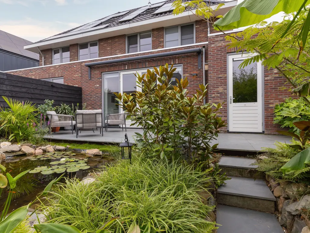 • Fraai aangelegde tuin met vijver, bereikbaar via openslaande tuindeuren of zijkant van de woning