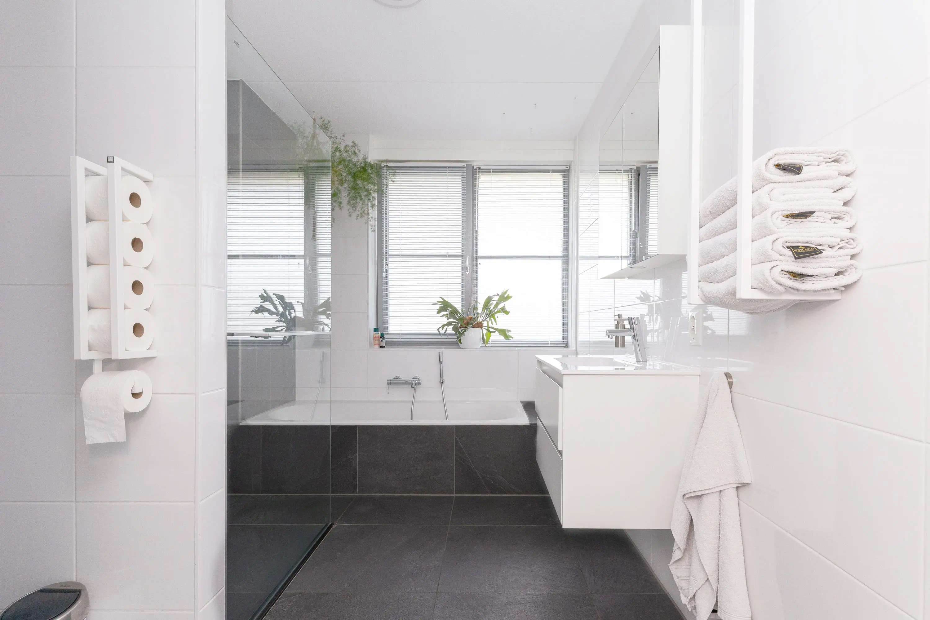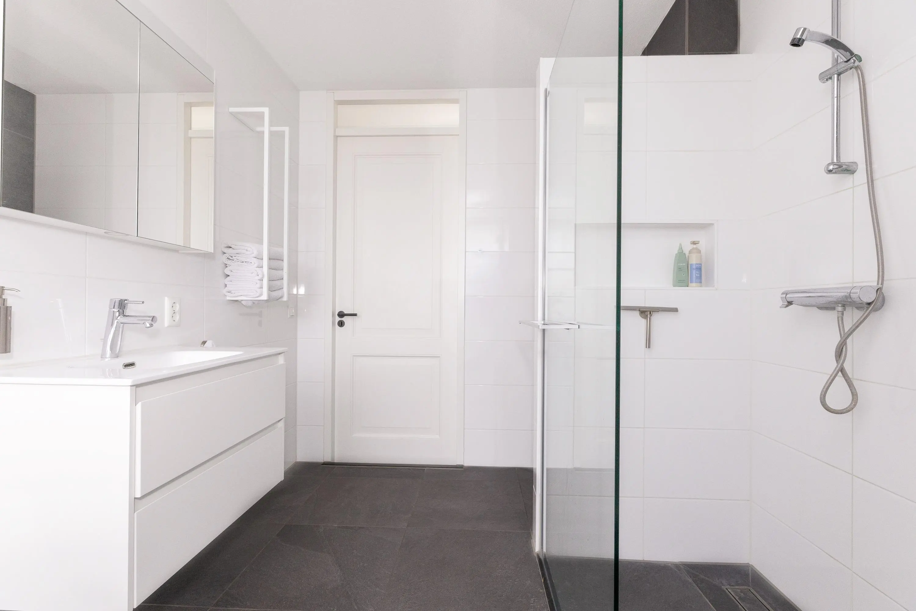 De eerste verdieping beschikt over drie fijne slaapkamers, elk met grote ramen die zorgen voor veel licht en een prettige sfeer. De ruime, lichte overloop verbindt de kamers op een prettige manier. De luxe badkamer is een kleine wellnessruimte op zich: met een inloopdouche, ligbad, stijlvol meubel en modern sanitair. De gehele verdieping is voorzien van vloerverwarming, waardoor het zelfs op koude dagen aangenaam warm blijft.