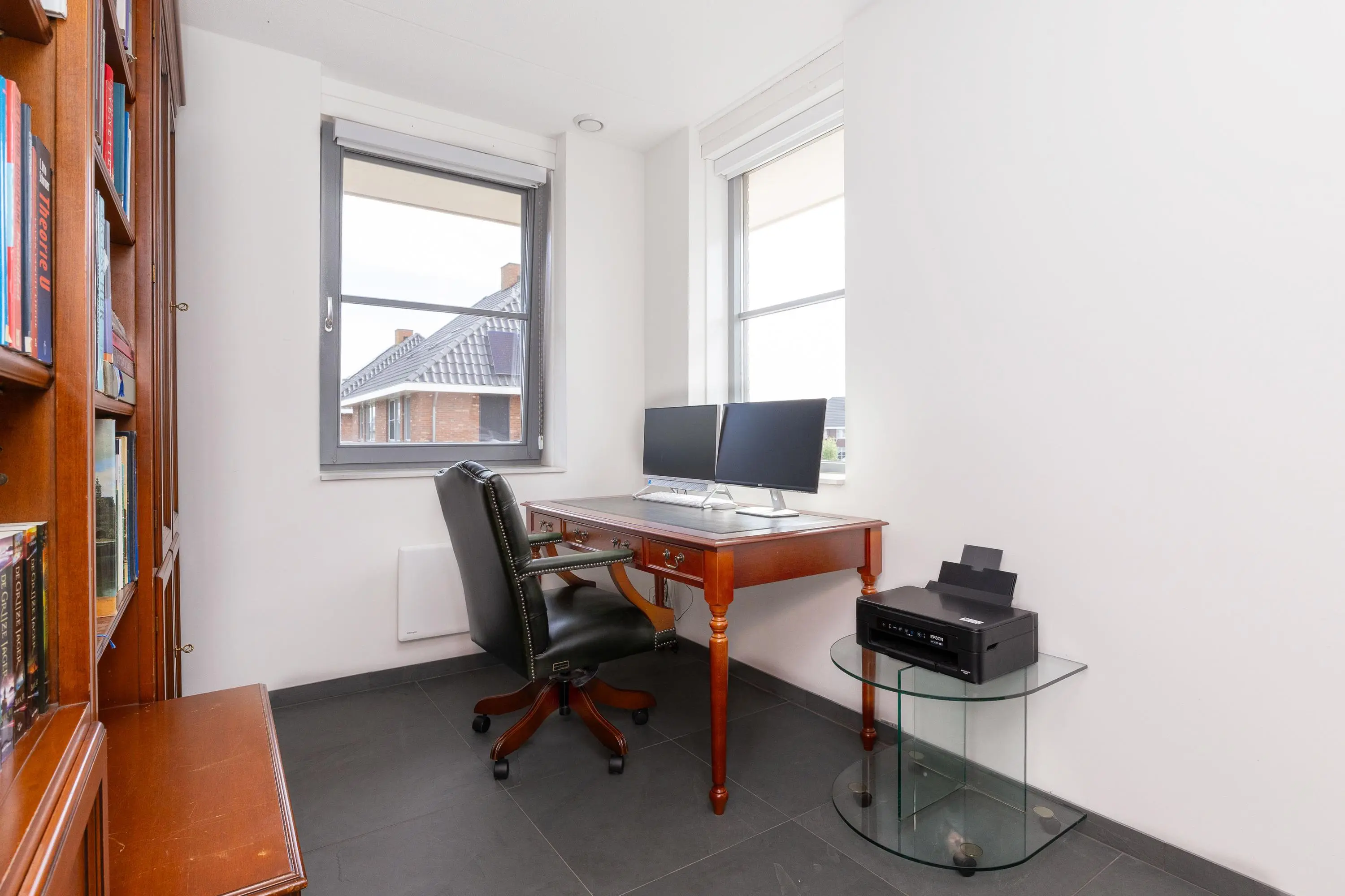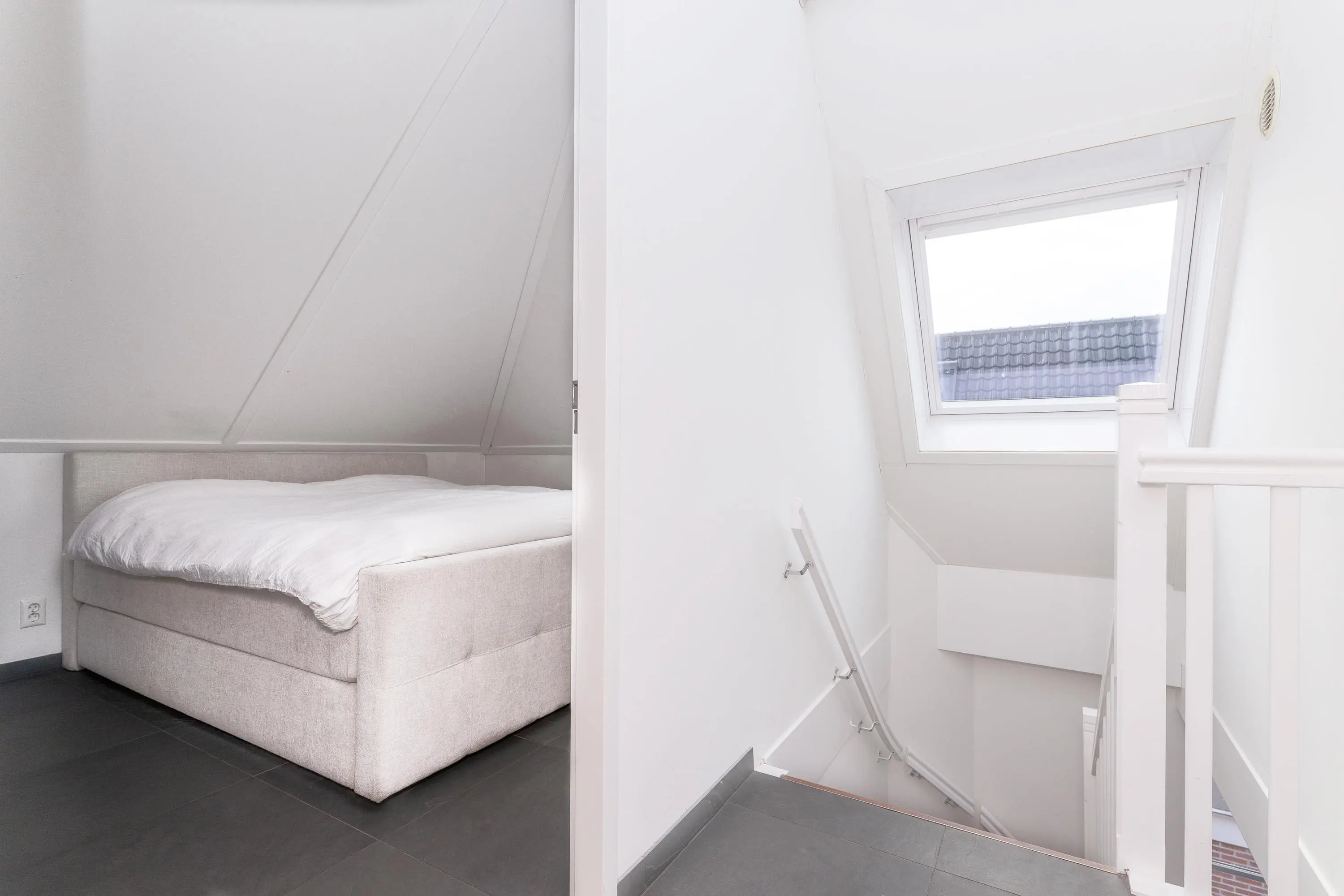 De tweede verdieping biedt een ruime vierde slaapkamer met maar liefst vier Velux-dakramen, waardoor het licht hier overvloedig binnenvalt en je volop privacy geniet. Daarnaast is er een aparte technische ruimte met aansluitingen voor wasmachine en droger, waardoor alles netjes en praktisch is ingedeeld. Als kers op de taart vind je hier een heerlijke privésauna – jouw eigen wellnessplek om te ontspannen en onthaasten.