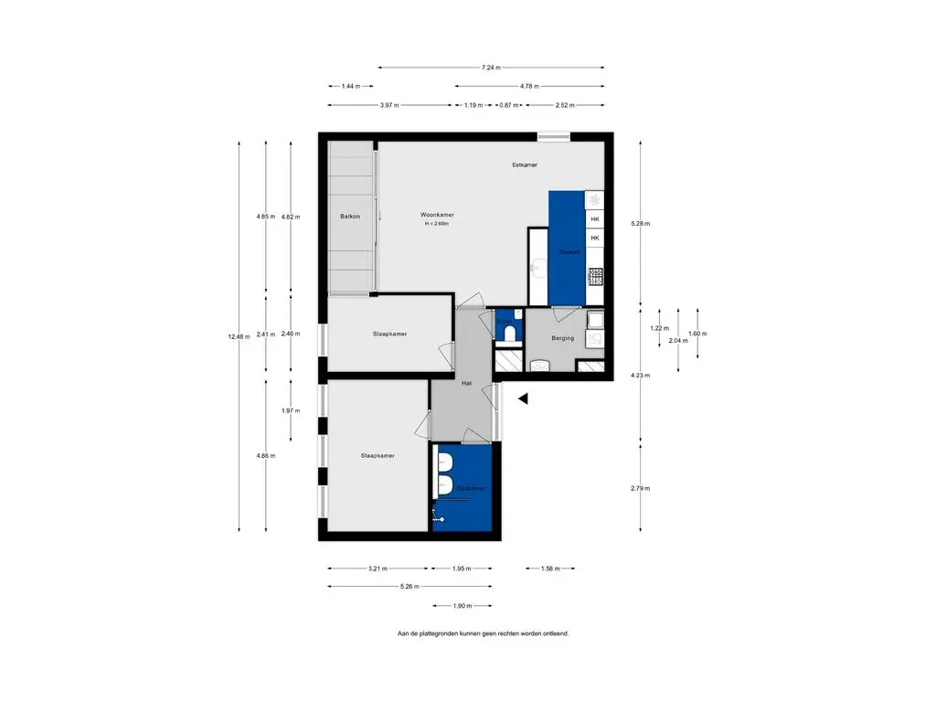 Aan de hal liggen de badkamer, het toilet en twee goed gedimensioneerde slaapkamers. De grootste slaapkamer is echt van een fors formaat en biedt door de drie ramen een heerlijk luxe en licht karakter. De verzorgde badkamer is voorzien van een kingsize inloopdouche en dubbele wastafel. Het toilet ligt midden in het appartement en is dus vanuit alle omliggende ruimtes eenvoudig te bereiken.