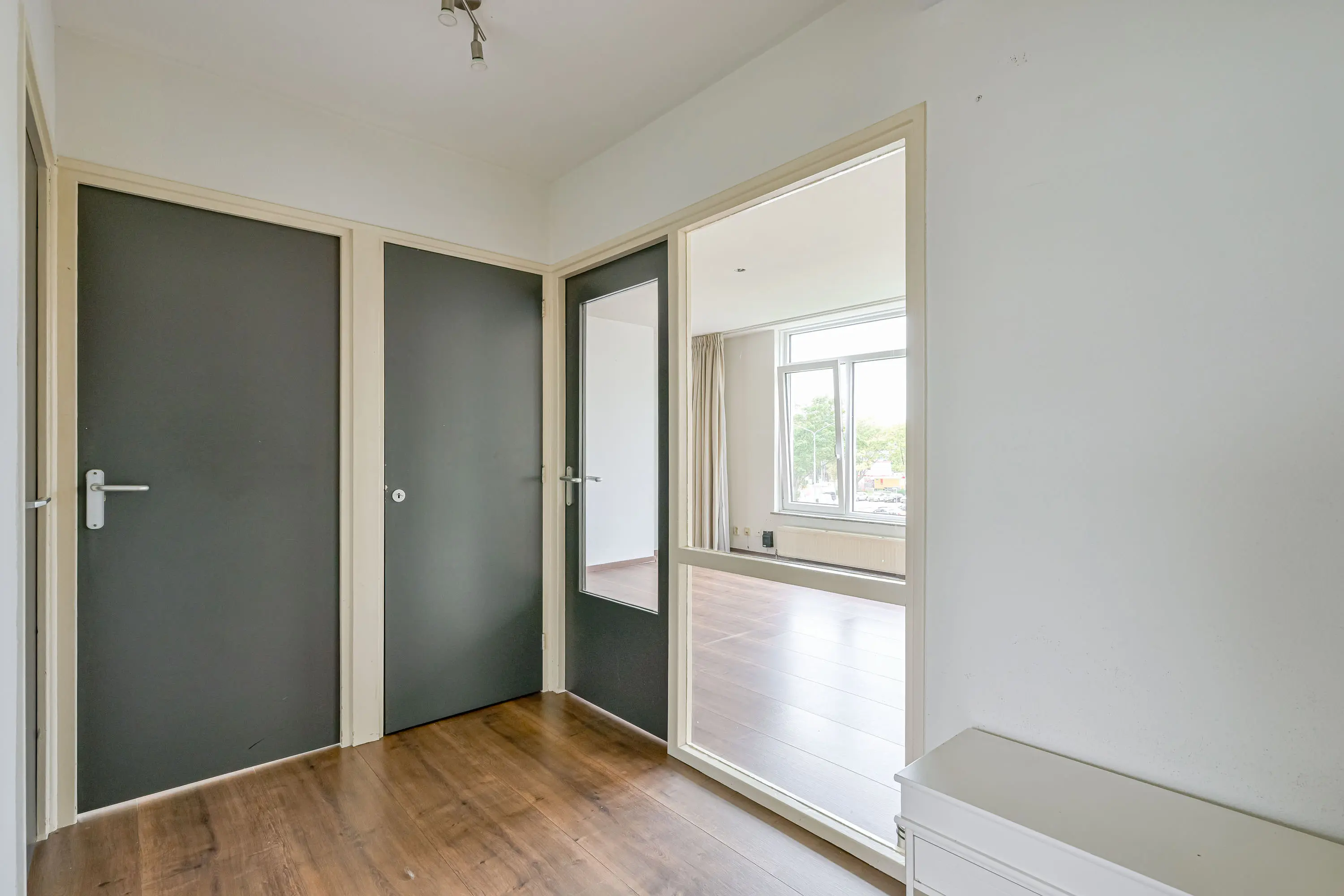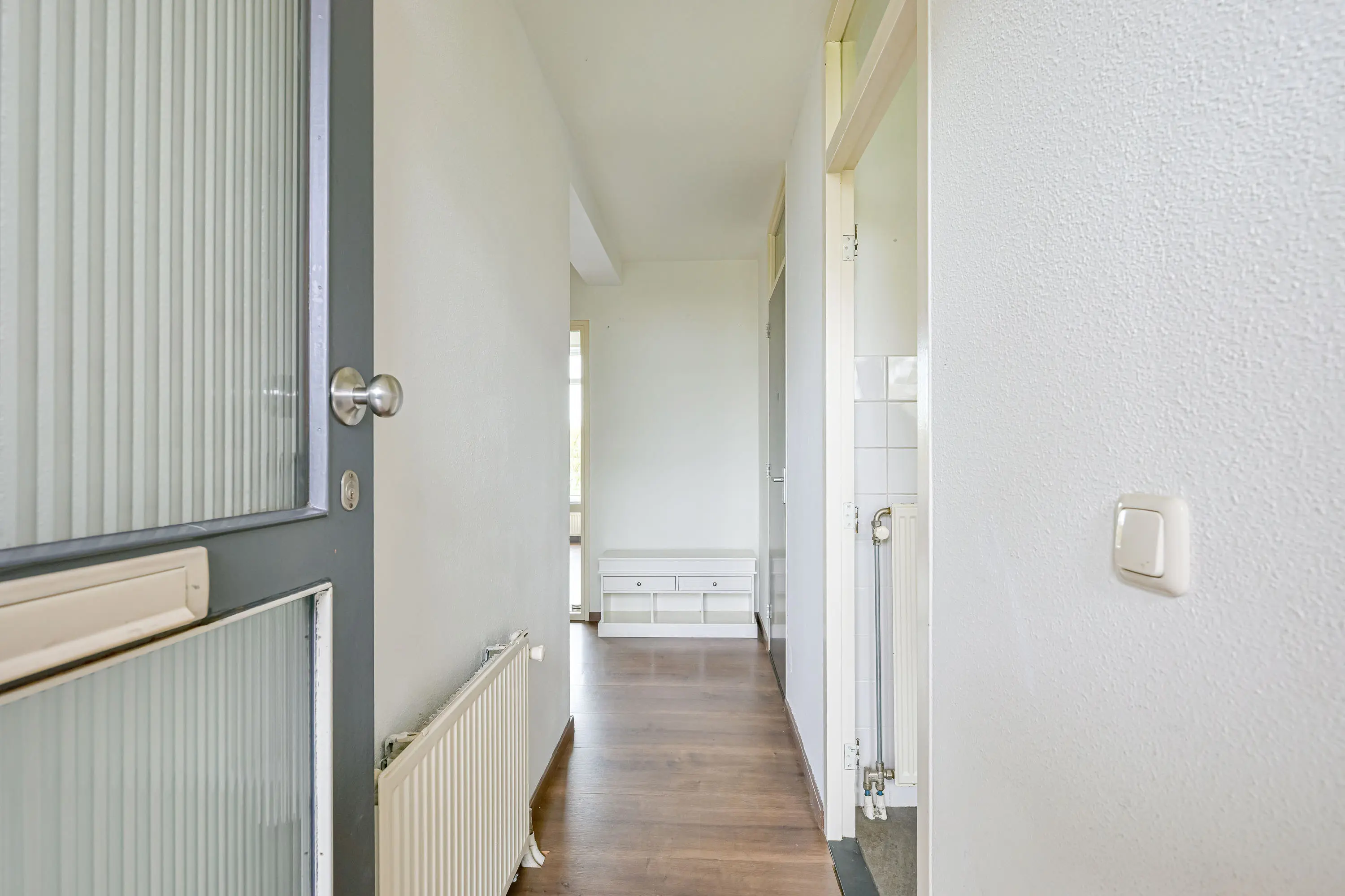 Bij binnenkomst heeft u vanuit de hal van het appartement toegang tot de twee slaapkamers, keuken, woonkamer en de badkamer.