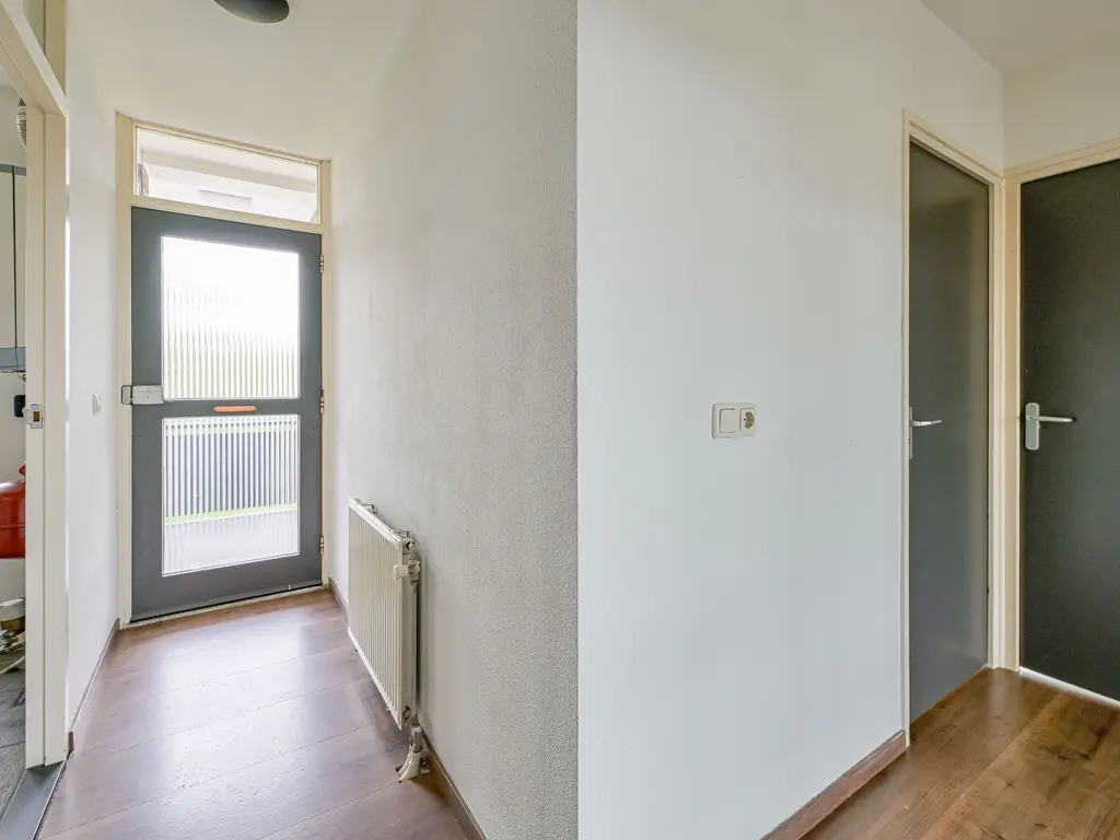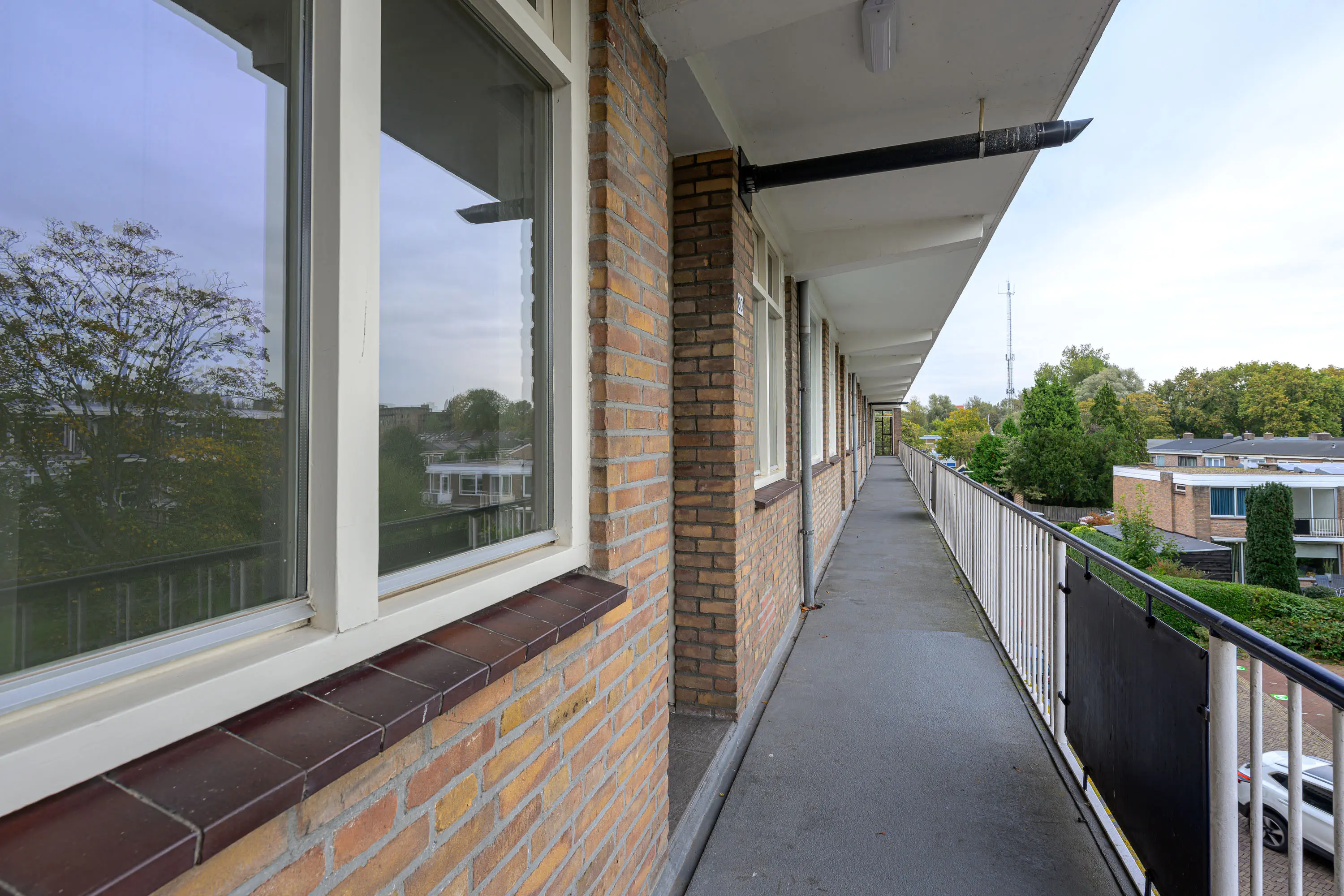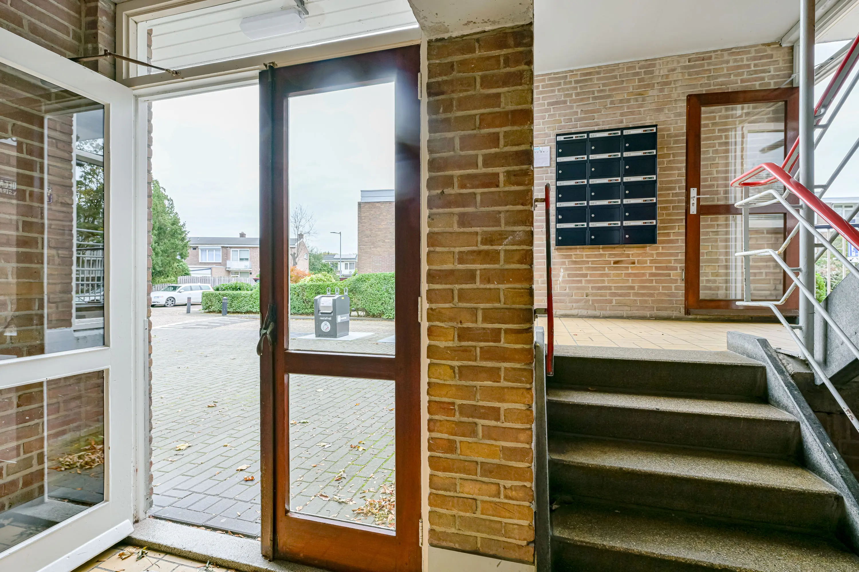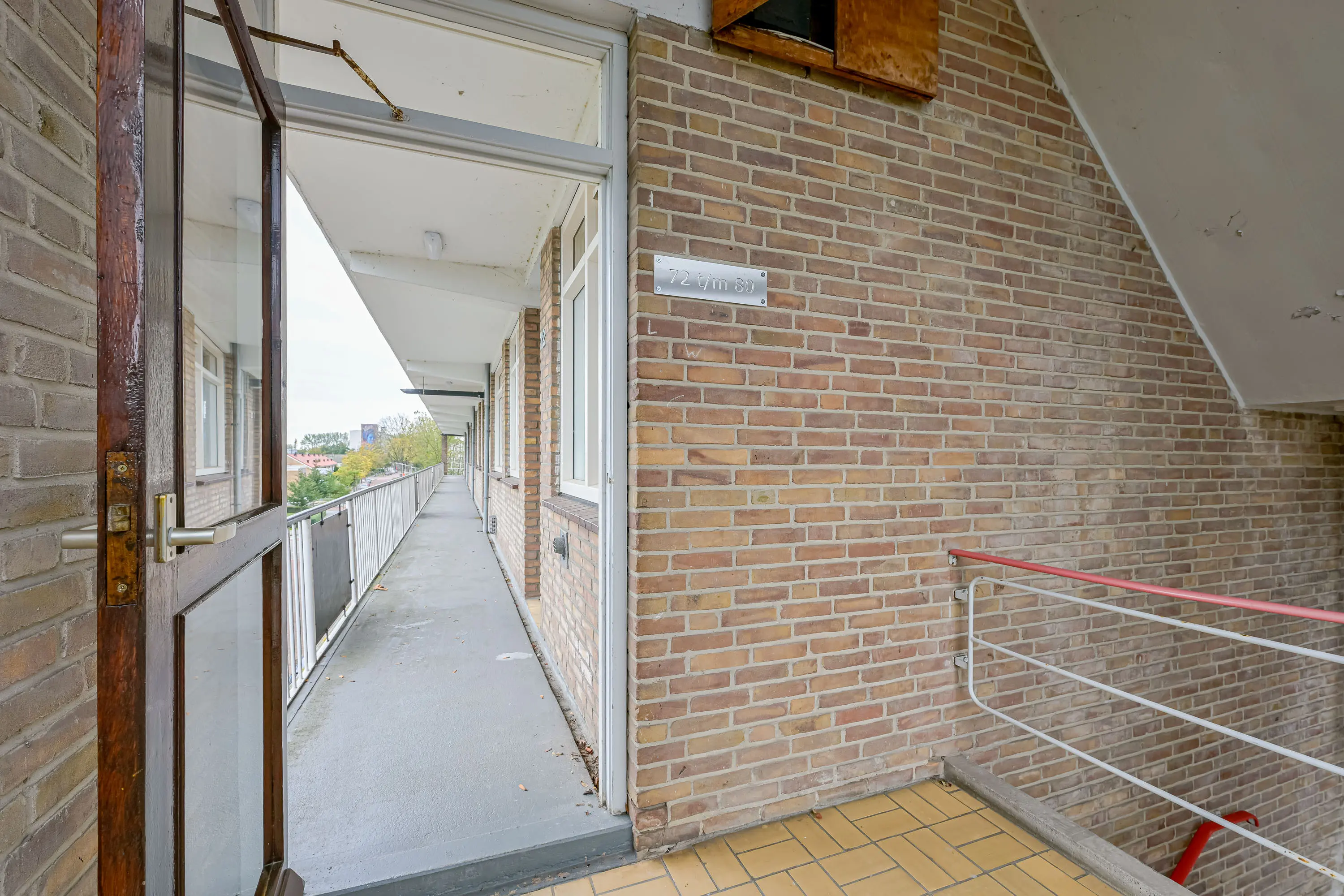 Vanuit de centrale hal waar ook de brievenbussen zijn gesitueerd bereikt u via het trappenhuis de galerij welke toegang geeft tot de voordeur.
