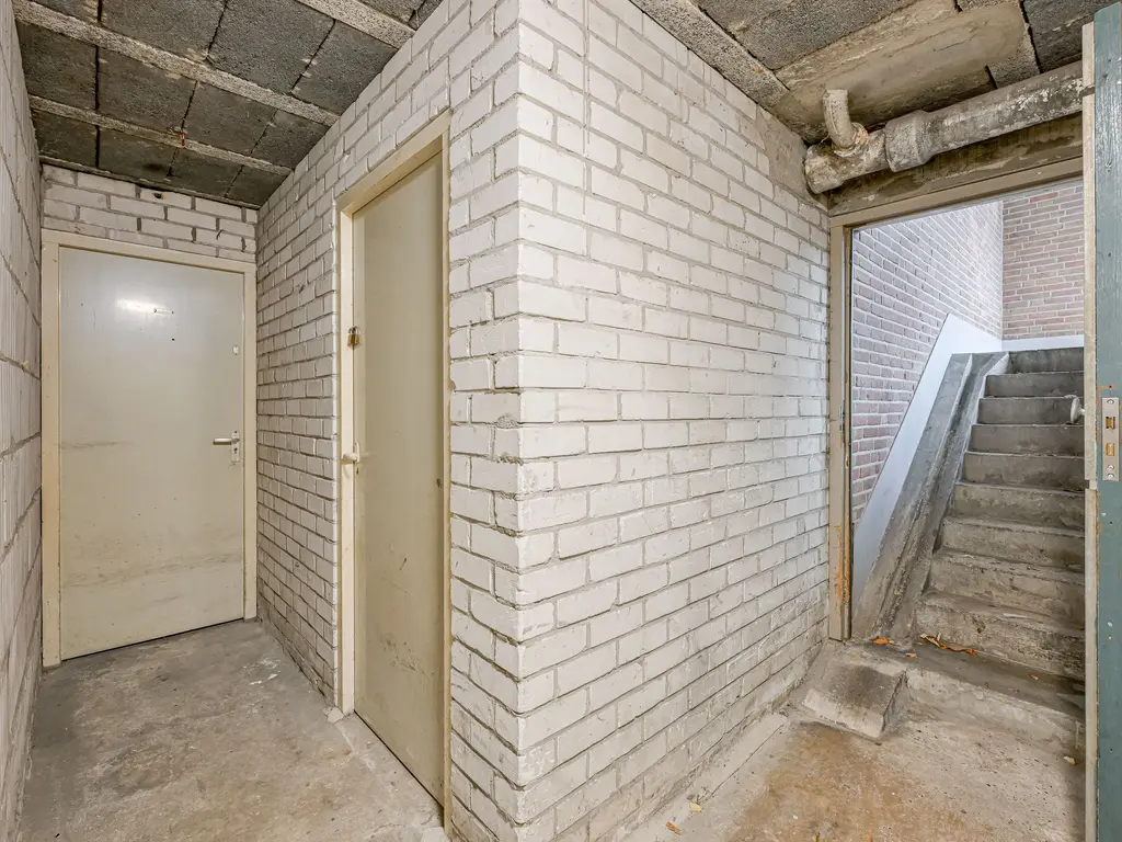 Gaat u vanuit de centrale hal via de korte trap naar benden dan bereikt u de toegang tot de bergingen. Ook dit appartement heeft een eigen privé berging.