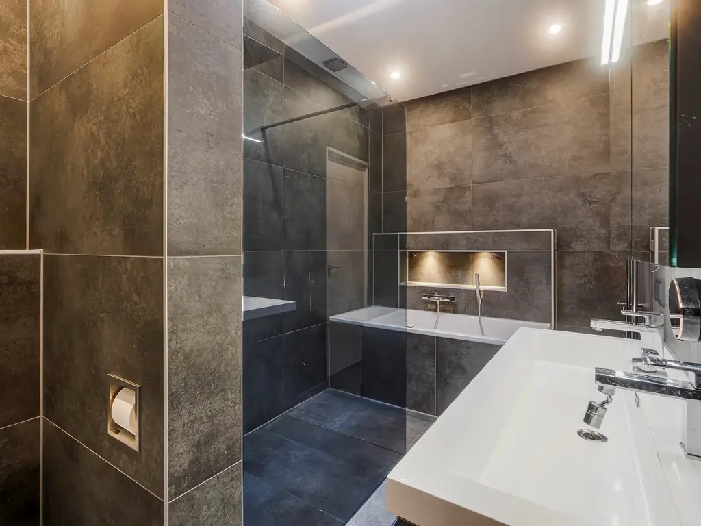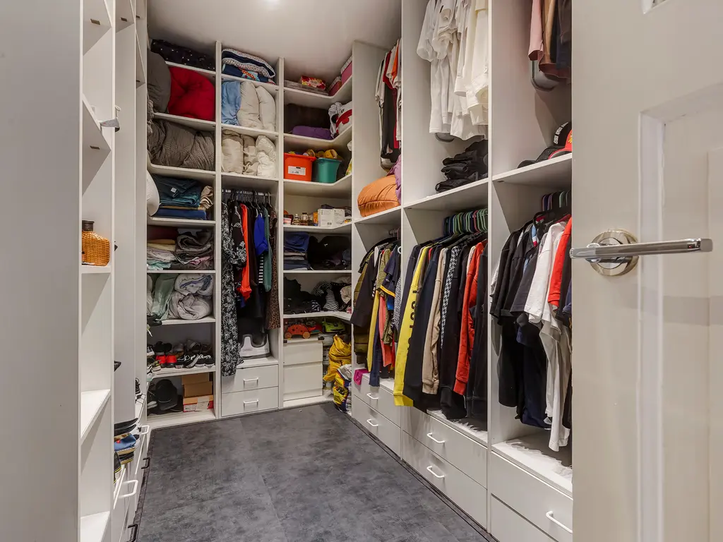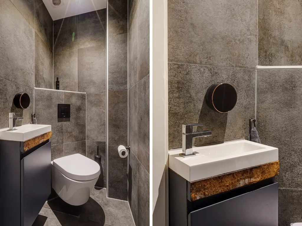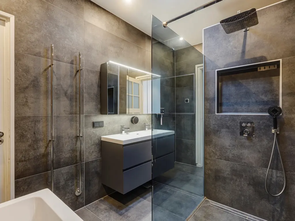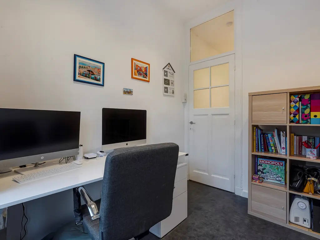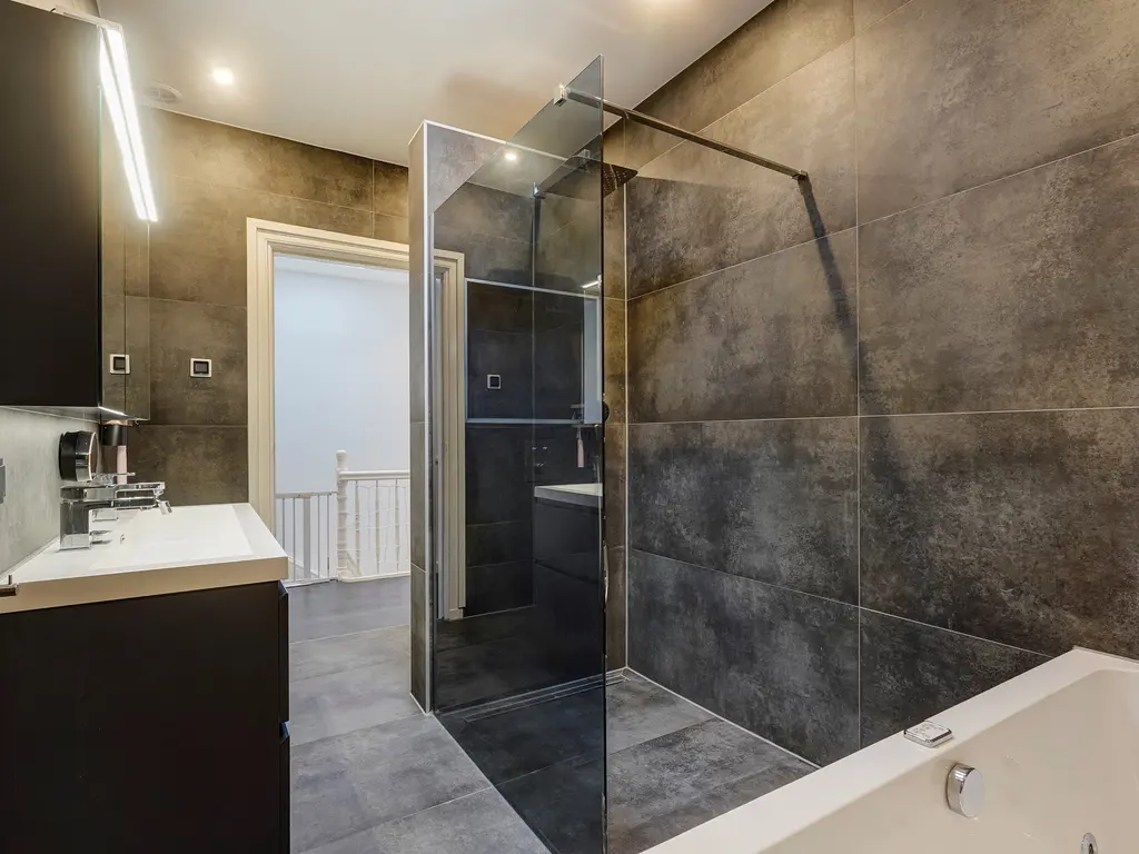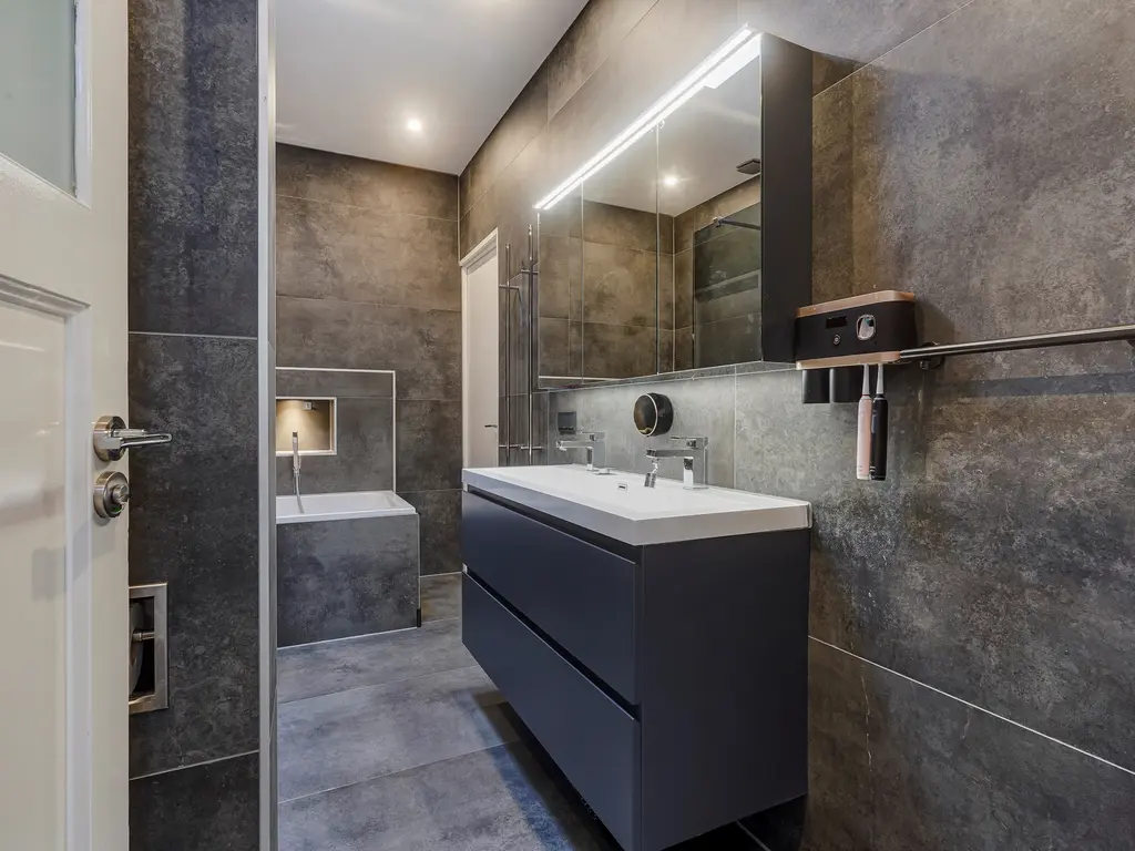 Second floor: spacious landing with a second toilet, storage room with the central heating boiler (Remeha, built in 2012) and washing machine connection. At the front of the house, you will find two spacious bedrooms, both large enough for a double bed. At the rear of the house, you will find the master bedroom with access to the terrace and the adjacent bathroom. The bathroom features a jacuzzi, walk-in shower, double vanity, third toilet, electric underfloor heating, and mechanical ventilation. The second back room has been converted into a walk-in closet, but can, of course, be used as a bedroom again if desired.