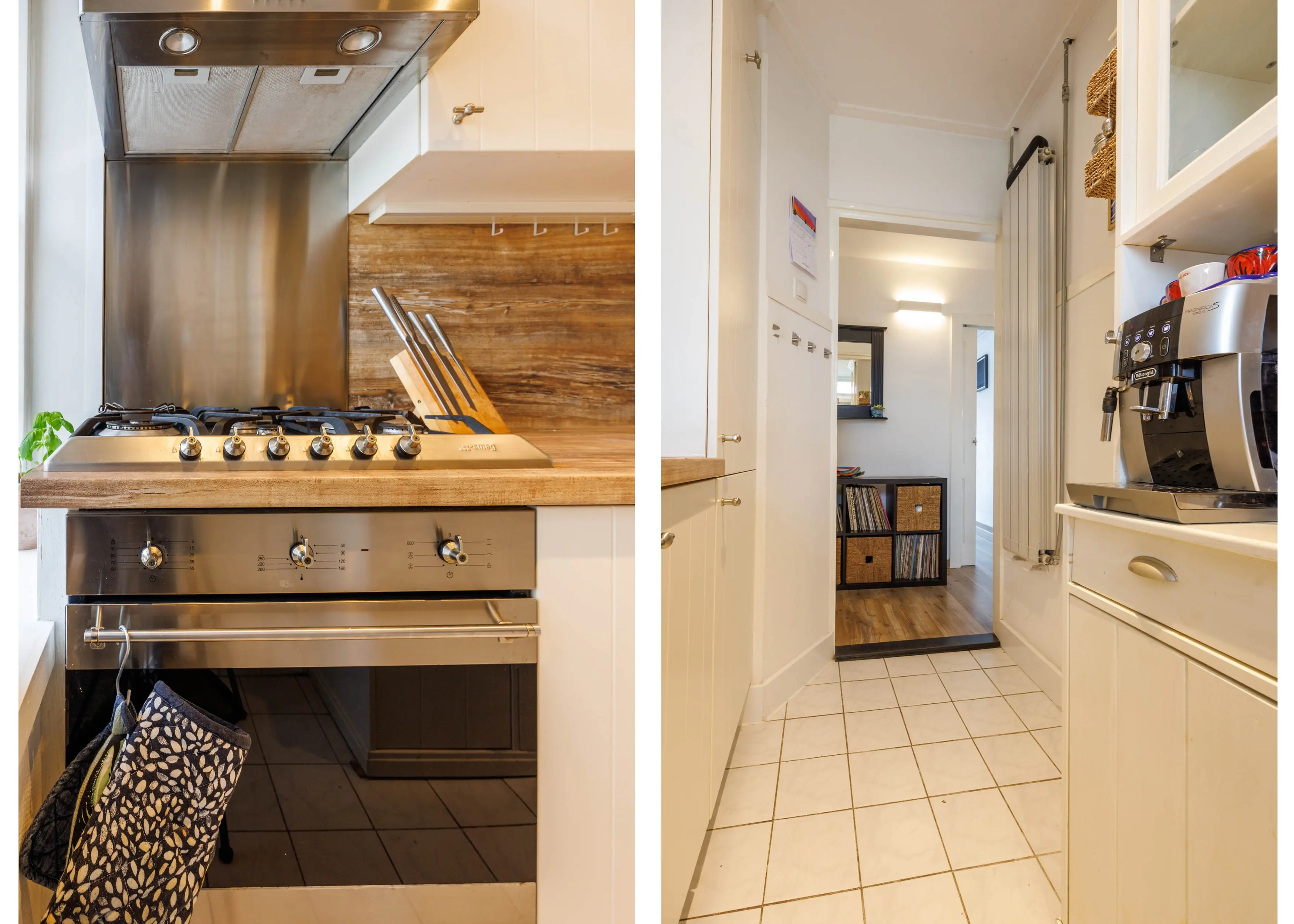 • Keuken met oven, gasfornuis, vaatwasser en koelkast