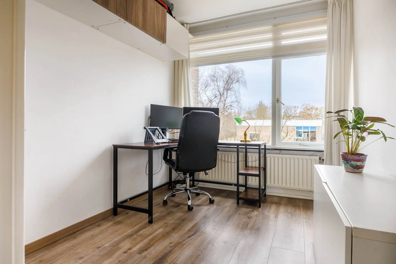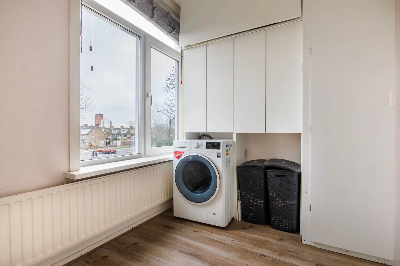 In een rustige en groene woonomgeving in Leiden vind je dit verzorgde en lichte appartement met veel ramen, prettig indeelbare ruimtes en energielabel B. Dankzij het vele glas en de gunstige ligging geniet je de hele dag door van een mooie lichtinval. Het appartement is volledig voorzien van dubbel glas en beschikt over een ruime berging op de begane grond. Een uniek pluspunt is de extra kamer die nu in gebruik is als waskamer/inloopkast, maar die – indien gewenst – eenvoudig bij de woonkamer kan worden getrokken door een muur te verwijderen. Zo ontstaat een royale living met nog meer licht en ruimte. De keuken is uitgerust met een gasfornuis, oven, vaatwasser en koelkast en vormt een fijne, lichte plek aan de achterzijde van het appartement.