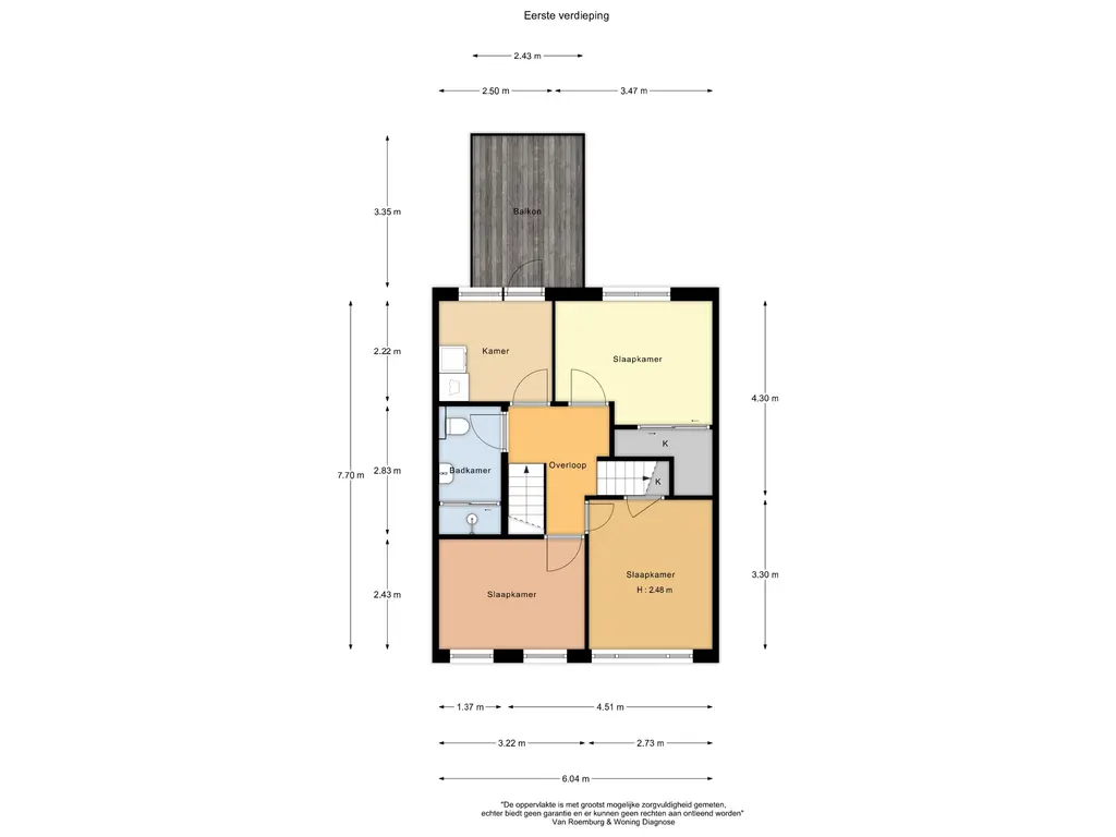 Aan de voorzijde bevinden zich nog 2 ruime slaapkamers waarvan 1 met een ruime trapkast.