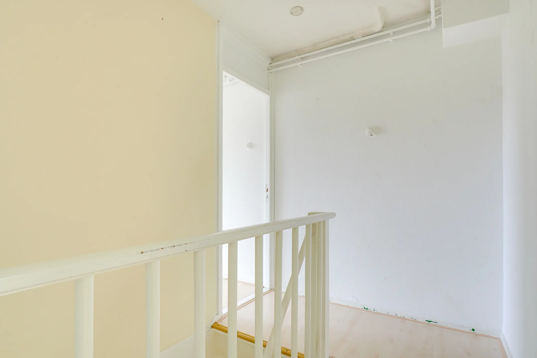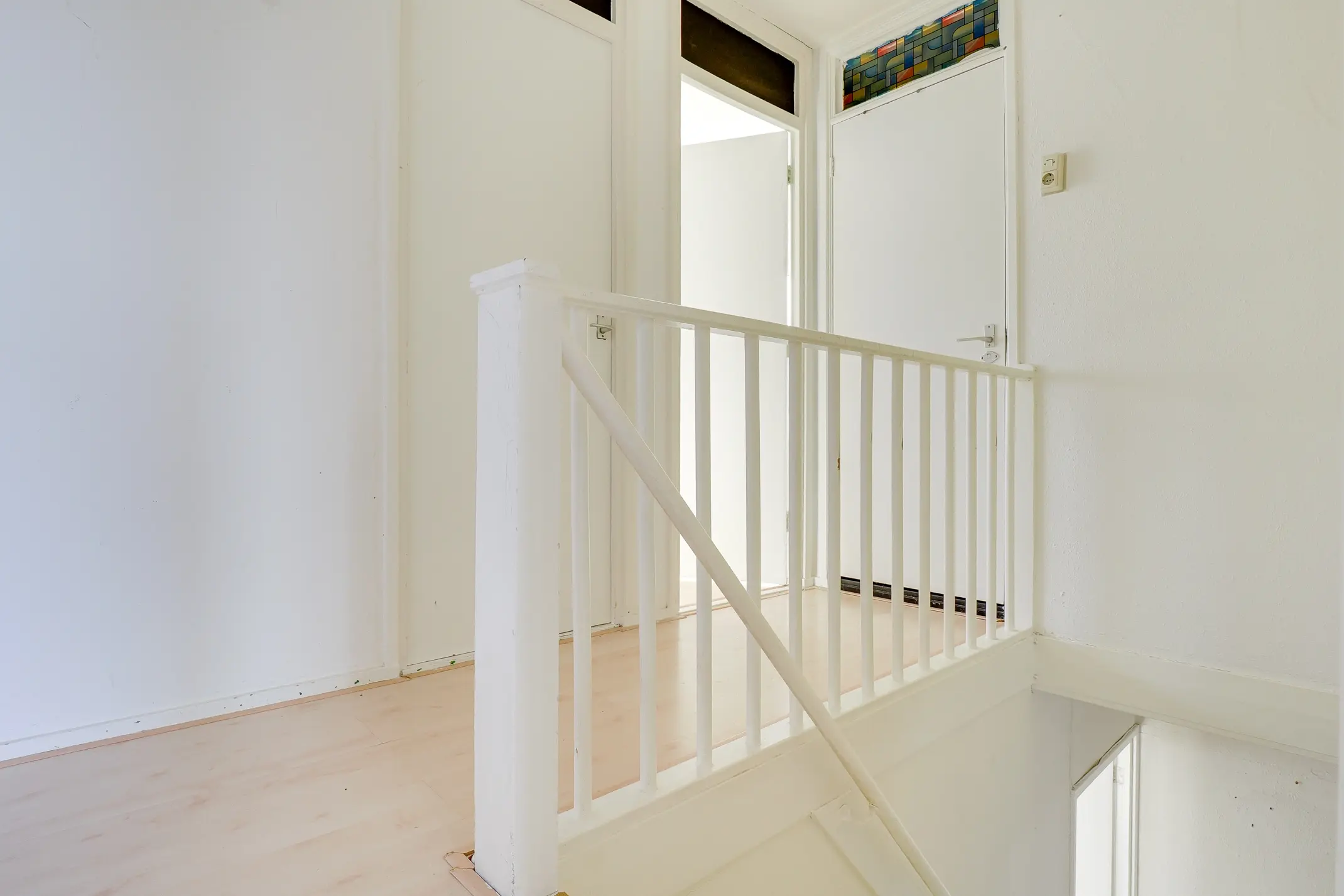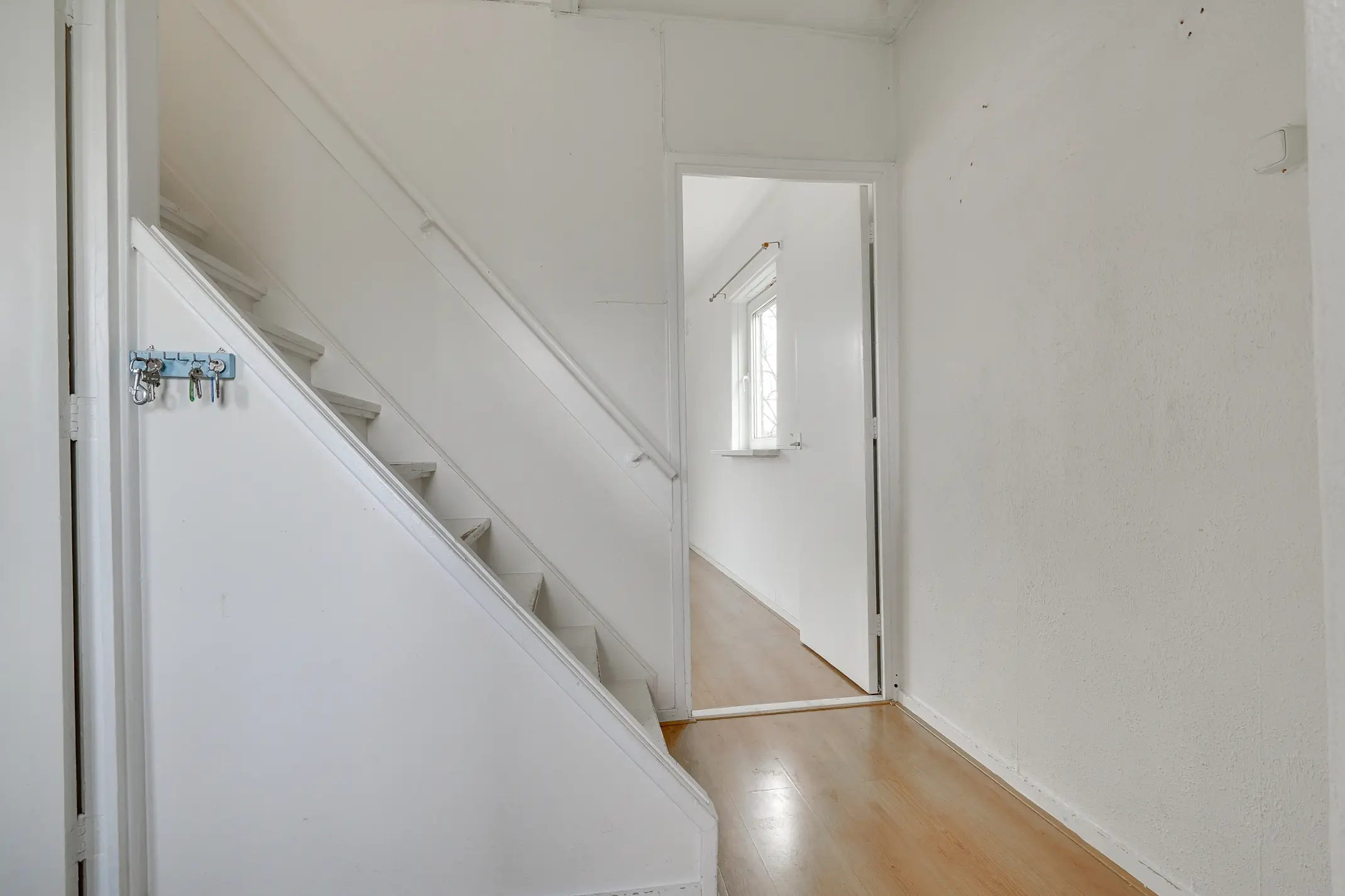 De ruime hal biedt toegang tot het toilet en de trap naar de slaapverdieping, waardoor de indeling efficiënt en praktisch is.