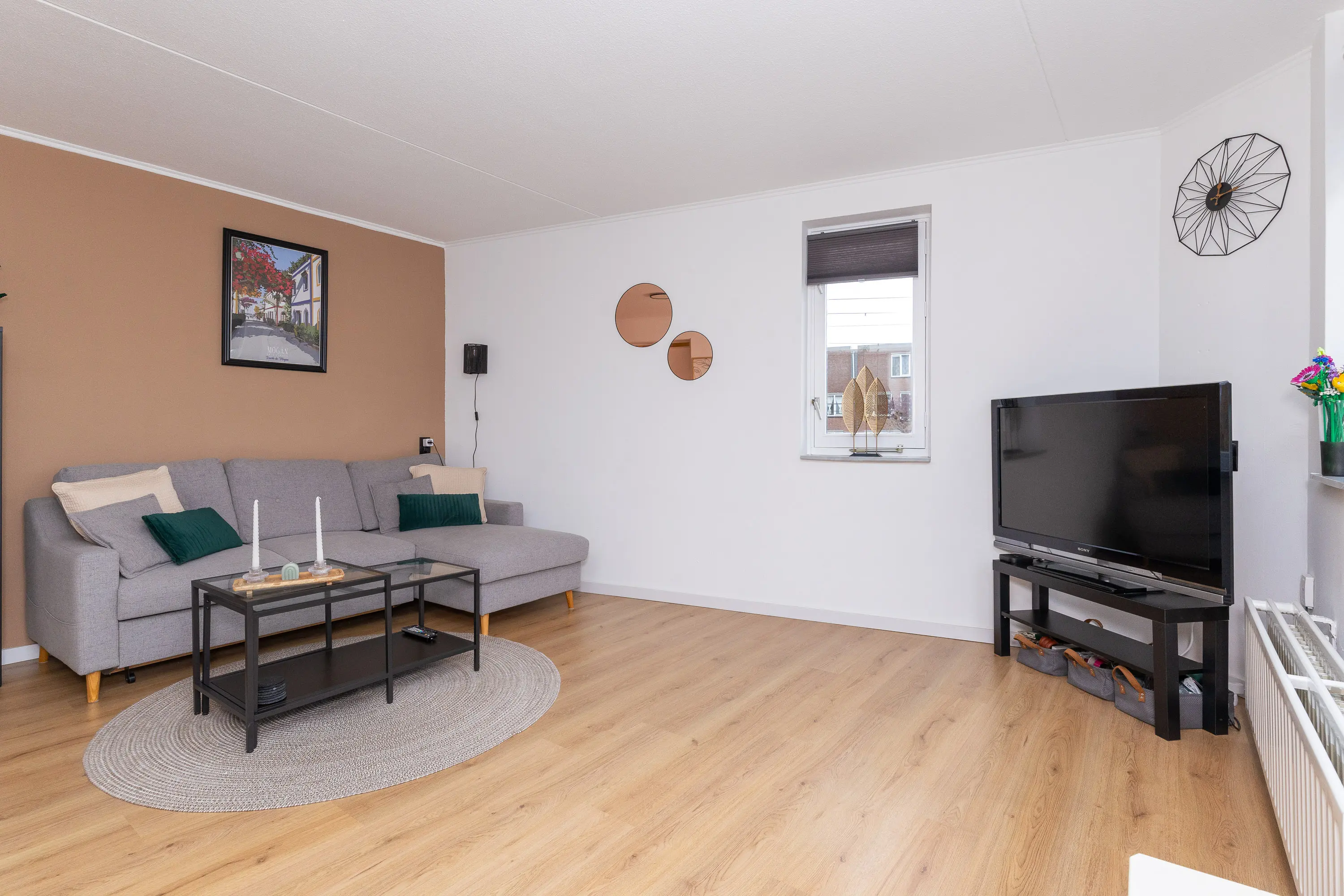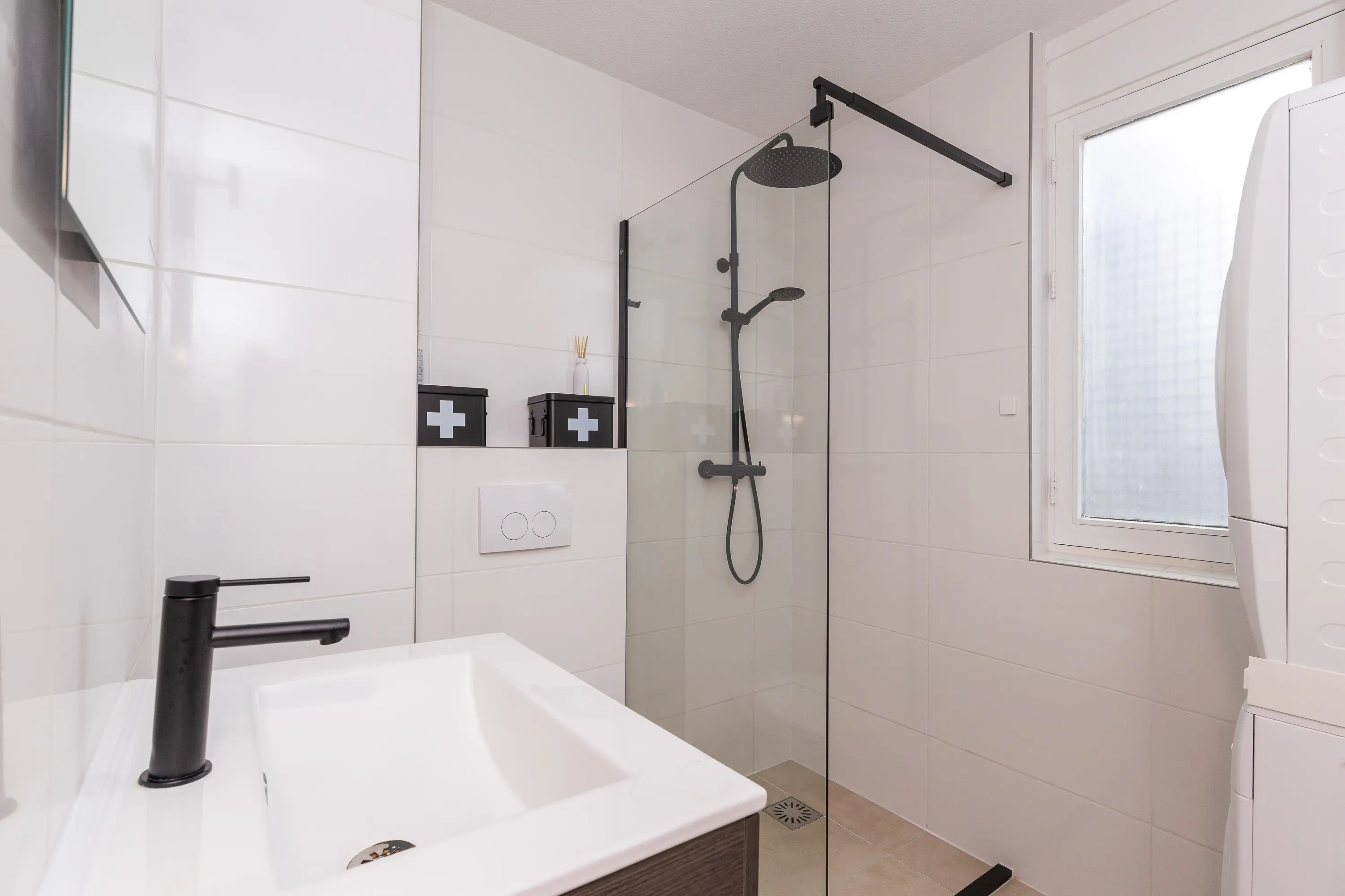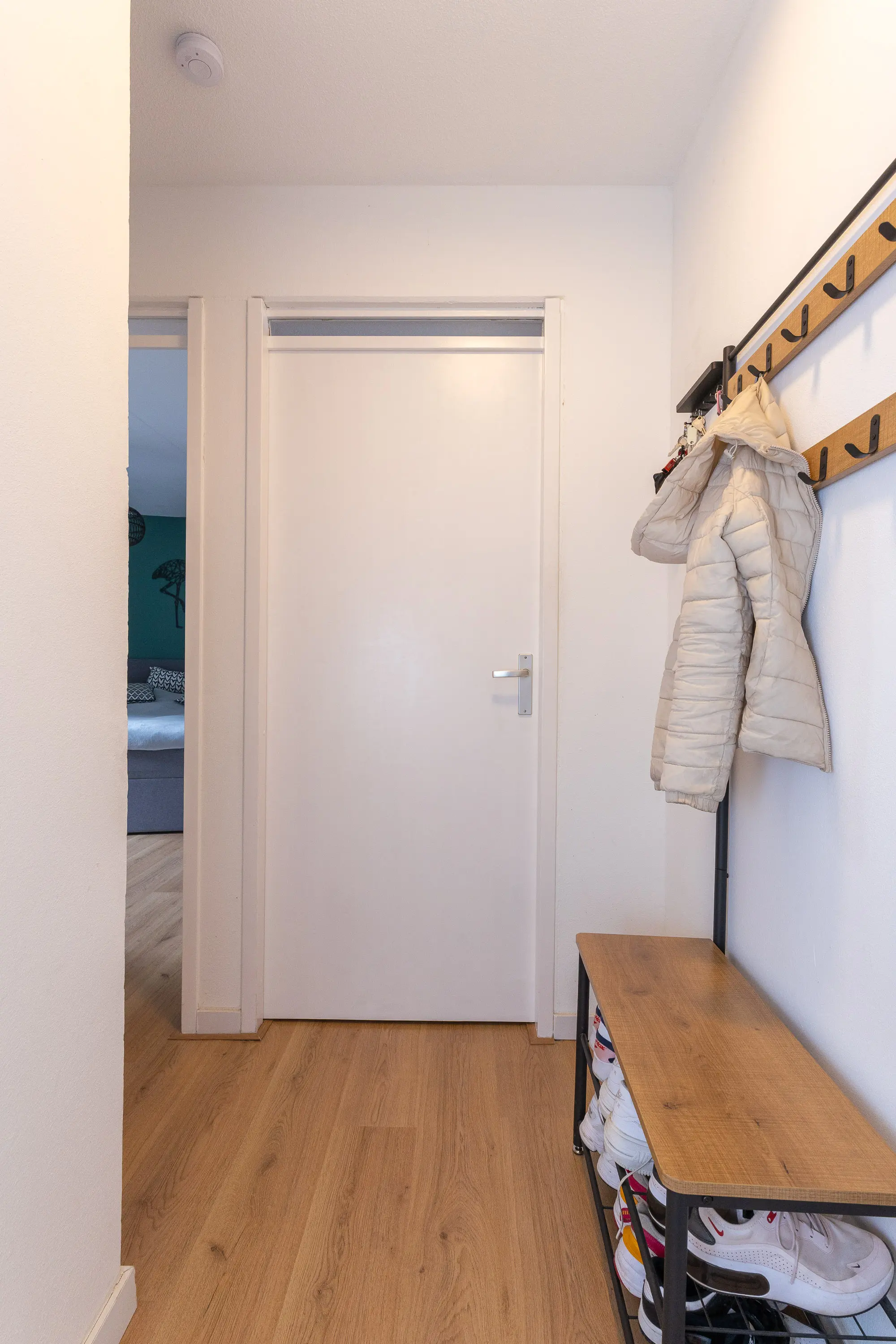 De ruime slaapkamer aan de achterzijde biedt voldoende plek voor een groot bed en een kledingkast, en geniet eveneens van veel natuurlijk licht. De badkamer is in 2022 volledig vernieuwd en heeft een moderne, frisse uitstraling. Deze is uitgerust met een inloopdouche met rainshower, een toilet, witgoedaansluiting, wandradiator en een raam voor extra ventilatie en daglicht.