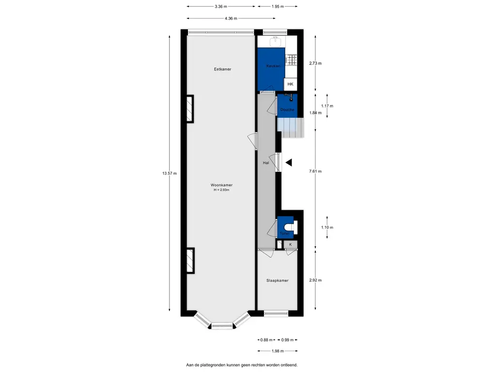 De verzorgde keuken met inbouwapparatuur is afgescheiden maar zou eventueel bij de woonkamer betrokken kunnen worden. Als je dat zou doen zou je de keurige doucheruimte wat kunnen uitbreiden (verdubbelen). Ben je blij zoals die er nu bij staat? Dat kan ik me ook goed voorstellen; de afwerking is super stijlvol! Datzelfde geldt voor het toilet; bijzonder netjes.