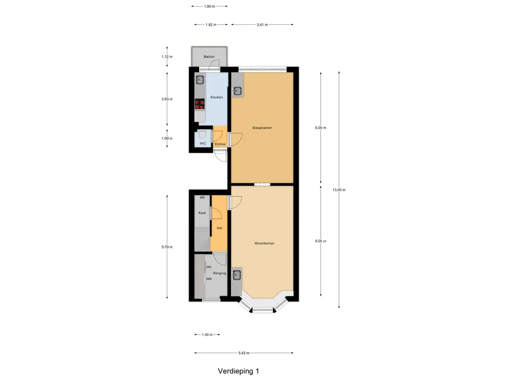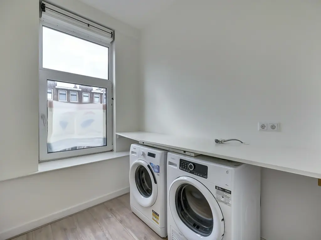 De voorkamer is een heerlijk lichte woonkamer met veel ruimte voor een grote zithoek en eventueel nog een werkplek. Vanuit de voorkamer stap je de hal aan de voorzijde in, die is voorzien van een grote kast waar de meters zijn geplaatst en waar je nog extra bergruimte hebt. De kleine kamer aan de voorzijde is voorzien van de aansluitingen voor wasmachine en droger.