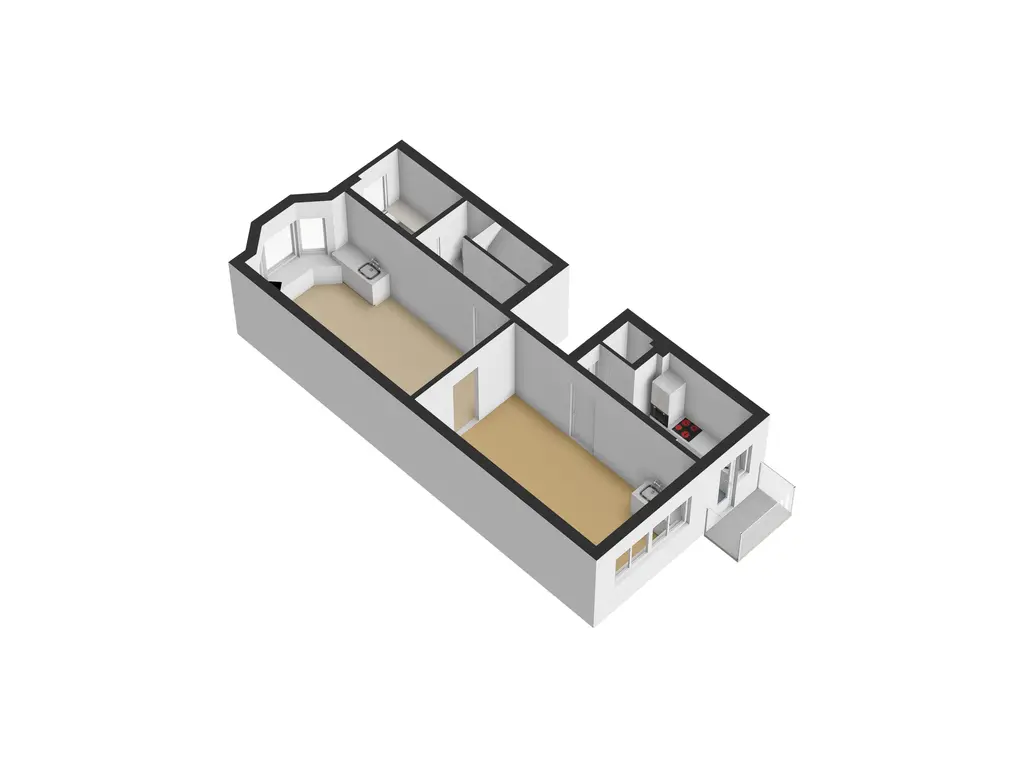Dit appartement is voorheen verhuurd geweest, waarbij er drie ruime kamers waren met eigen keuken. De keukens zijn blijven zitten; je zou hier dus ook prima met z’n drieën kunnen wonen, waarbij je het toilet en de badkamer deelt, maar elk je eigen keukenblokje hebt en daarnaast een gezamenlijke keuken. Uiteraard zijn de keukenblokjes er ook zo uit, en bewoon je dit huis gewoon in je eentje, met z’n tweeën of met je gezin.