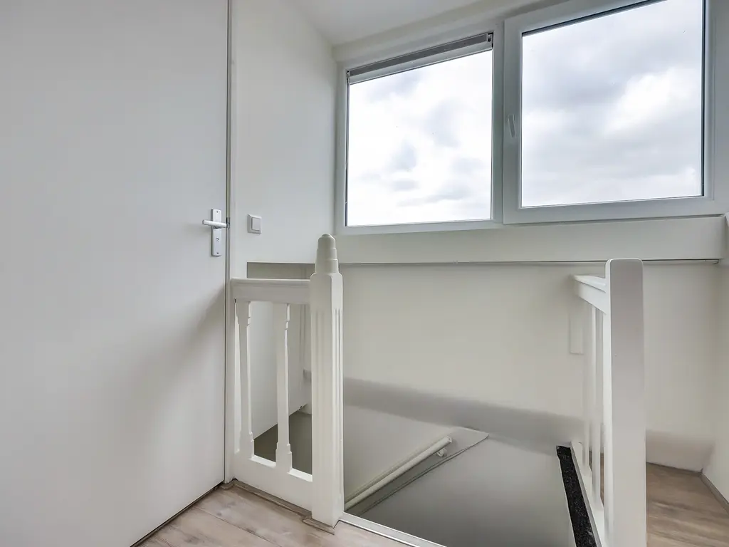 Deze heerlijk lichte en ruime bovenwoning is verdeeld over de derde en halve vierde etage. Samen met B02 deel je dezelfde voordeur, en op de tweede etage heb je je eigen entree.