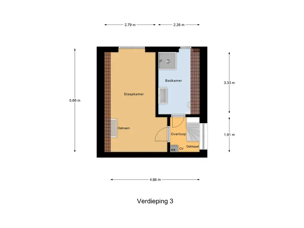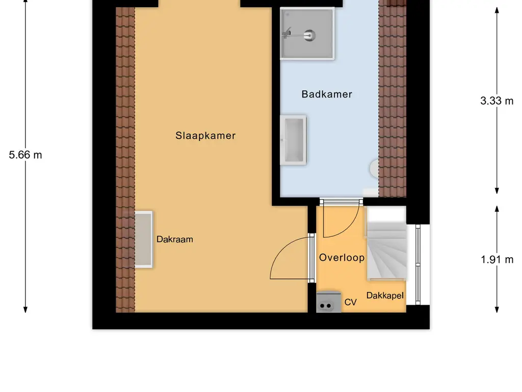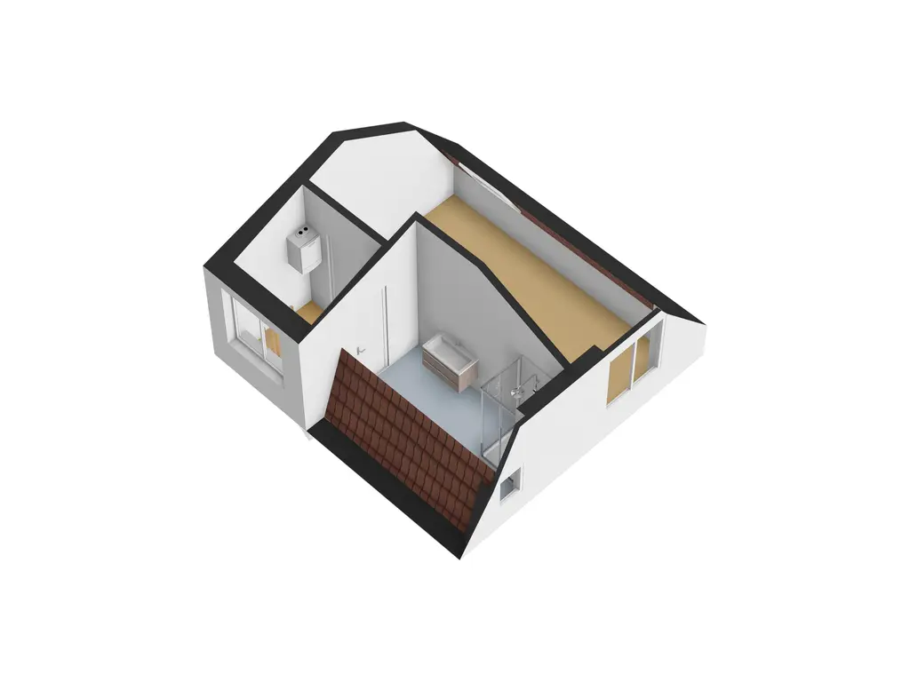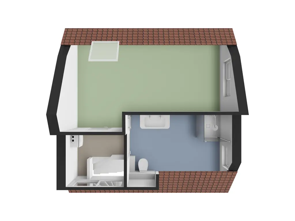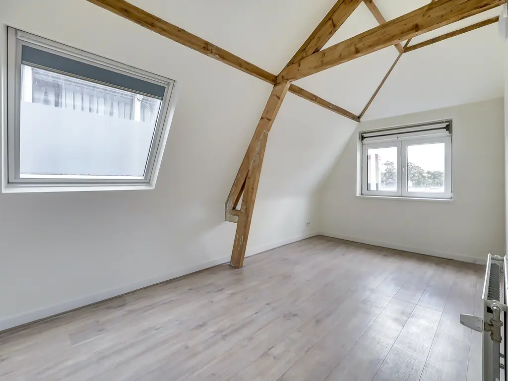 Via de trap bereik je de vierde verdieping, waar je beschikt over de voorste helft van de etage. Hier tref je een toffe, lichte slaapkamer met ruimte voor een groot tweepersoonsbed en voldoende plaats voor kledingkasten.