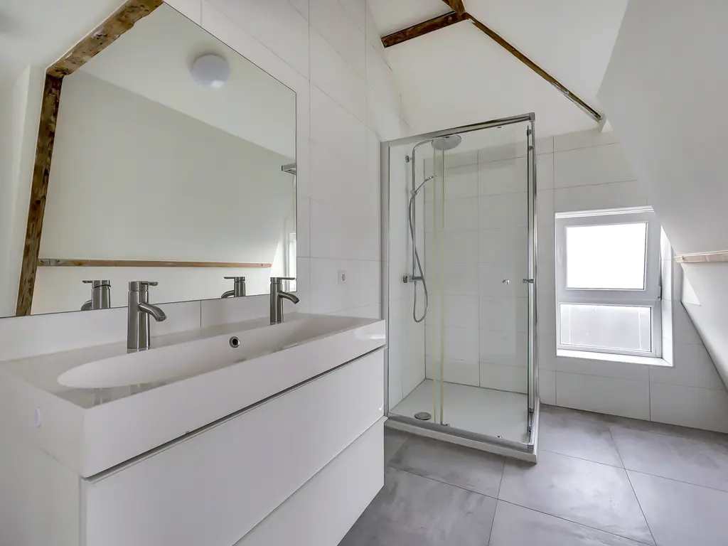 Daarnaast bevindt zich op deze verdieping de badkamer, voorzien van een grote douchecabine met zowel regen- als handdouche, een tweede toilet, een dubbele wastafel met mengkranen, een grote spiegel en een strak