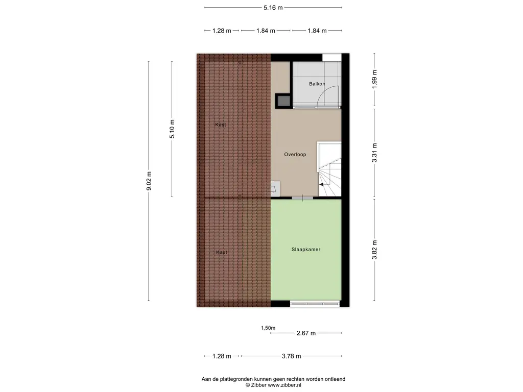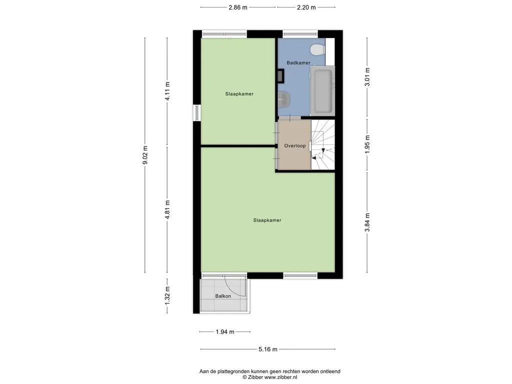 Balkon (ca. 3 m2) is gelegen op het noordoosten.