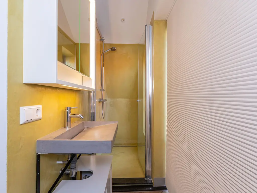 • Slaapkamer met badkamer ensuite (douche en wastafel).