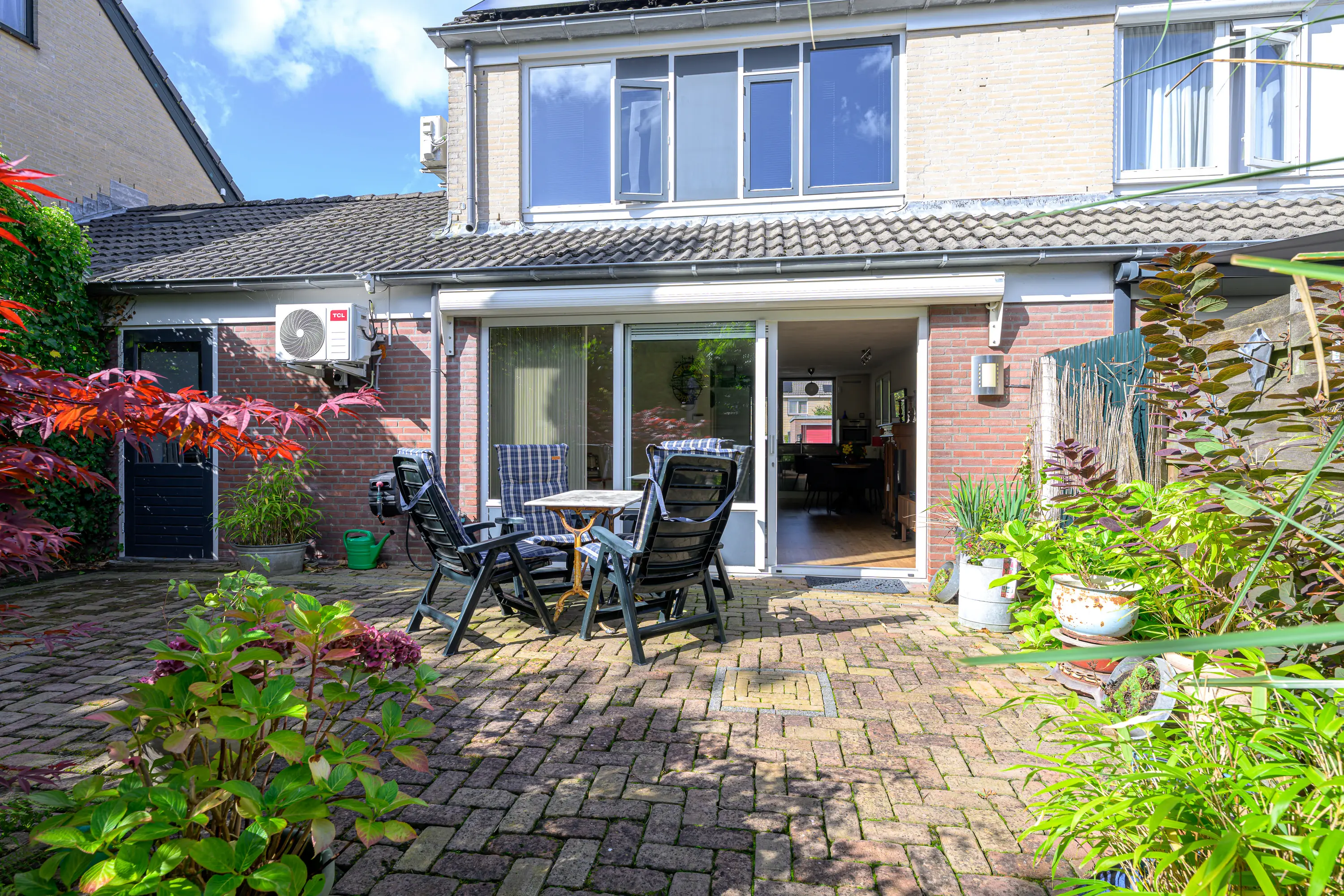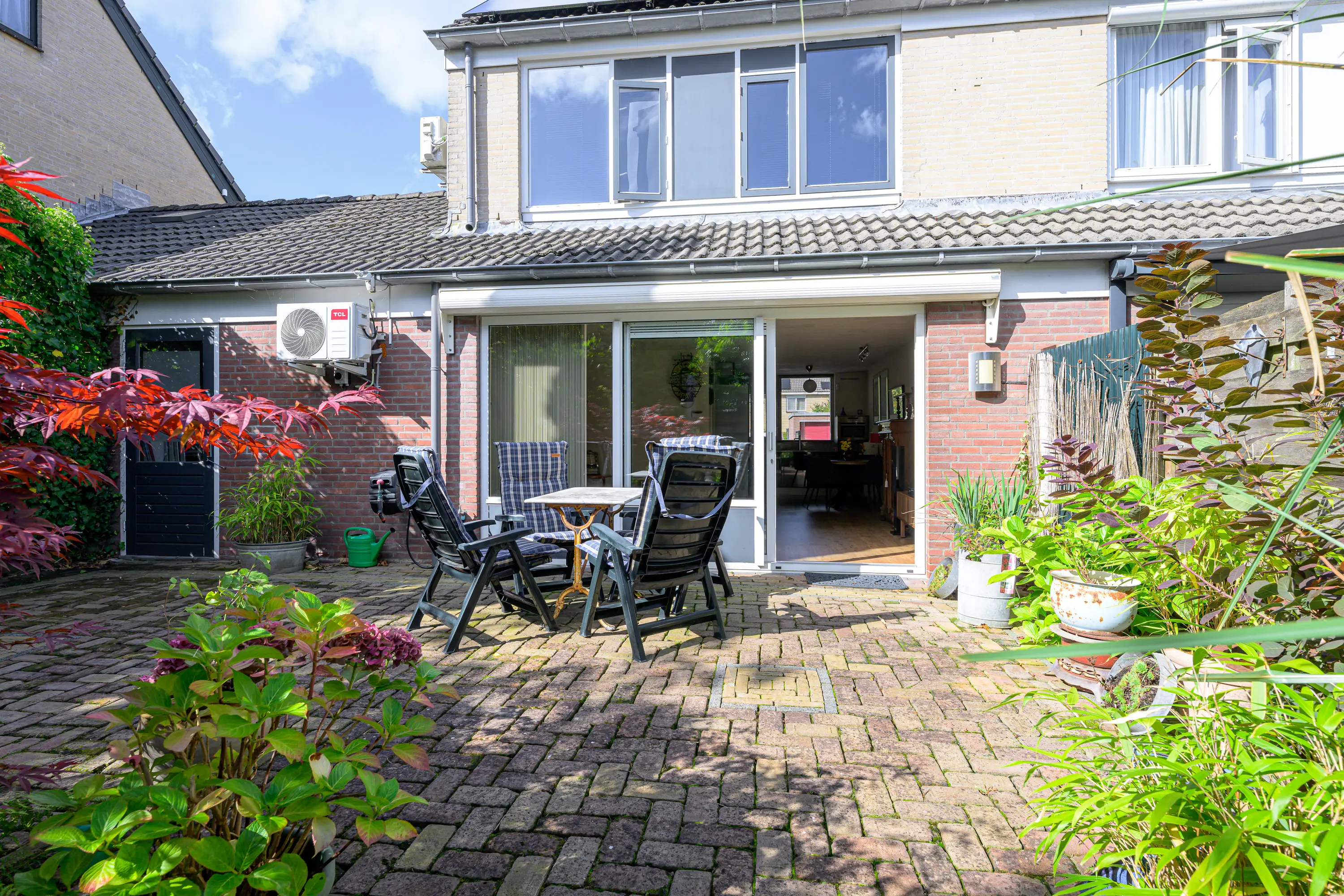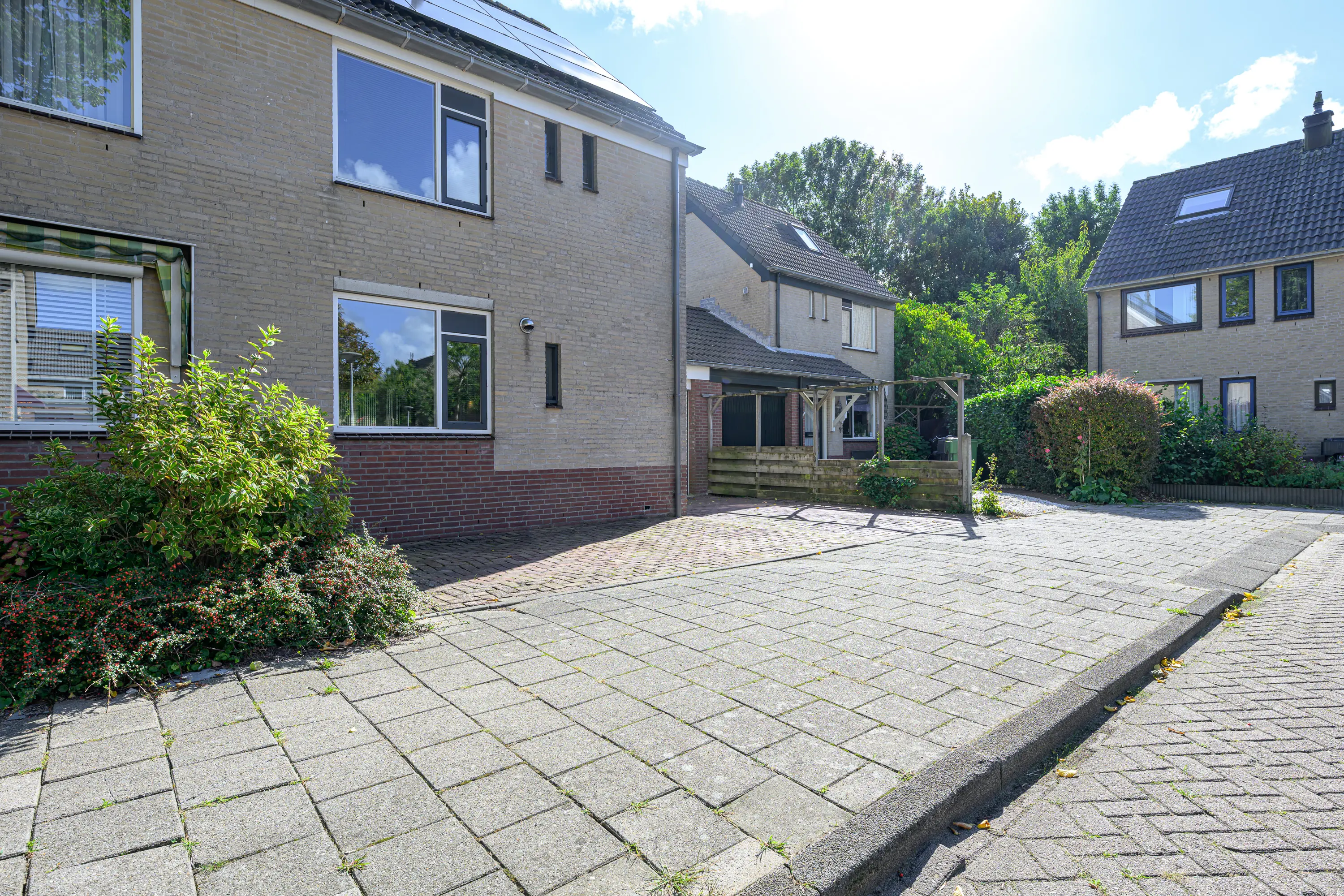 De tuin aan de voorzijde van de woning is geheel bestraat. Hierdoor is er veel parkeerruimte ontstaan en parkeert u met gemak met twee auto’s op uw eigen terrein. U hoeft dus nooit ver te slepen met een zware tas met boodschappen.