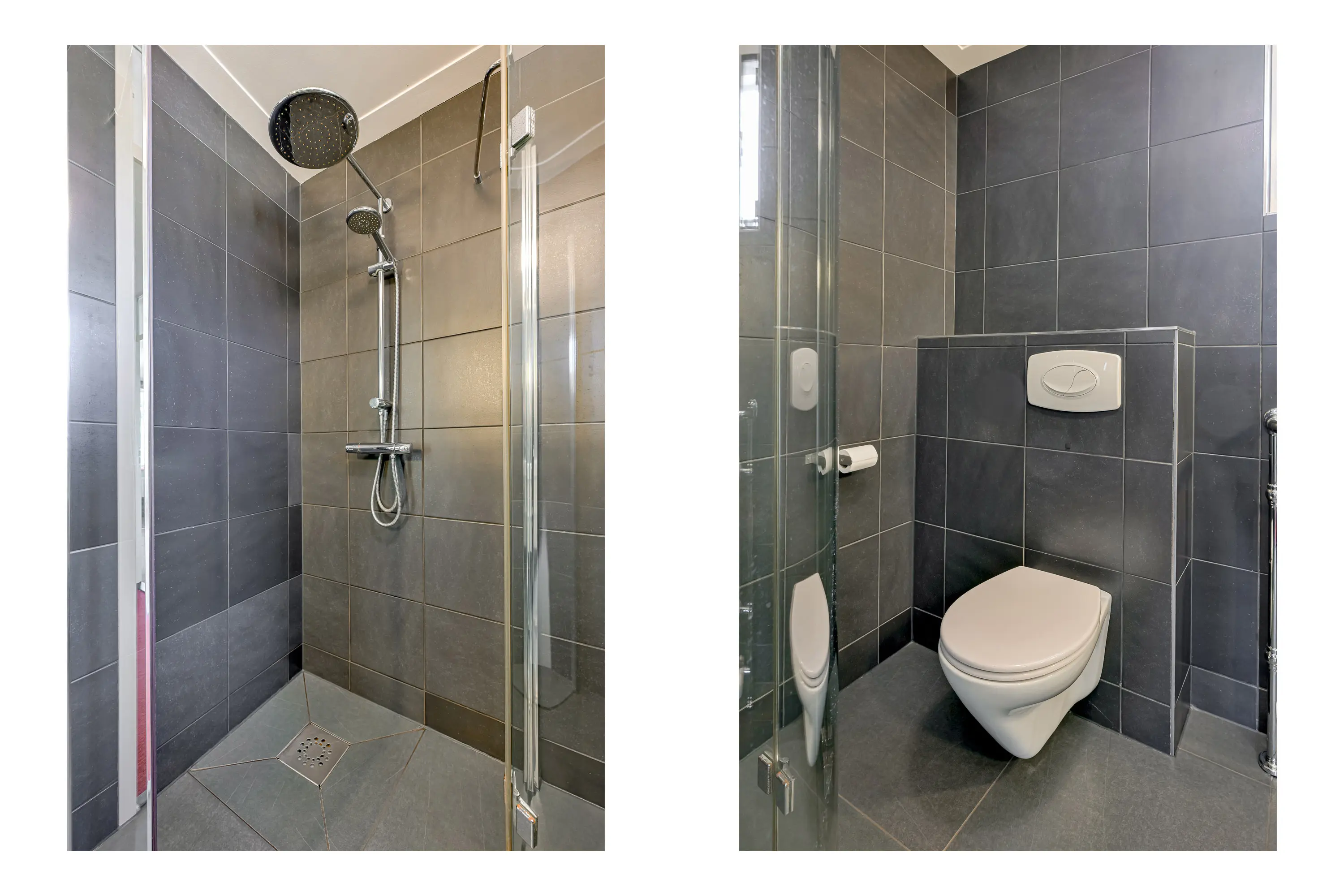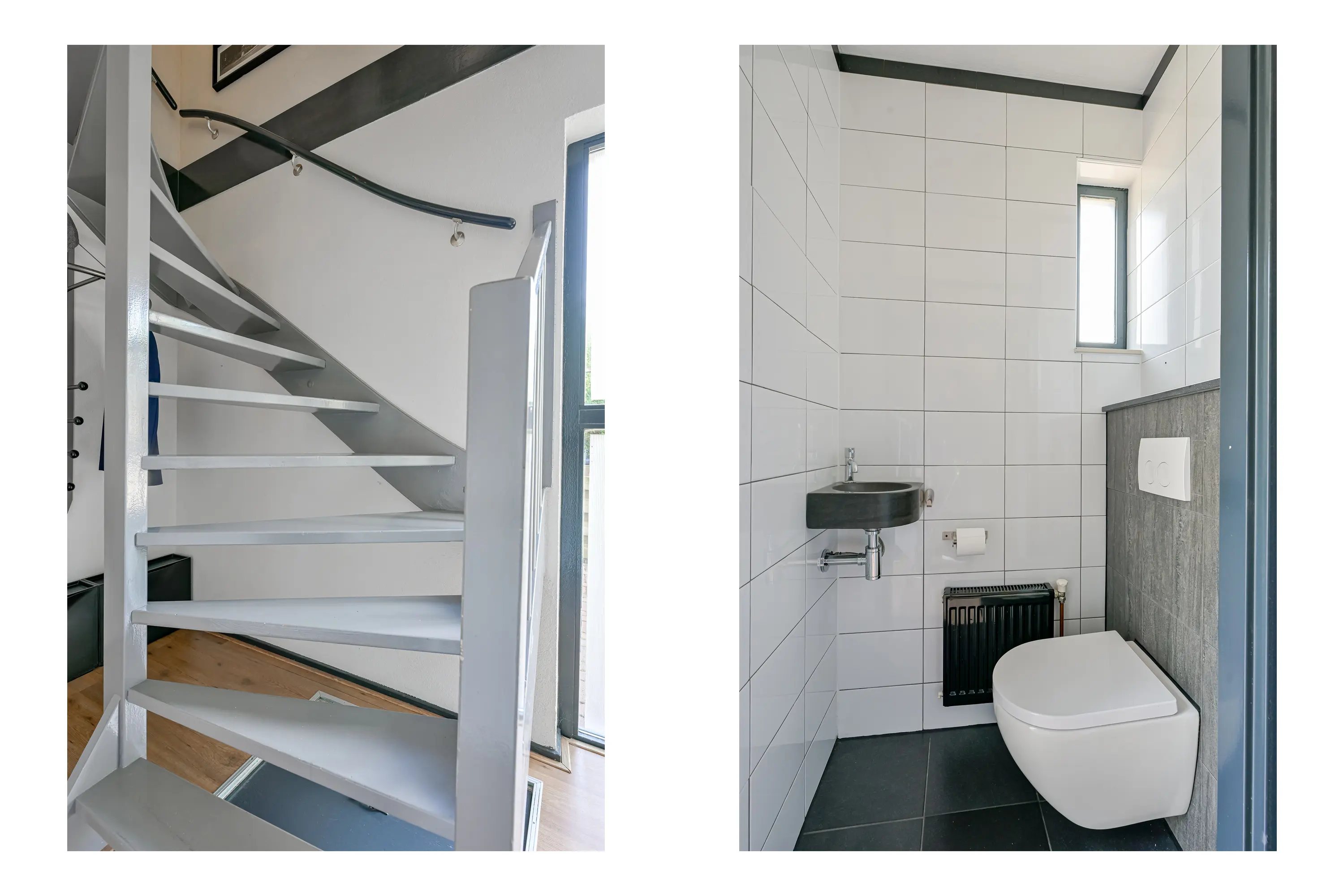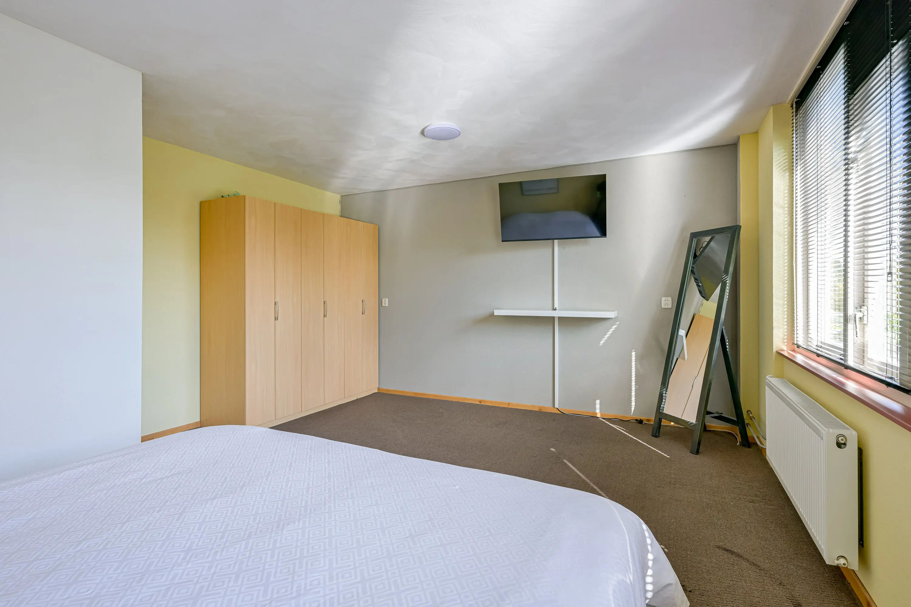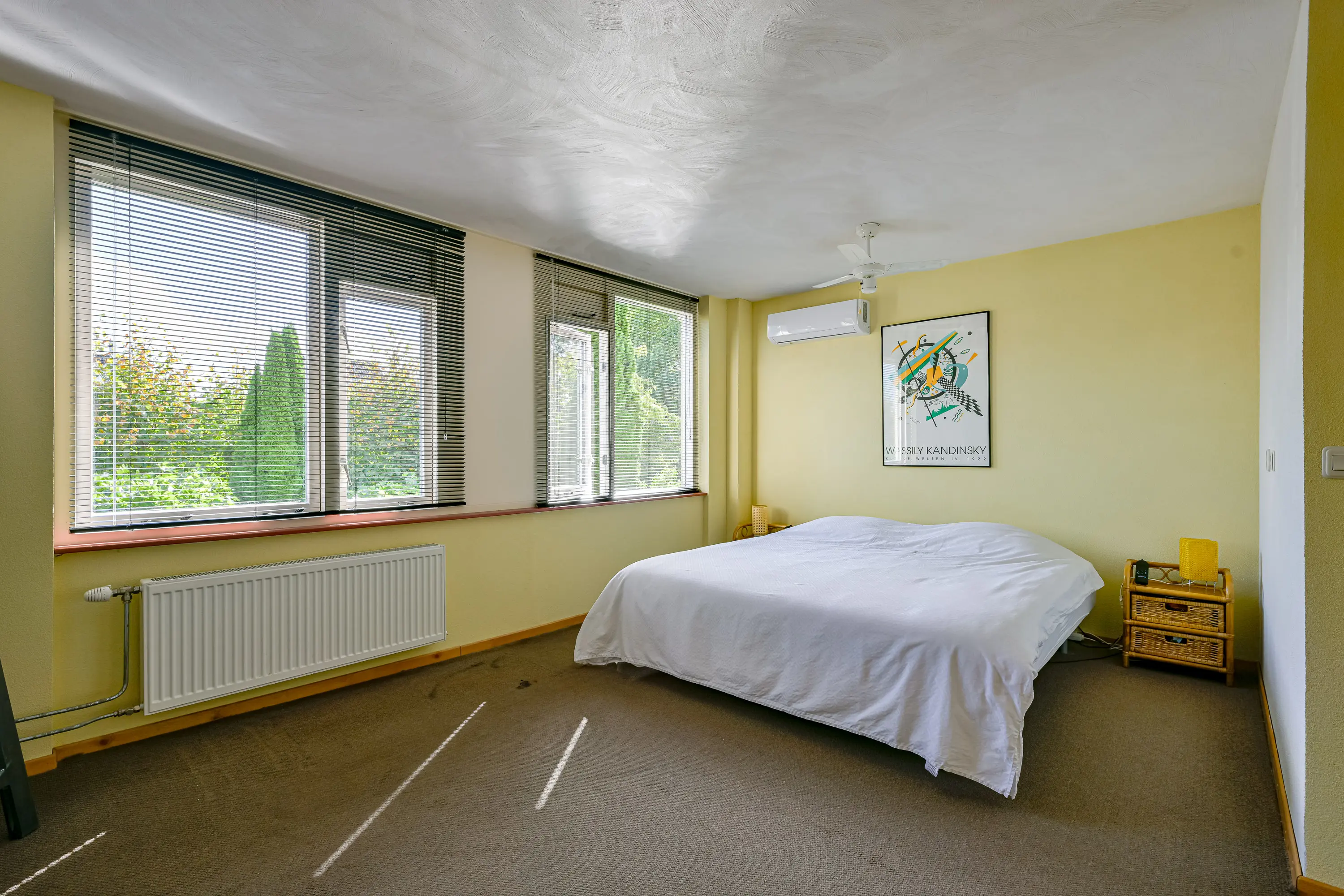Via de trap vanuit de hal bereikt u de 1e etage. Op de 1e verdieping vindt u een overloop met twee goed bemeten slaapkamers. De grootste slaapkamer is voorzien van een airco welke kan koelen en verwarmen. Dat zorgt voor een prettige temperatuur in elk jaargetijde. Tevens vindt u op deze verdieping de moderne en keurige badkamer. Deze beschikt over een tweede toilet, inloopdouche, dubbele wastafel met meubel, designradiator en een verwarmde spiegel zodat er geen condensvorming op de spiegel zal komen. Dat is toch luxe!