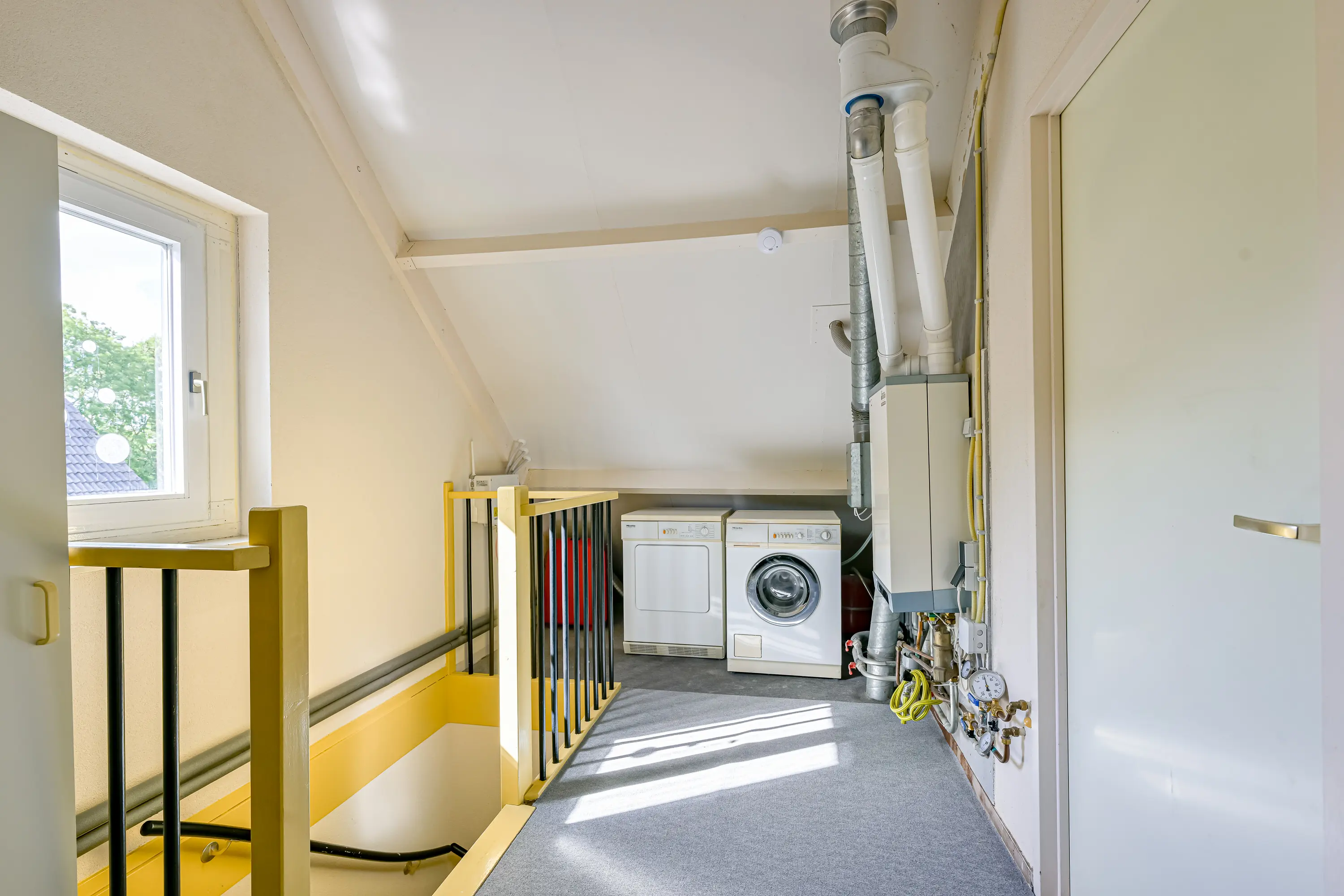 Via de vaste trap bereikt u de tweede verdieping. Hier vindt u een ruime voorzolder en de derde slaapkamer. Op voorzolder is voldoende ruimte aanwezig voor het plaatsen van de wasmachine en droger. Ook de Cv-ketel is hier opgehangen en goed bereikbaar.
