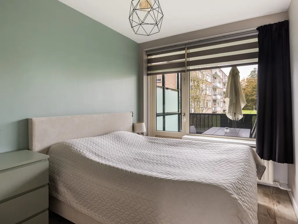 Binnen treft u een lichte en doorgebroken woonkamer met grote raampartijen aan zowel de voor- als achterzijde, waardoor het daglicht vrij spel heeft. Er zijn twee ruime slaapkamers, waarvan één aan de voorzijde en één aan de achterzijde. Laatstgenoemde biedt net als de keuken toegang tot het balkon.
