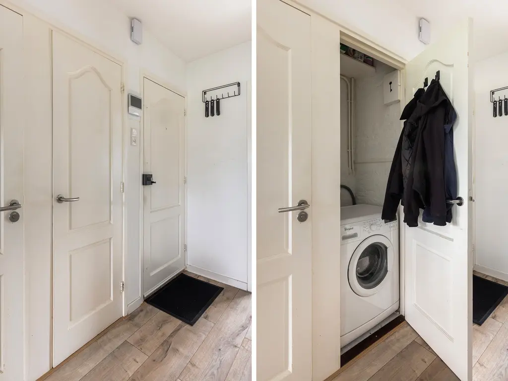 Het mooie appartement bevindt zich op de eerste verdieping, wat betekent dat u slechts een paar traptreden hoeft te nemen voordat u thuis bent. Aan de achterzijde ligt een heerlijk ruim balkon van ca. 13 m², met uitzicht op een groenstrook en een speelplaats (zuidwesten). Een fijne, rustige plek om te ontspannen in de buitenlucht.