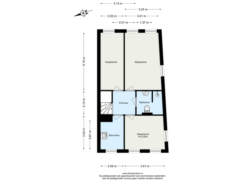 Overloop met toegang tot alle vertrekken op deze verdieping.