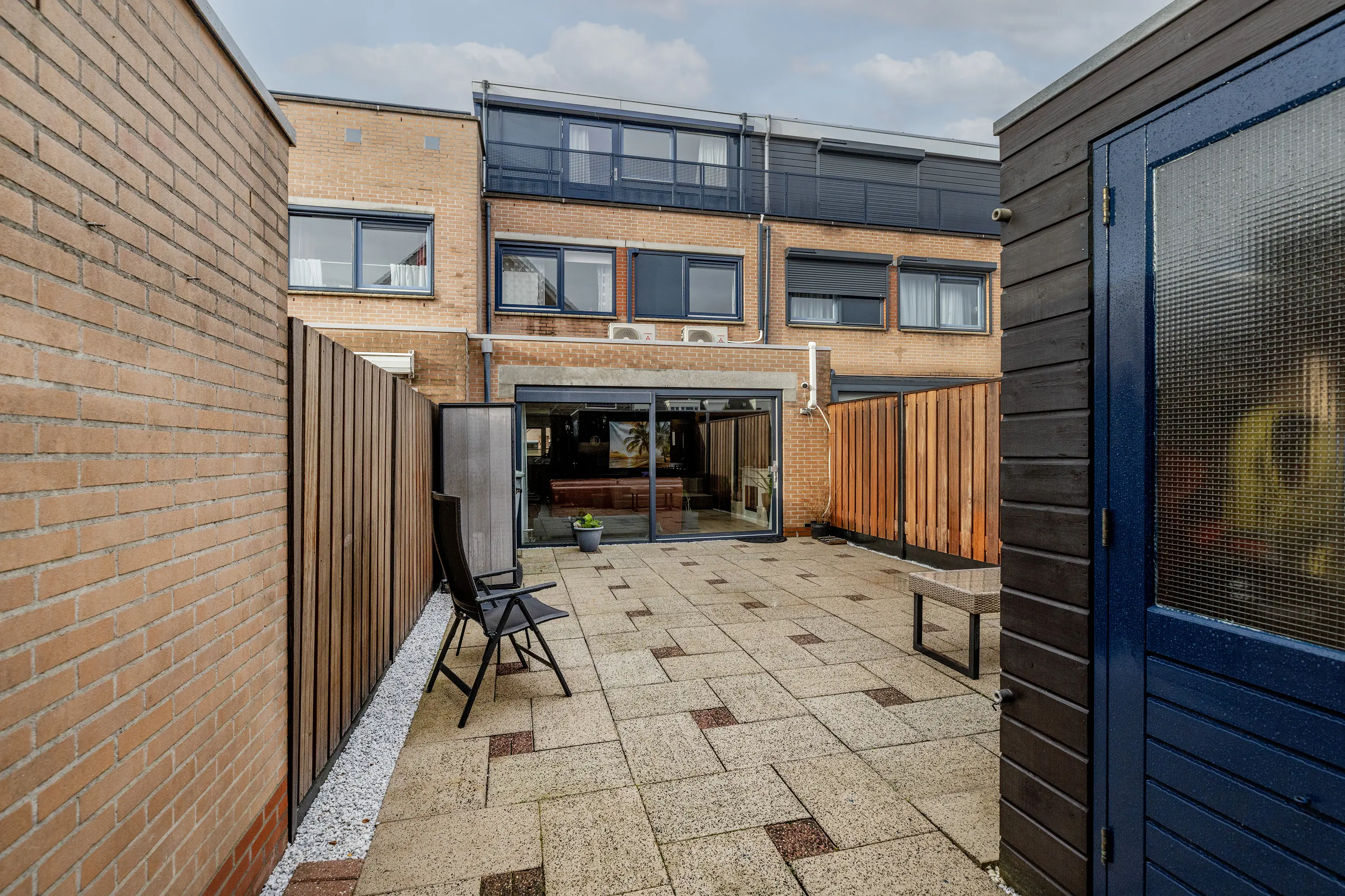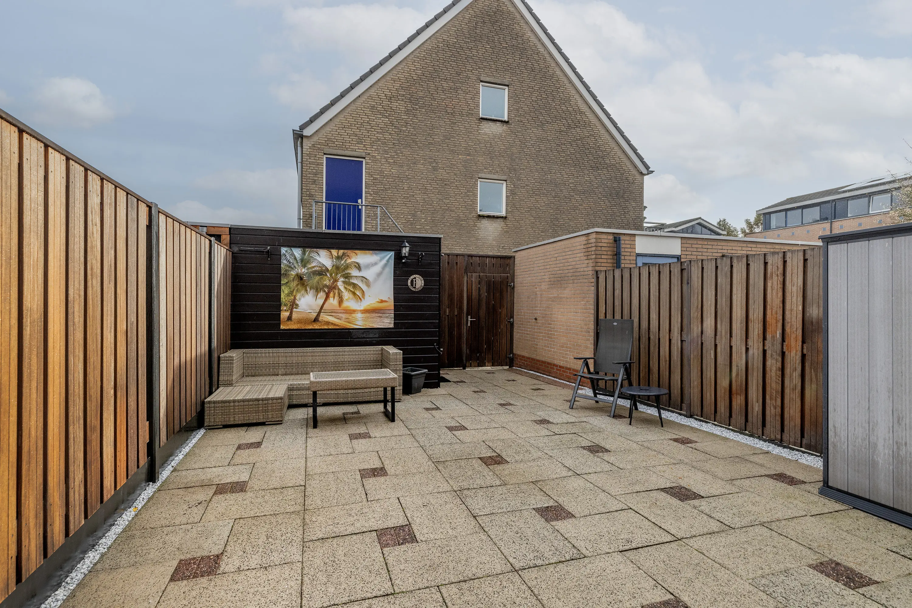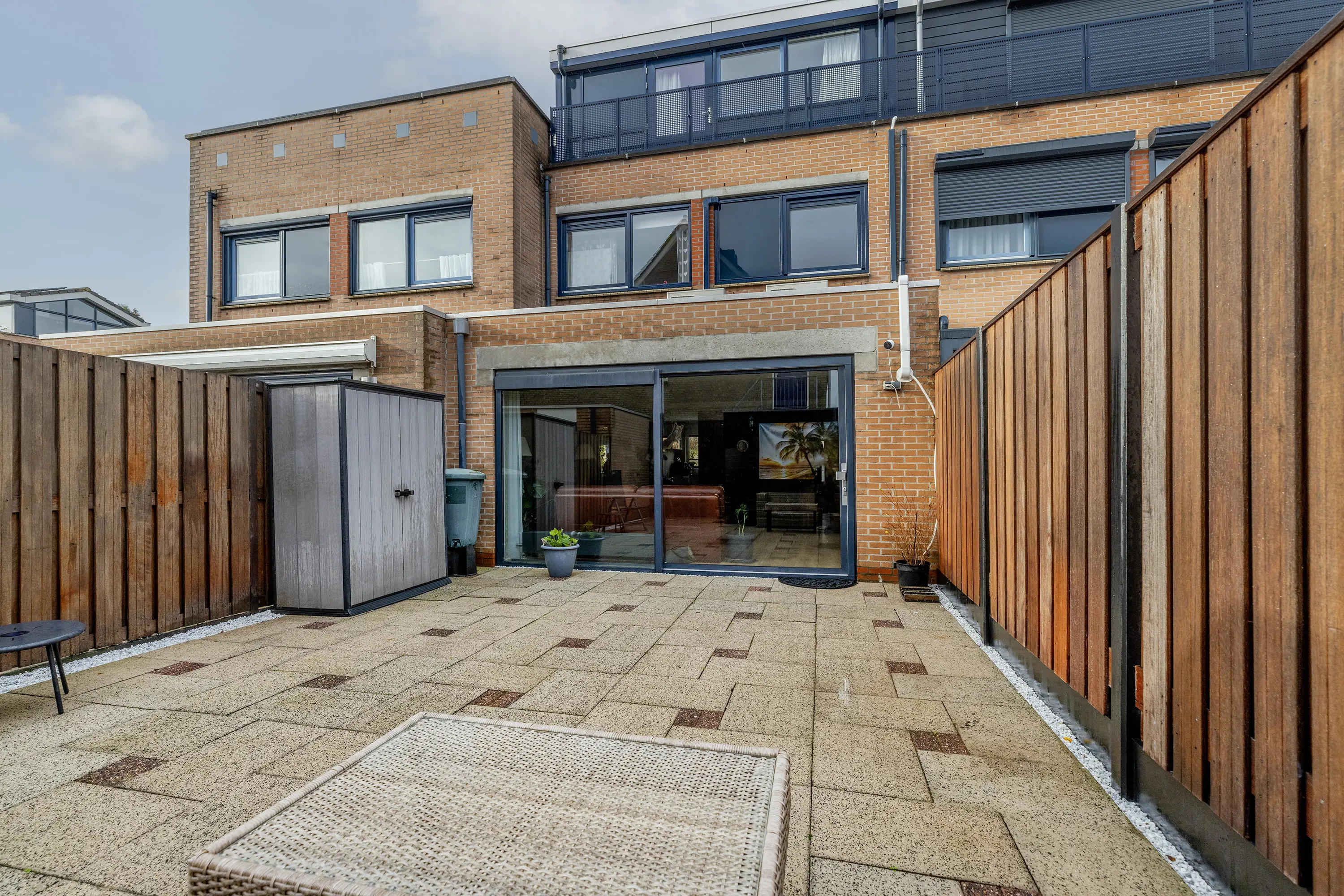 De onderhoudsvriendelijk aangelegde achtertuin op het oosten biedt volop ruimte voor een fijne lounge- of tuinset. Geniet hier van zonnige momenten én een heerlijke avond in rust. Achterin de tuin bevinden zich een houten berging en de achterom.