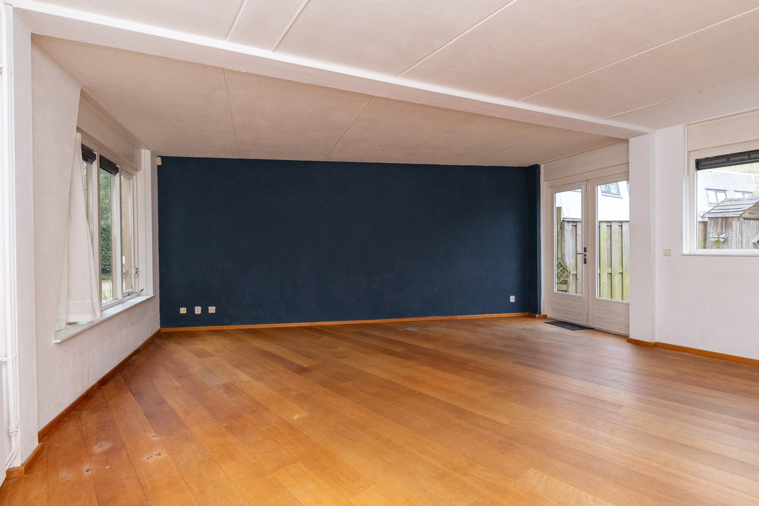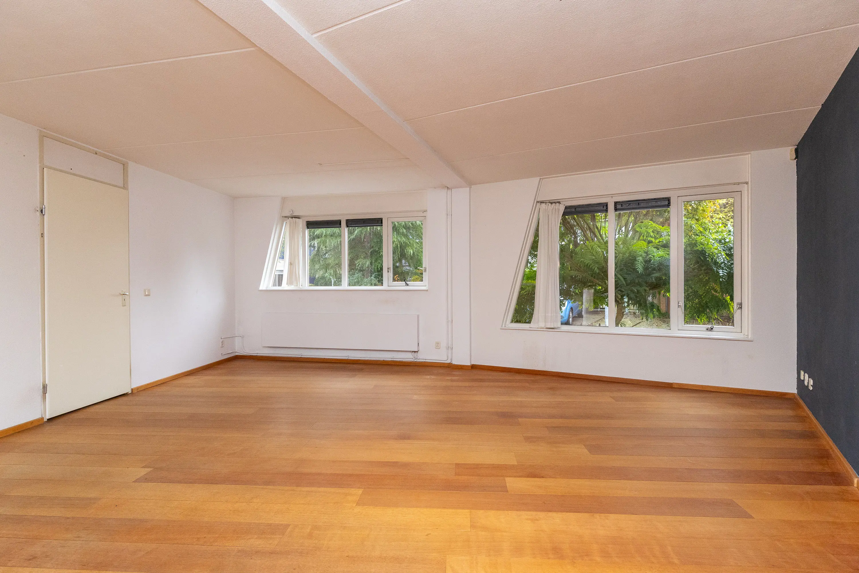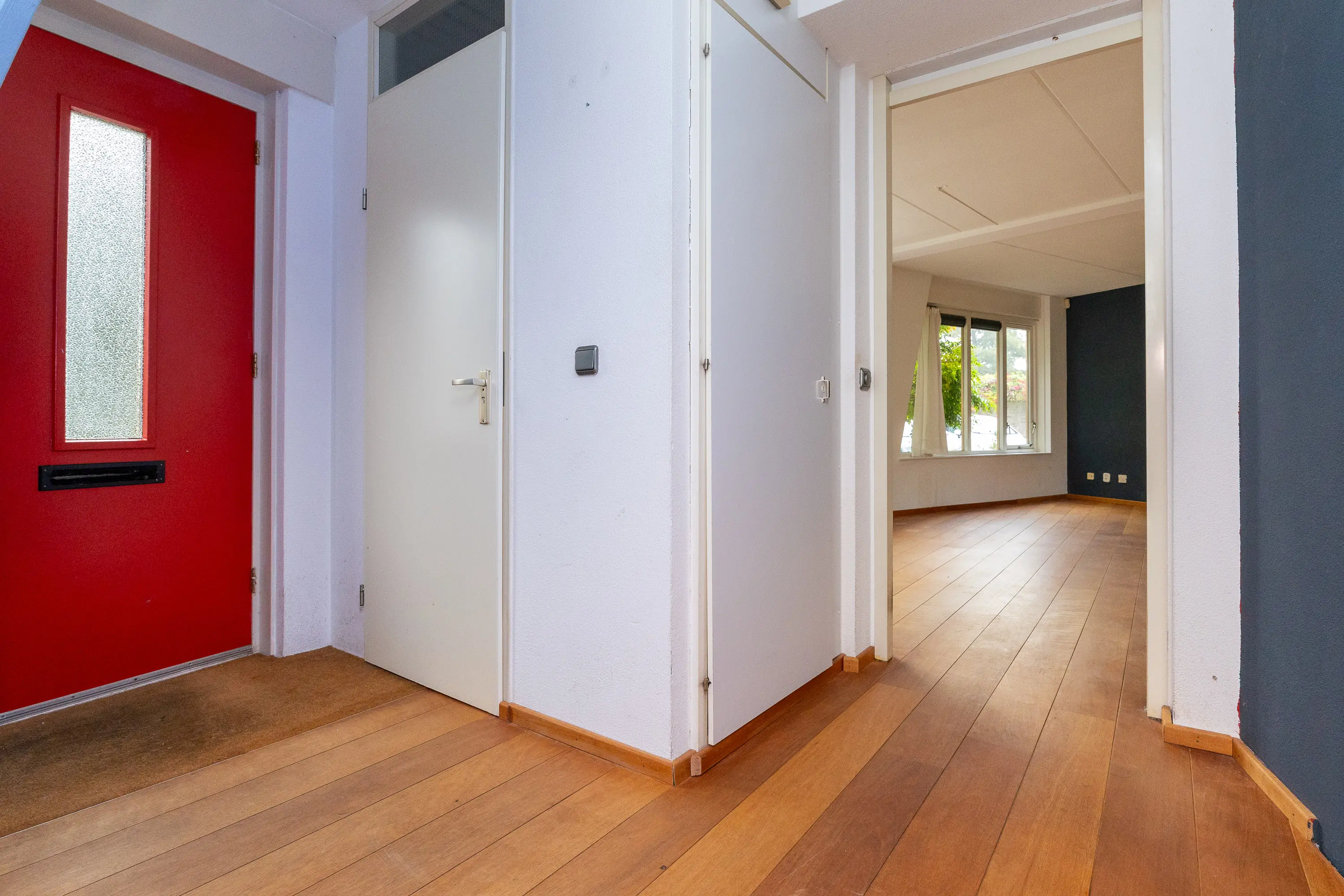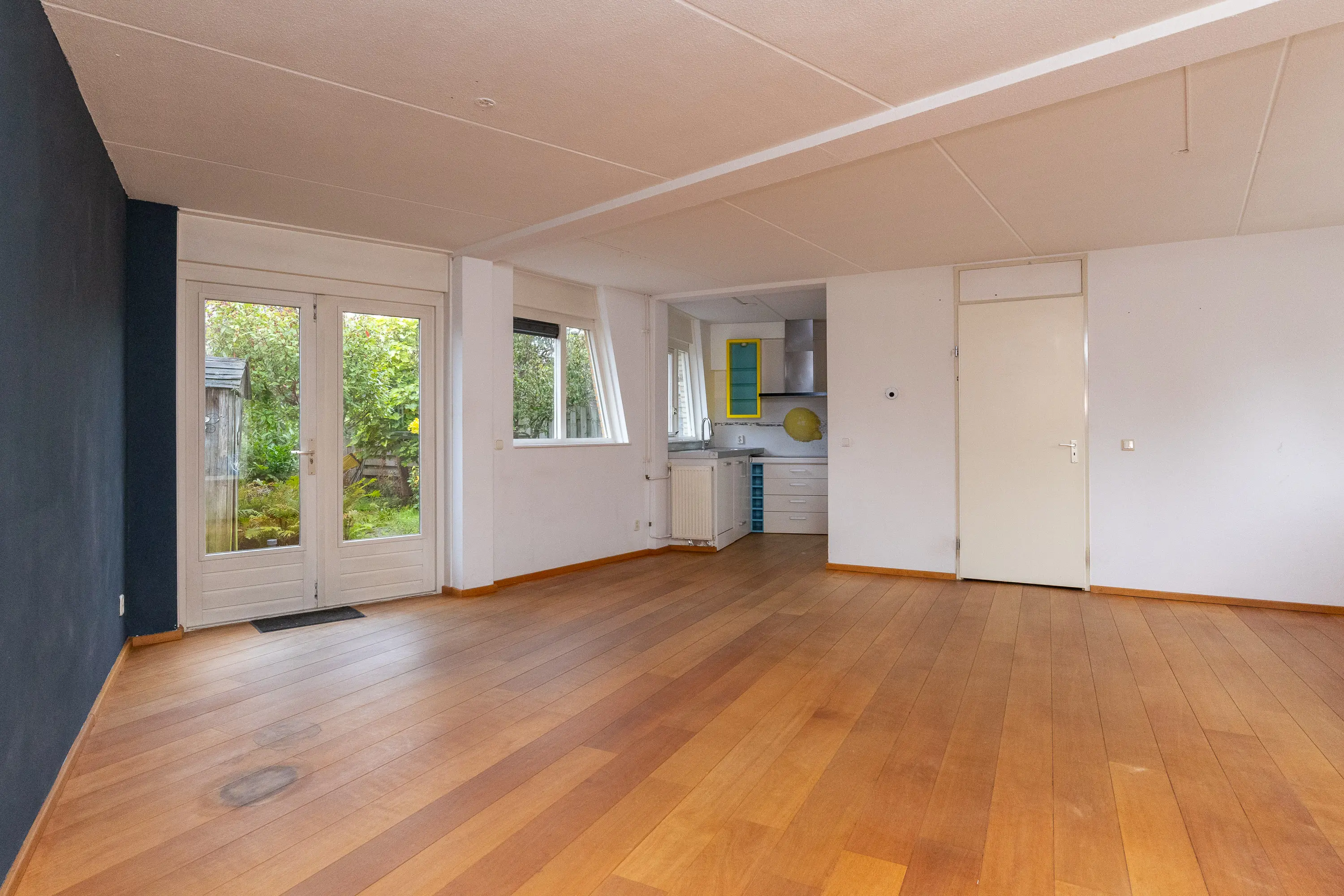 Via de ruime oprit met plaats voor twee auto’s bereik je de entree. In de hal vind je de meterkast, het toilet en de toegang tot zowel de garage als de woonkamer. De lichte woonkamer heeft een prettige indeling met grote raampartijen en openslaande deuren naar de tuin