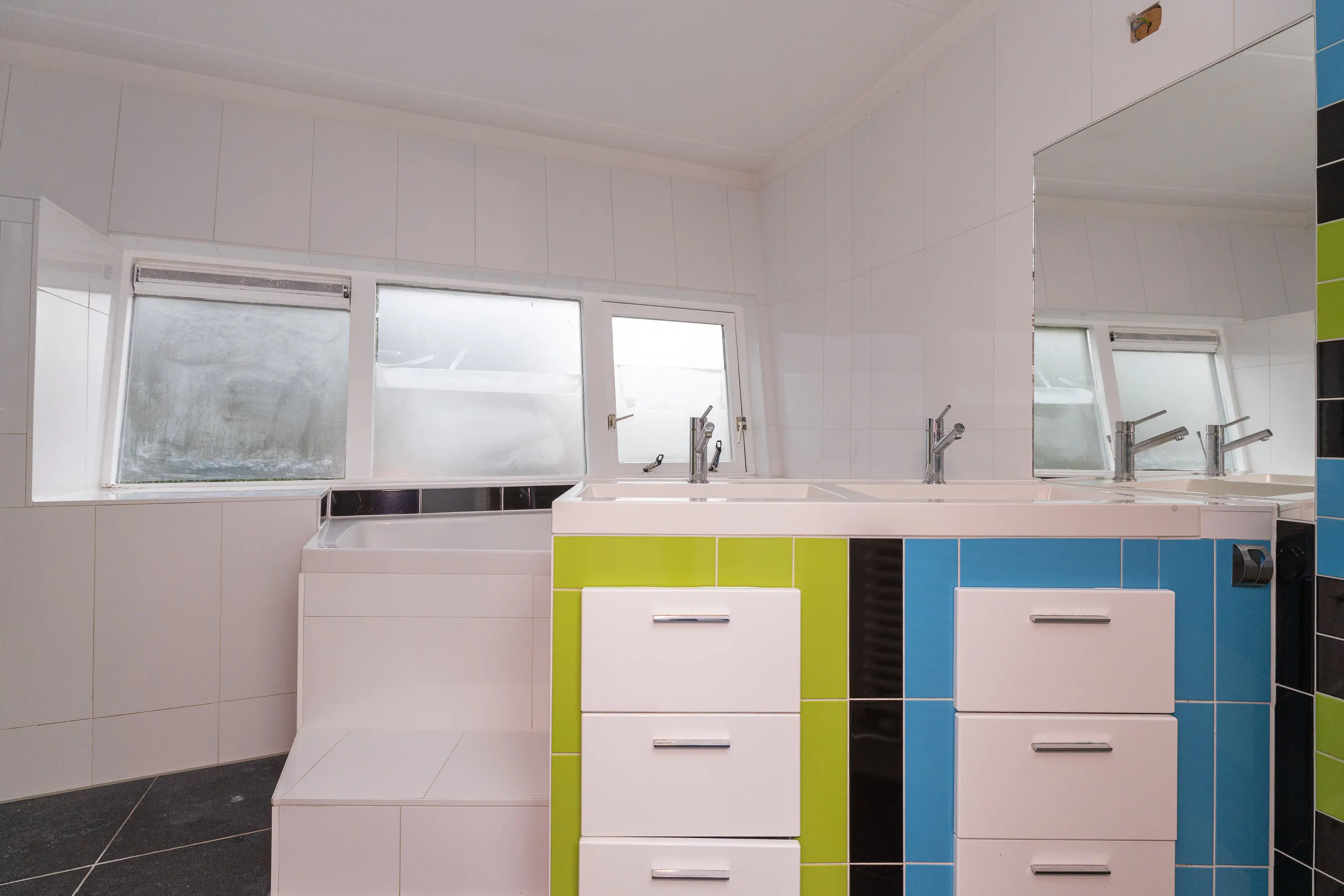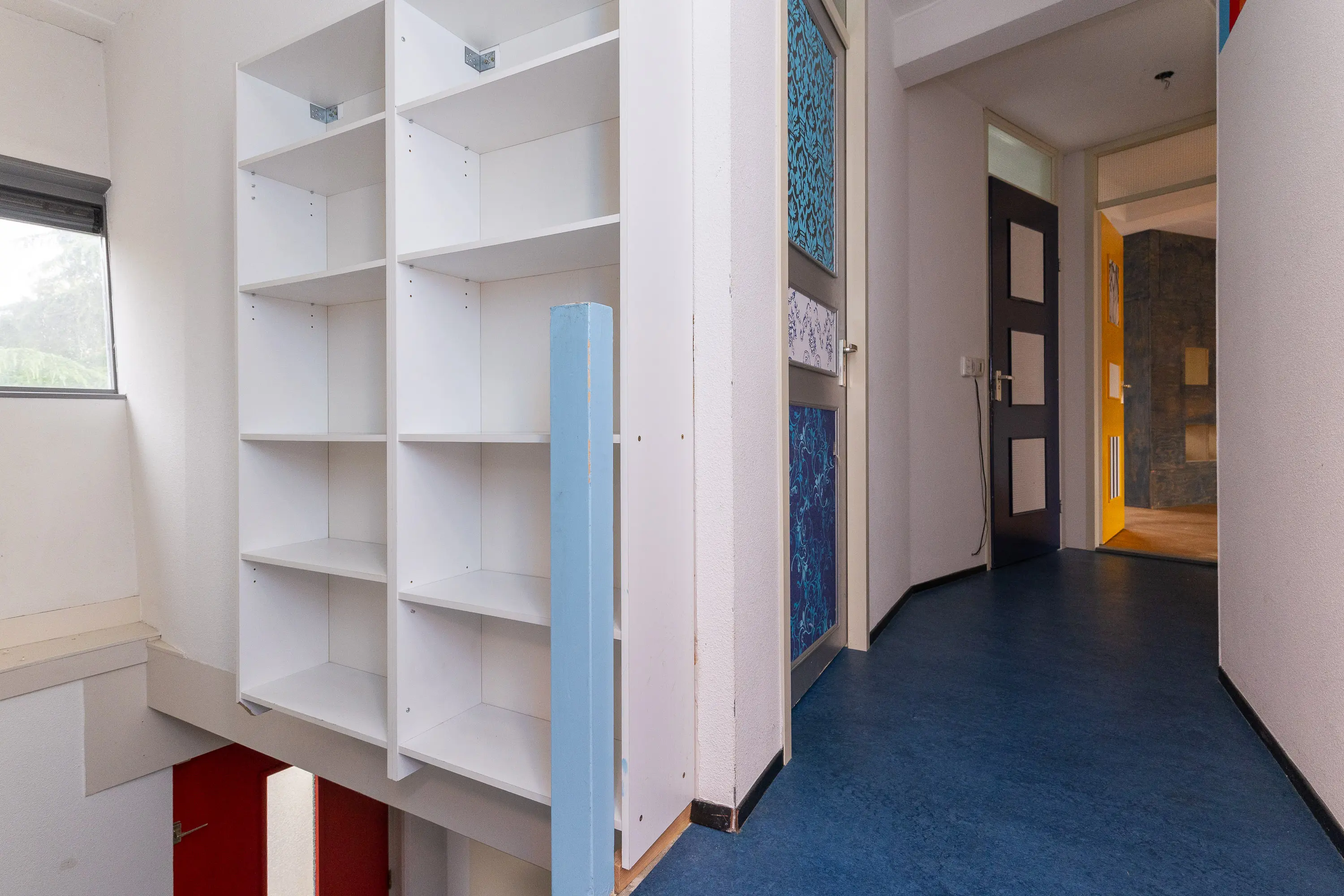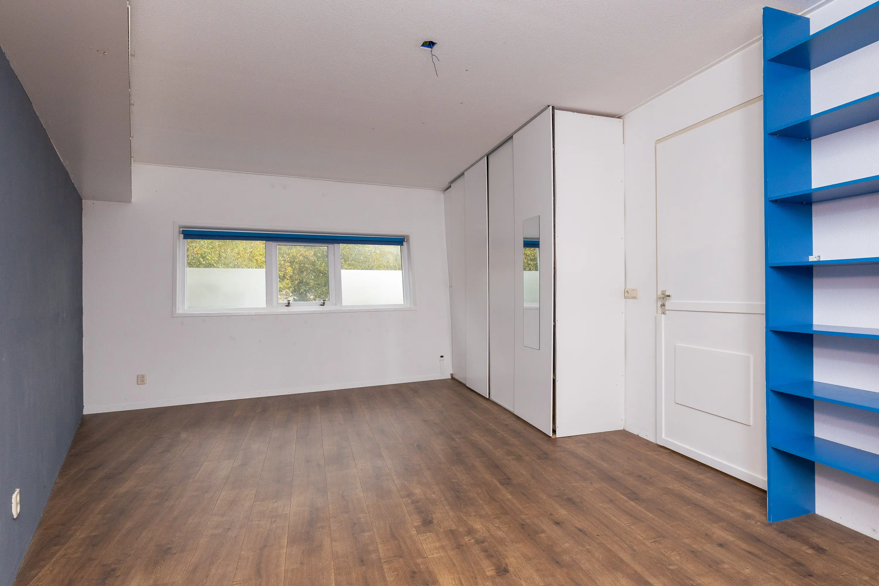 De eerste verdieping biedt momenteel twee ruime slaapkamers, waarvan één eenvoudig kan worden opgesplitst in twee kamers – ideaal voor wie een derde slaapkamer of werkkamer wil creëren. De badkamer beschikt over een inloopdouche, ligbad, tweede toilet en wastafelmeubel.