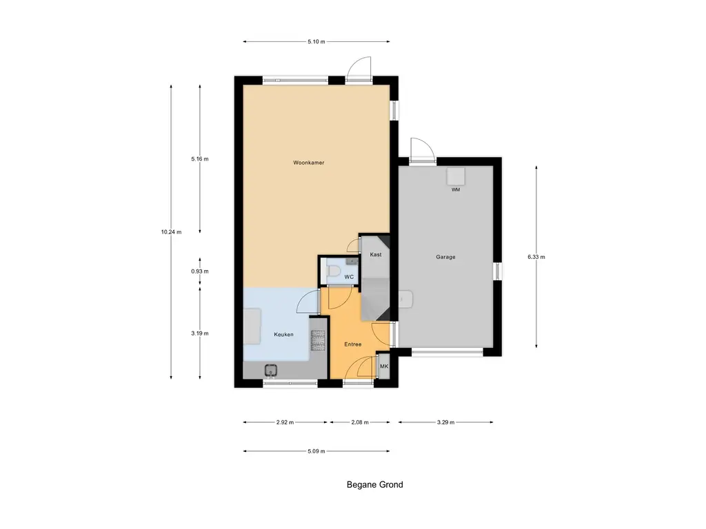 Vanuit de hal heeft u toegang tot de garage met een elektrische garagedeur en een uitstortgootsteen. Middels een aparte deur is de achtertuin te bereiken.