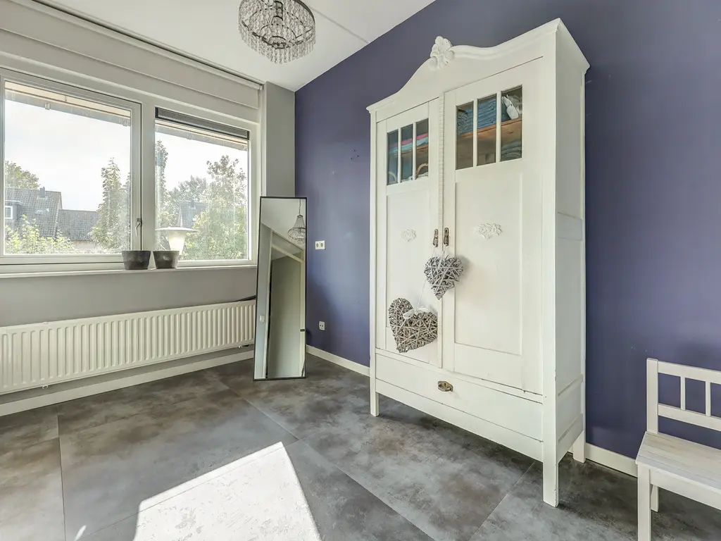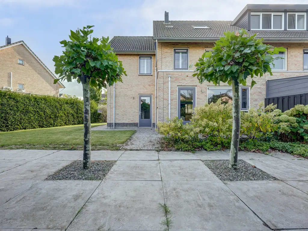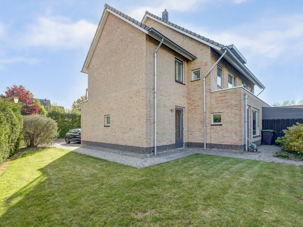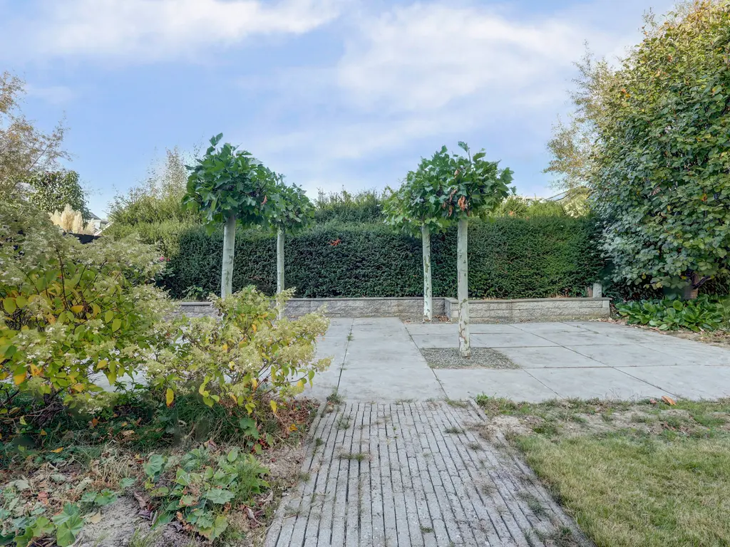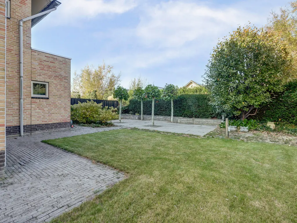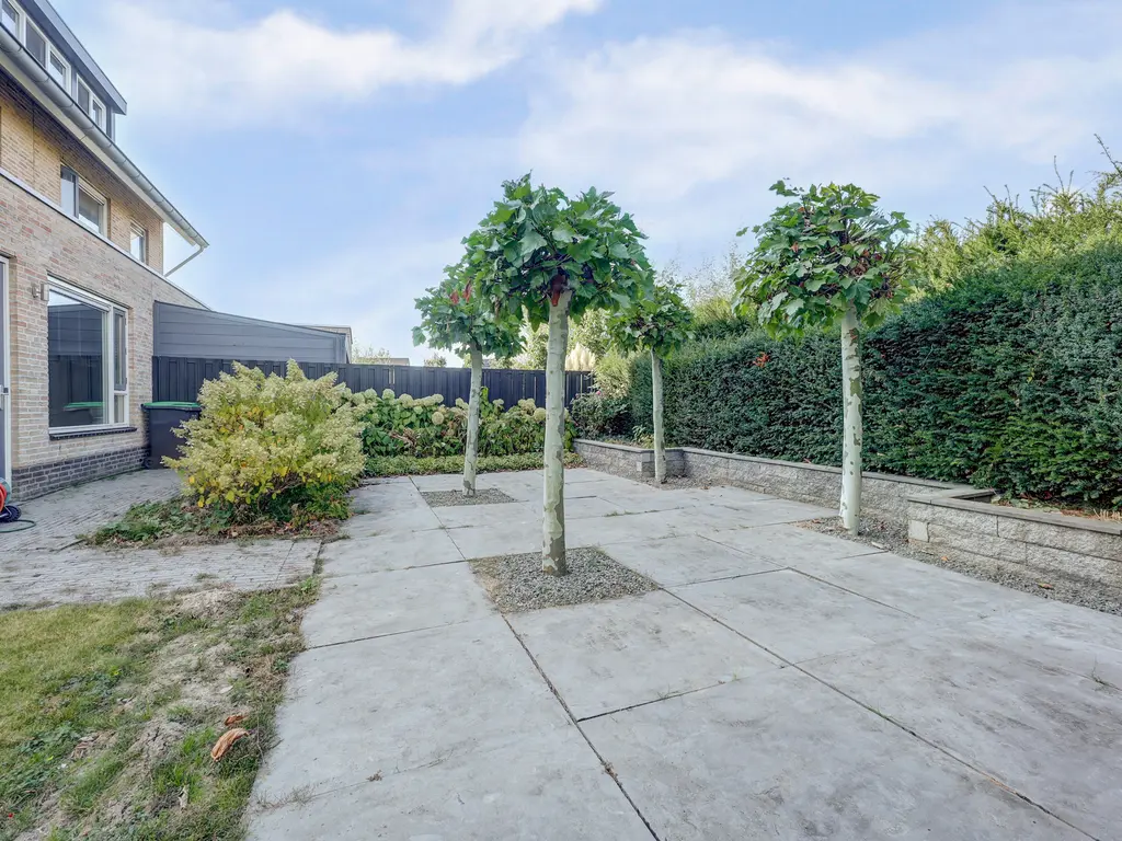 De verzorgde achtertuin is een heerlijke plek om buiten te zijn. De combinatie van gras, bestrating en groen zorgt voor een prettige balans tussen onderhoudsvriendelijkheid en sfeer. Dankzij de volgroeide hagen geniet u hier van veel privacy. De tuin biedt o.a. ruimte voor een loungehoek, eettafel en speelplek voor kinderen. Via de tuin is er ook toegang tot de garage en de zijkant van de woning.