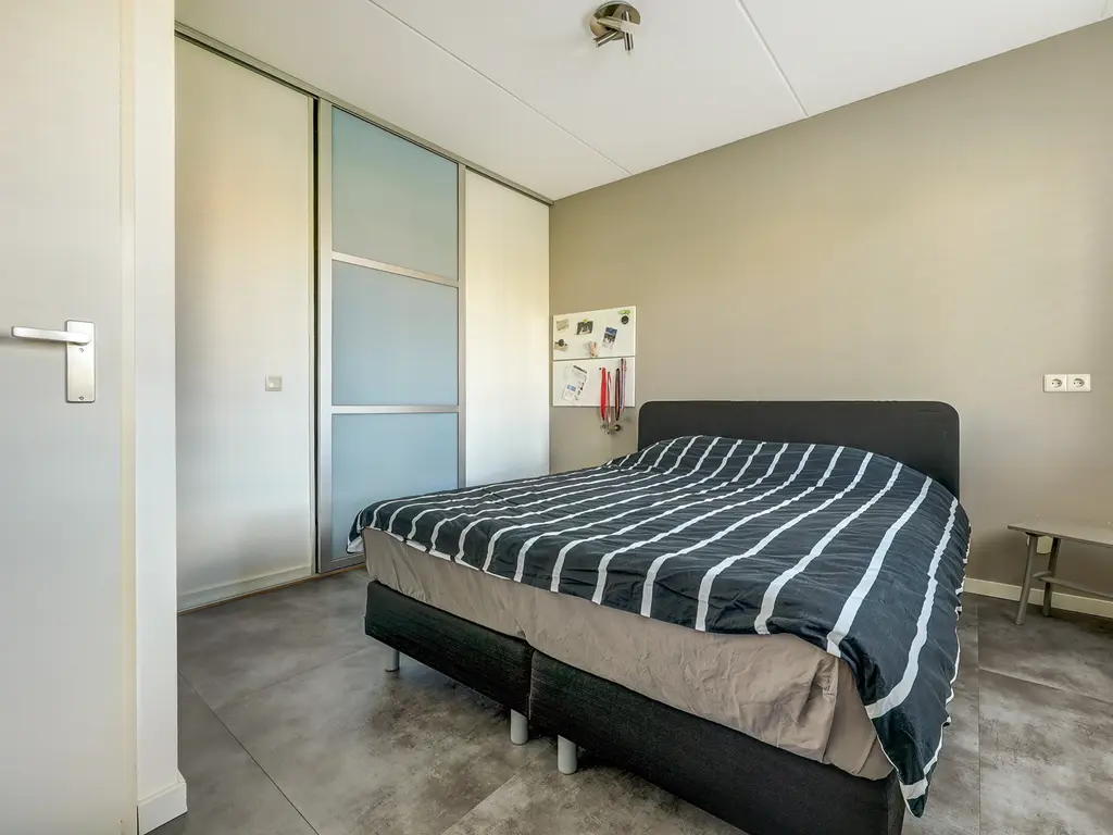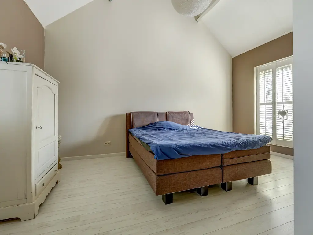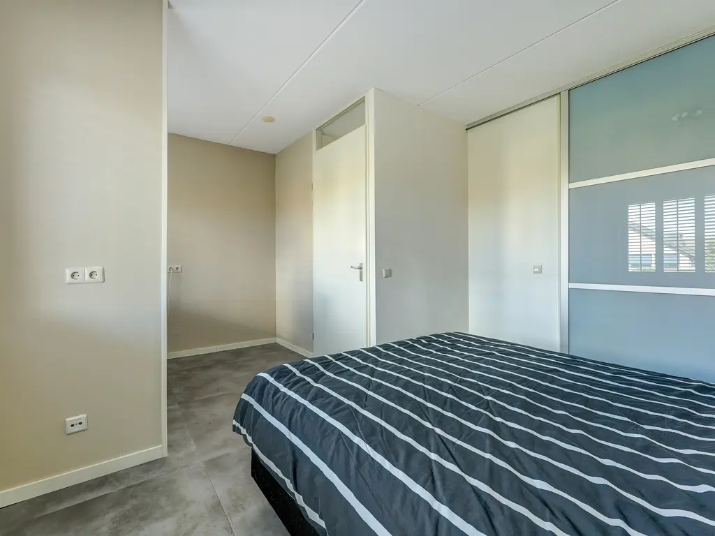 De eerste verdieping telt drie ruime slaapkamers en een moderne badkamer. De hoofdslaapkamer (ca. 16 m²) aan de achterzijde beschikt over een aangrenzende inloopkast met schuifdeuren, ideaal voor extra opbergruimte. Deze slaapkamer is eventueel op te splitsen in 2 kamers. De tweede slaapkamer (ca. 19 m²) aan de voorzijde biedt toegang tot het Franse balkon, waar 's ochtends heerlijk het zonnetje naar binnen schijnt door de openslaande deuren. Deze slaapkamer is voorzien van vloerverwarming. De derde slaapkamer (ca. 8 m²) is eveneens ruim en geschikt als kinder-, logeer- of werkkamer.