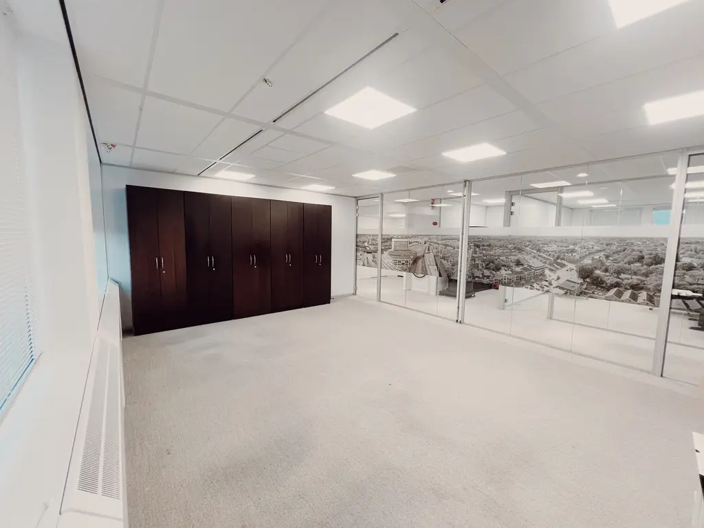De ruimte is min of meer turn-key: er staan wandkasten indien de toekomstige huurder deze wenst te gebruiken.
