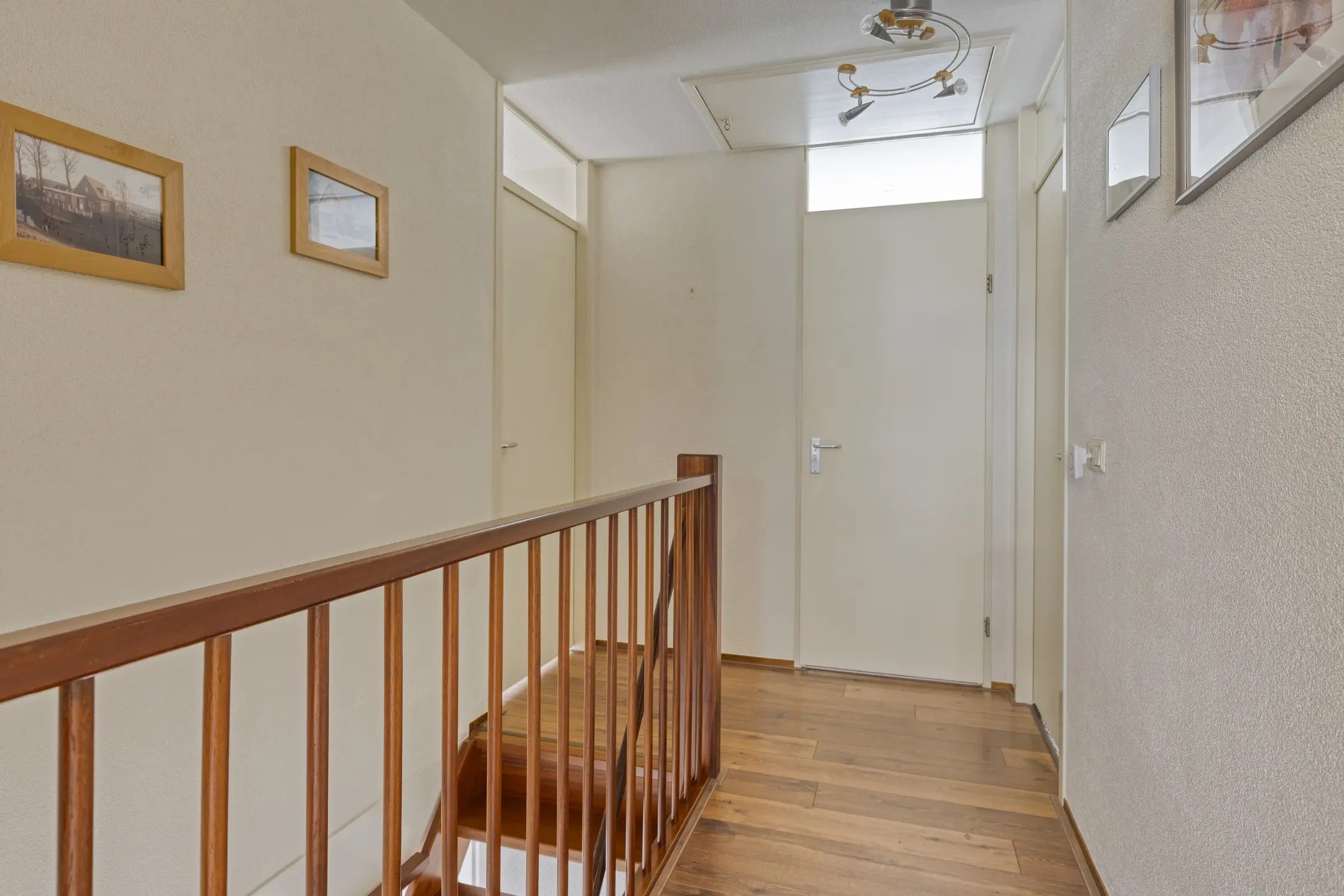 Ruime overloop met toegang tot alle vertrekken. Middels een vlizotrap is de bergvliering te bereiken. Bergvliering voorzien van verlichting en een dakraam.