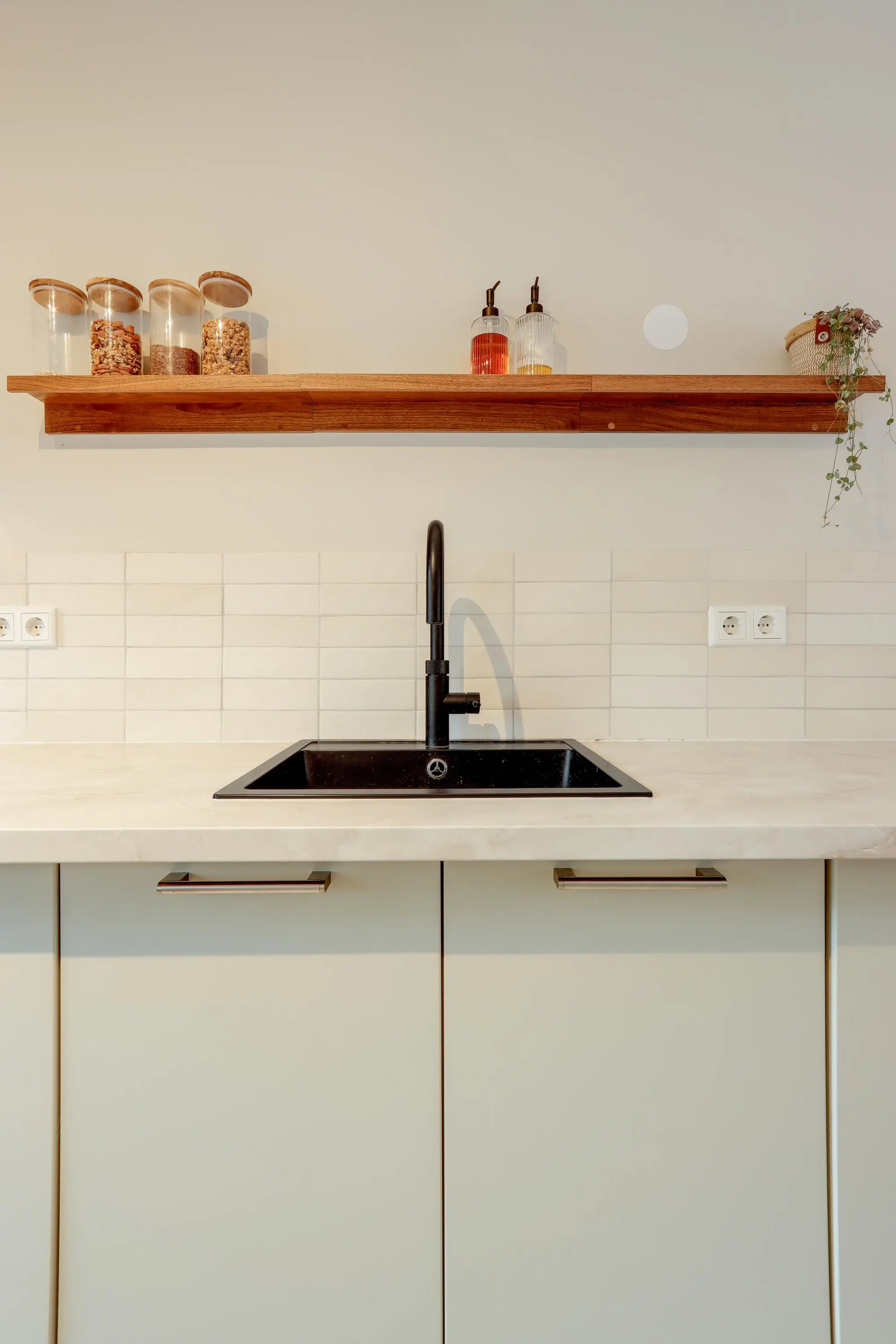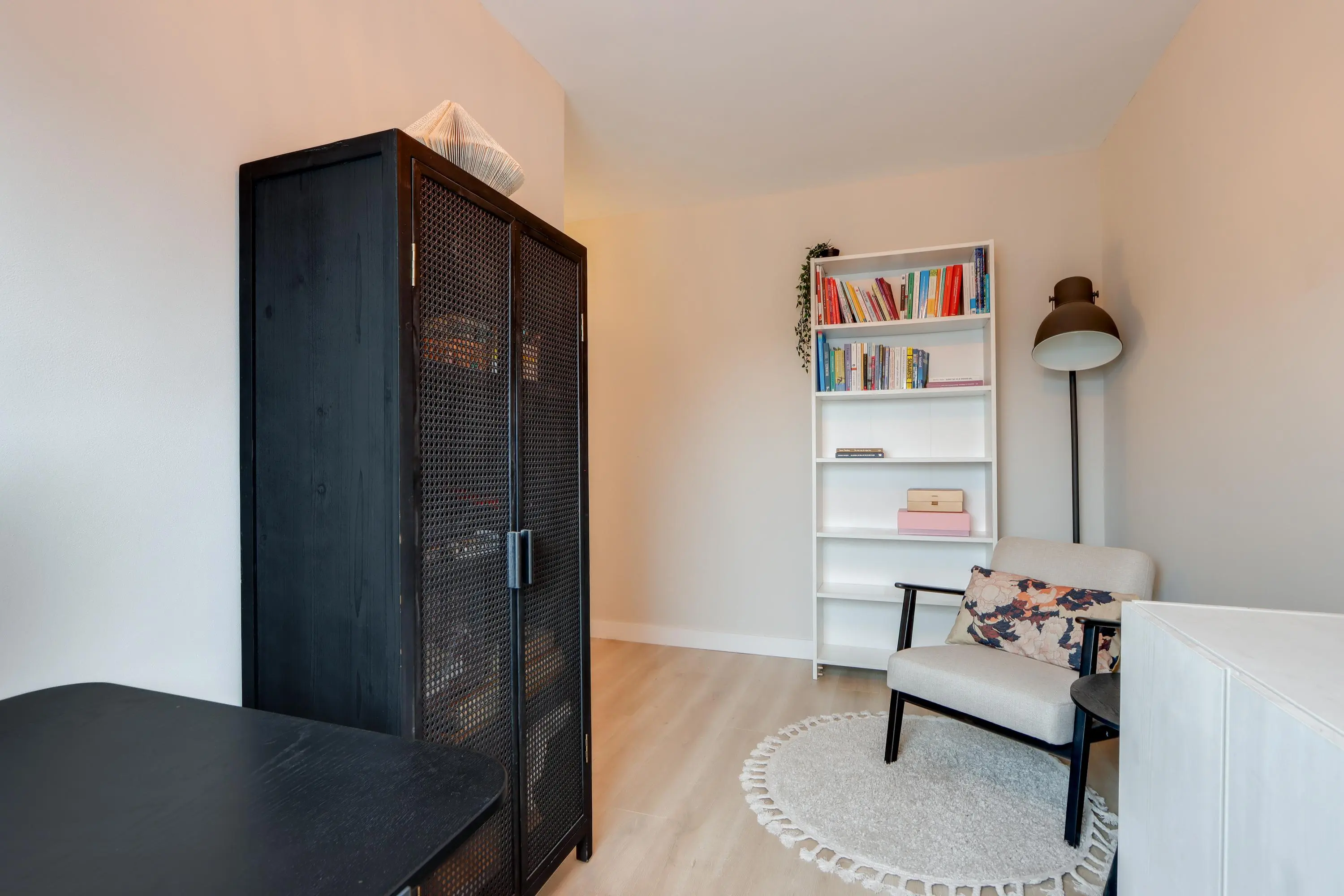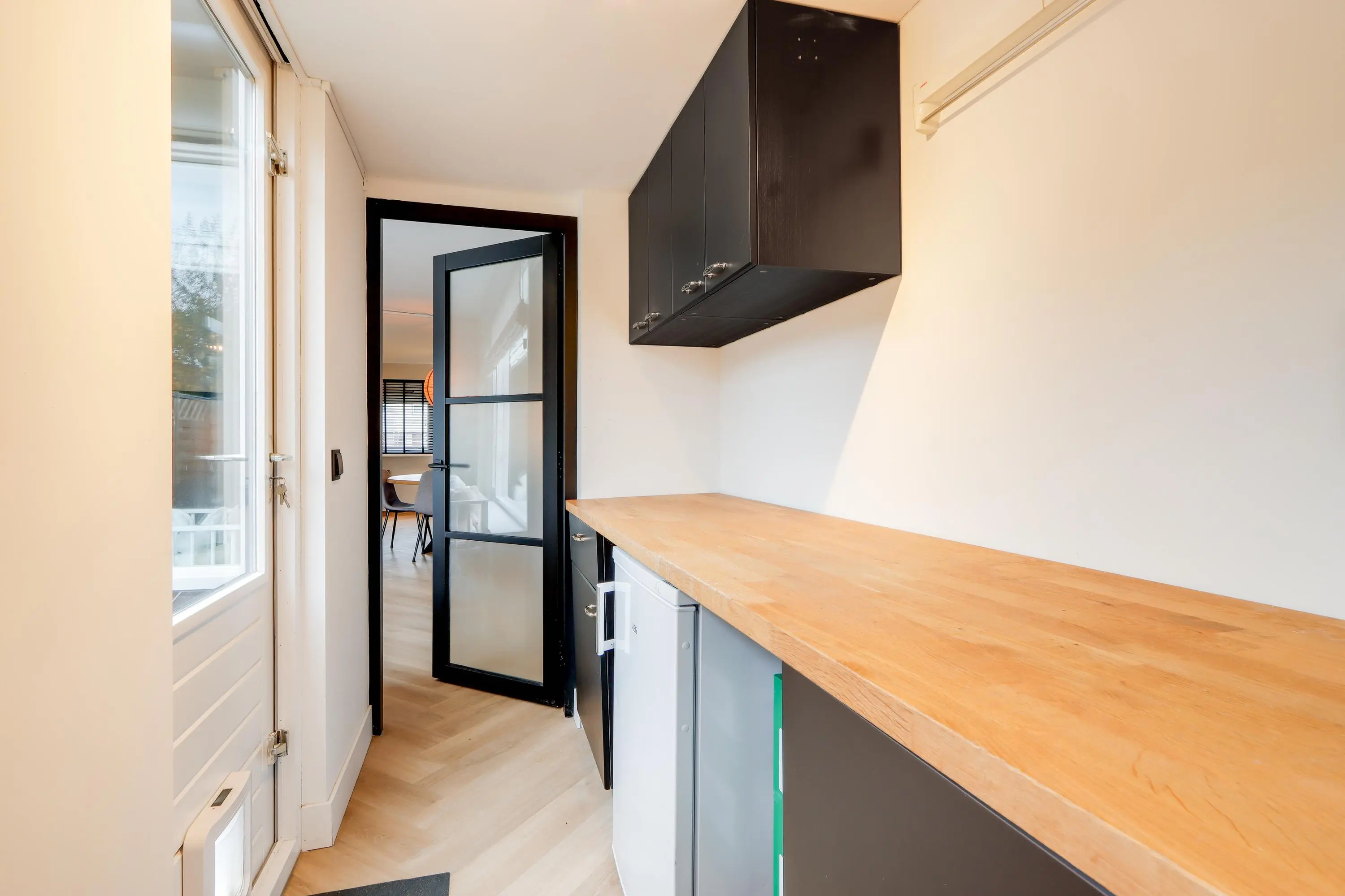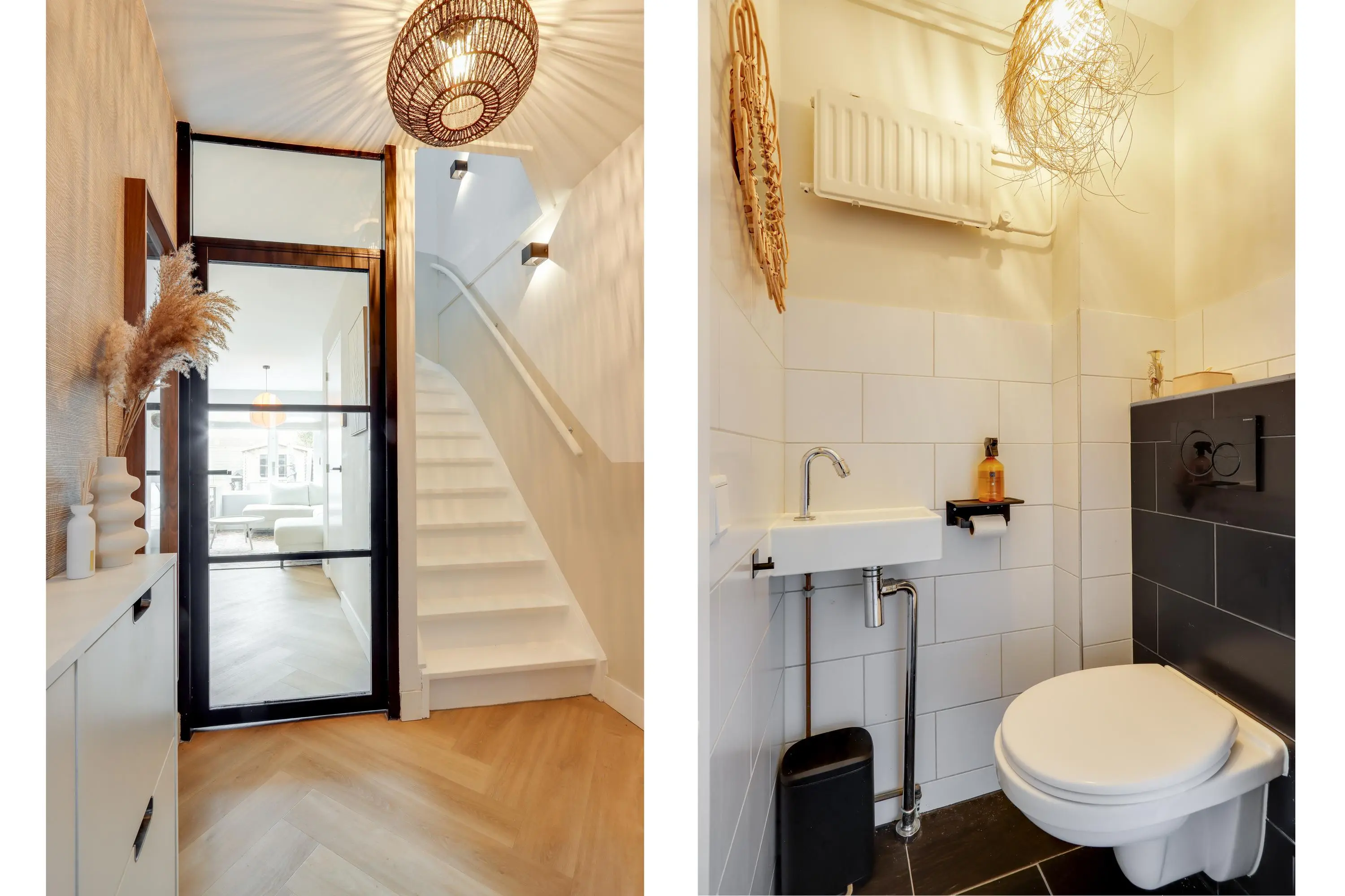 De woonkamer is het hart van het huis: ruim, licht en elegant afgewerkt, met een open verbinding naar de moderne keuken. De keuken is voorzien van hoogwaardige inbouwapparatuur, strakke lijnen en veel werkruimte – een plek waar koken en samen zijn moeiteloos samengaan.