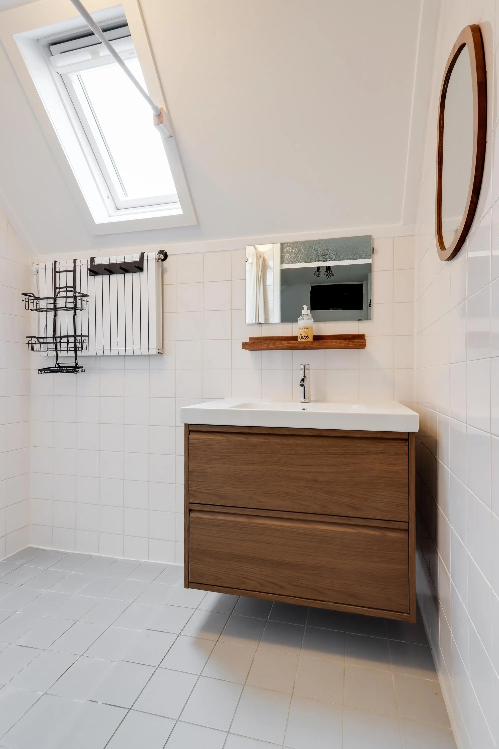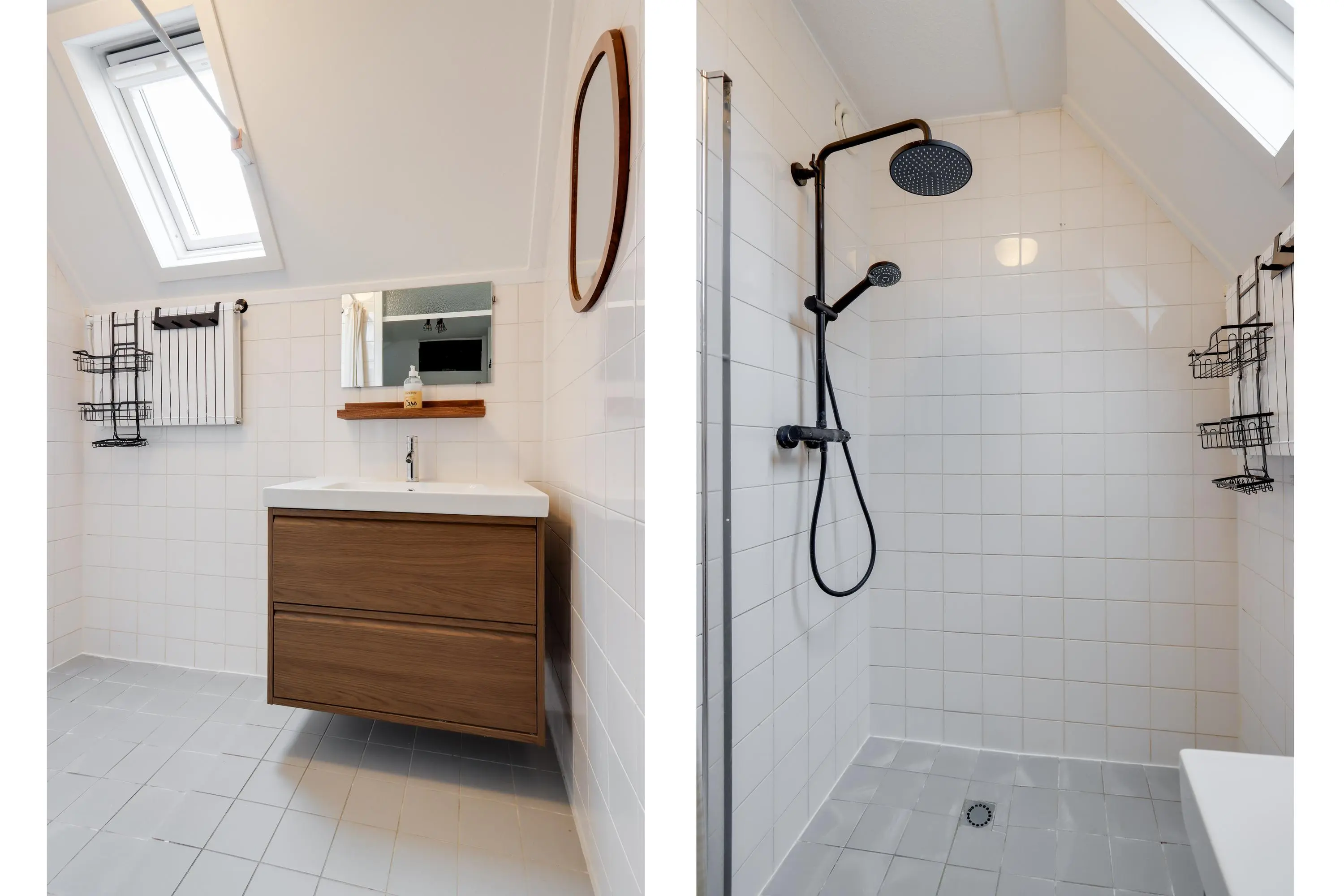 Op de eerste verdieping vindt u 3 slaapkamers, elk met een frisse, lichte uitstraling en comfortabele afmetingen. De badkamer is voorzien van een inloopdouche en wastafelmeubel.