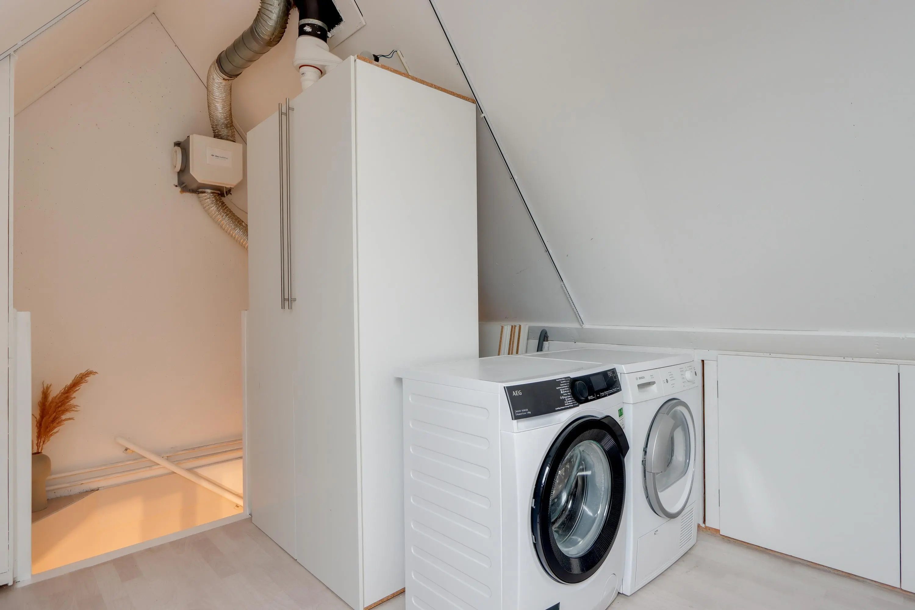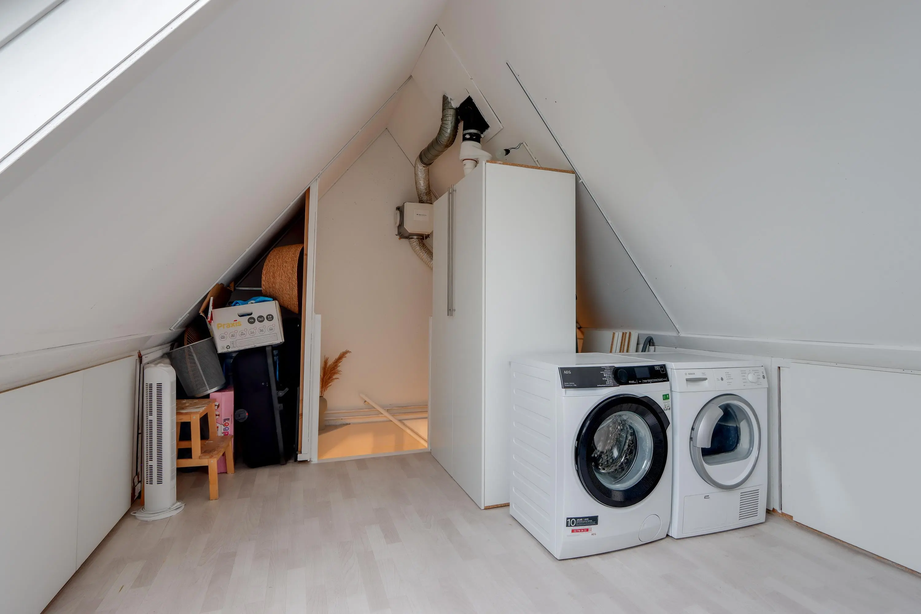 Op de tweede verdieping bevind zich de wasmachine aansluiting, en voldoende ruimte om een 4de slaapkamer te creeeren.