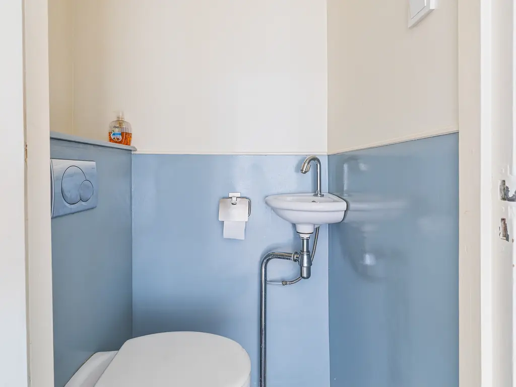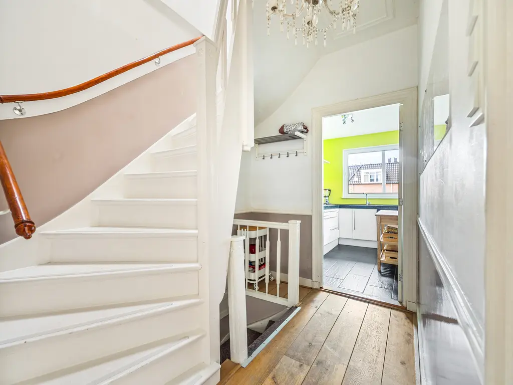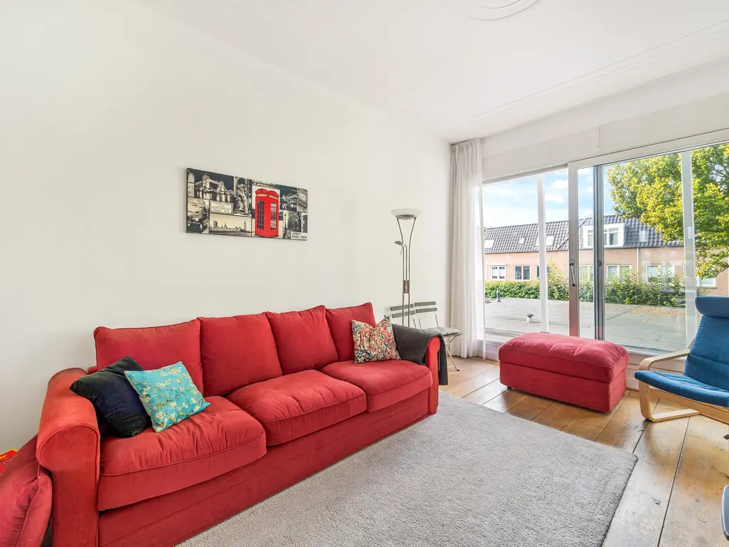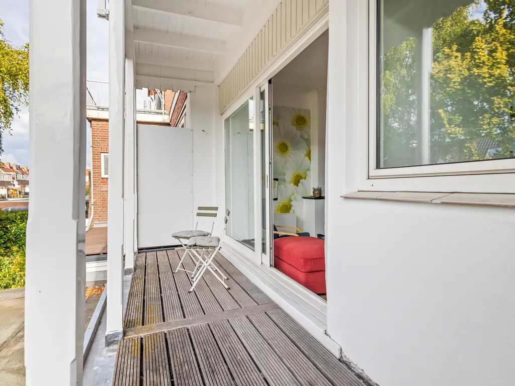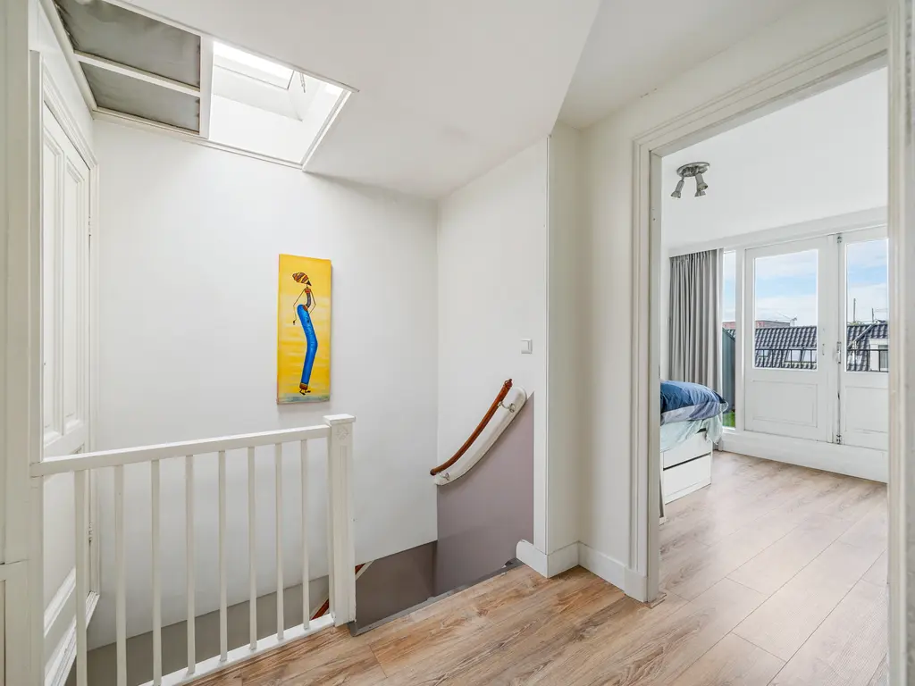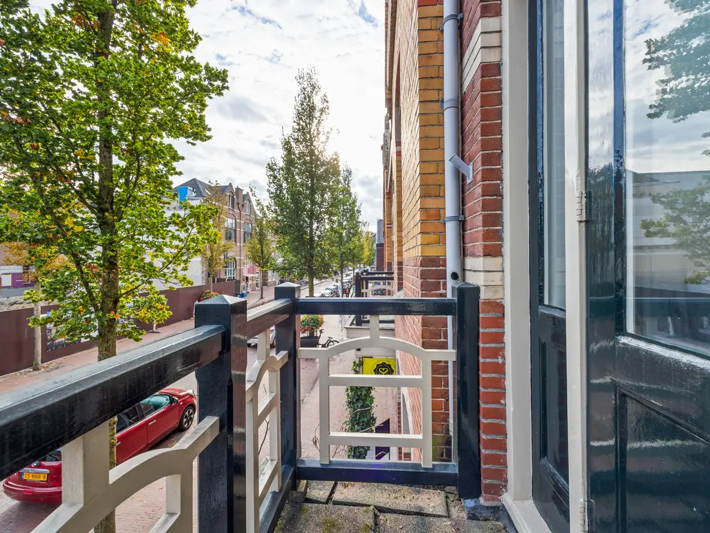 This charming, two-story, four- to five room apartment from 1909 is located in the heart of Leidschendam. The living area is 105m². It has protected status and features several original details, including a terrazzo floor, sliding doors in the living/dining room with two wardrobes and shelving and the original turret roof.